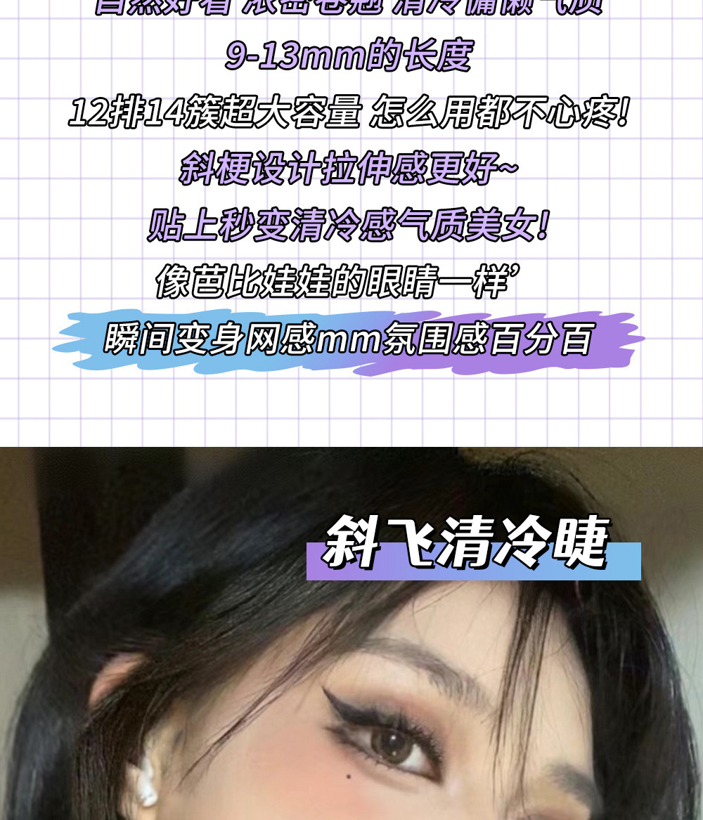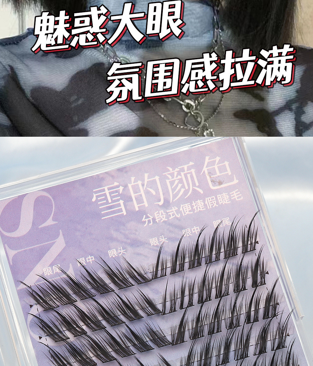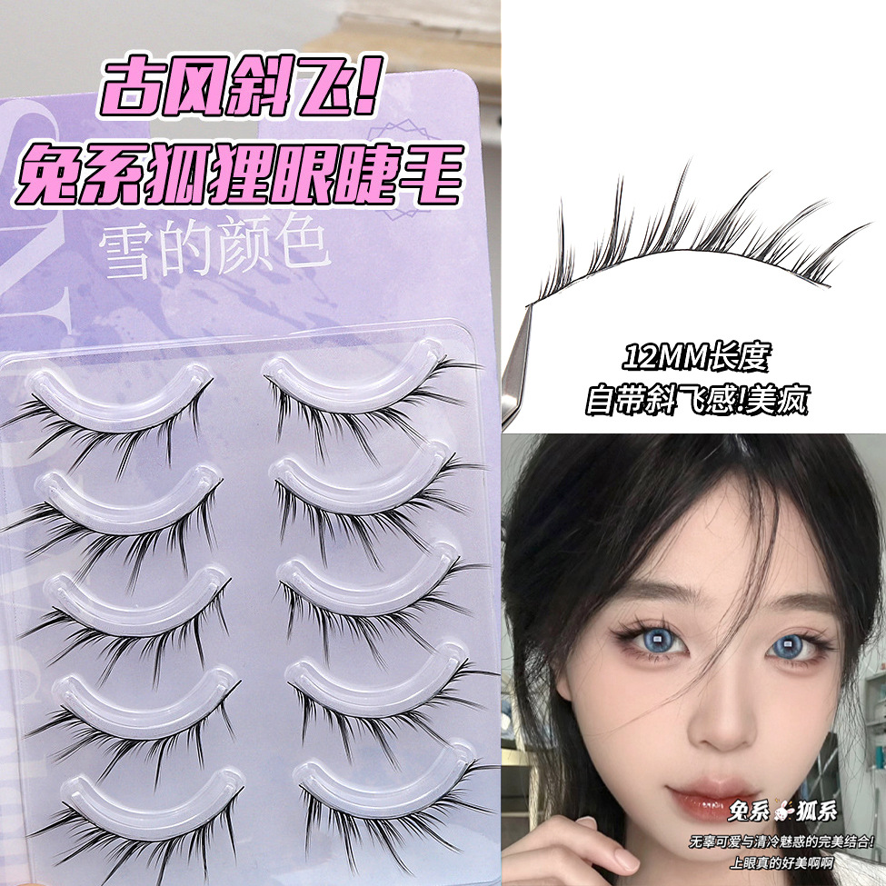 假睫毛胶水款大容量清冷狐系猫精灵自然浓密款分段式懒人眼睫毛