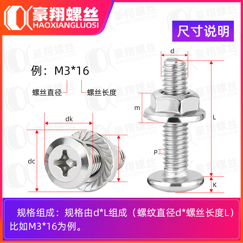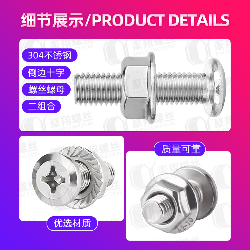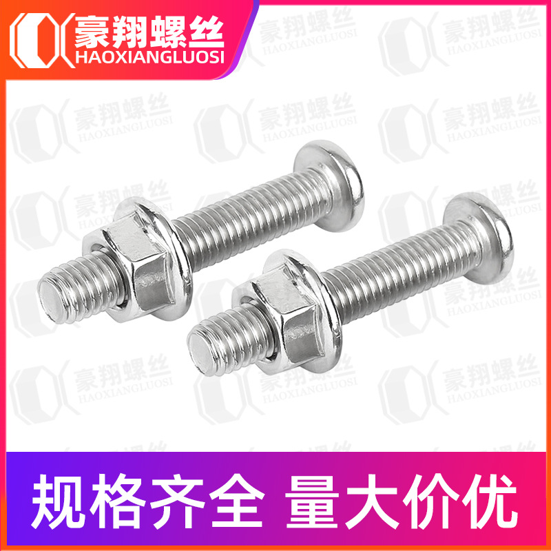 304不锈钢倒边十字螺丝螺母套装螺杆螺母组合螺丝钉加带螺帽M6/M8