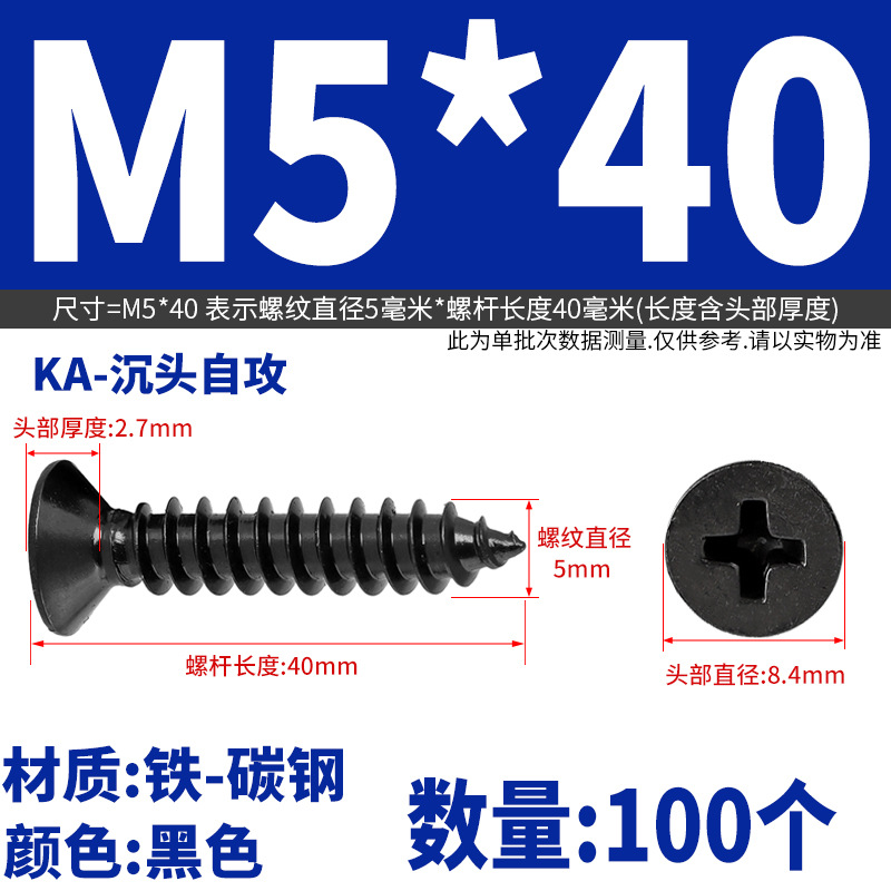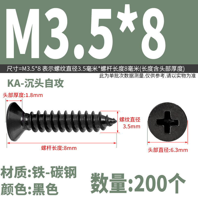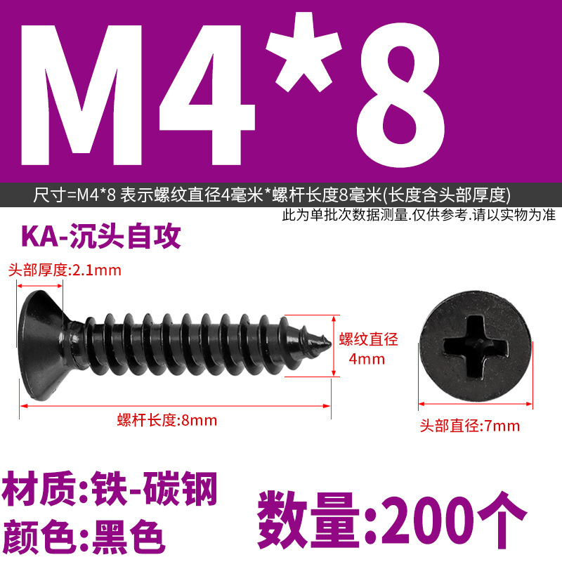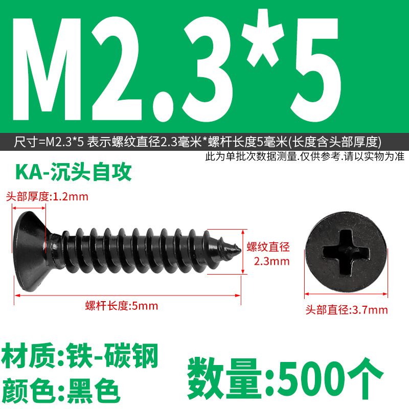 KA铁镀黑锌色十字沉头自攻螺丝钉平头木螺丝M2M2.3M2.6M3M3.5M4M5