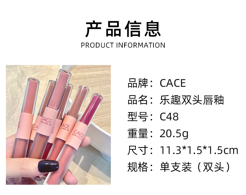 CACE乐趣双头唇釉6色可选 流行彩妆平价学生口红哑光热推一件代发