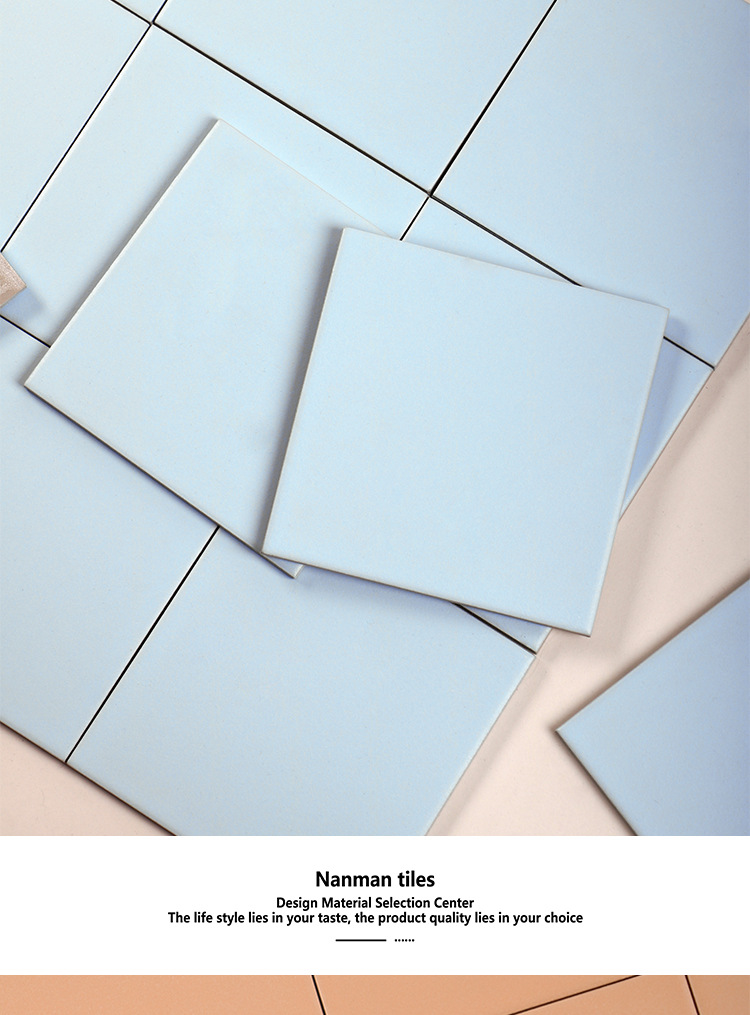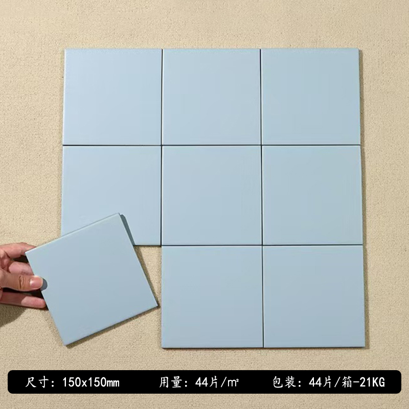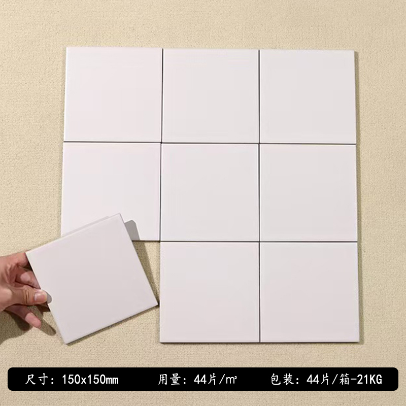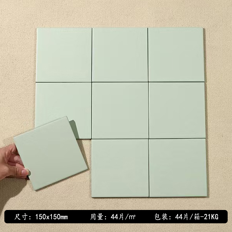 哑光平面通体瓷砖150x150地砖白色浅绿浅蓝背景墙卫生间厨房墙砖