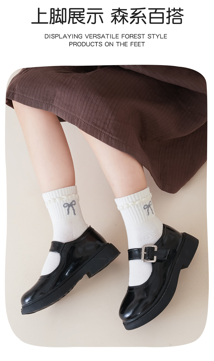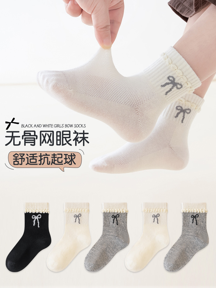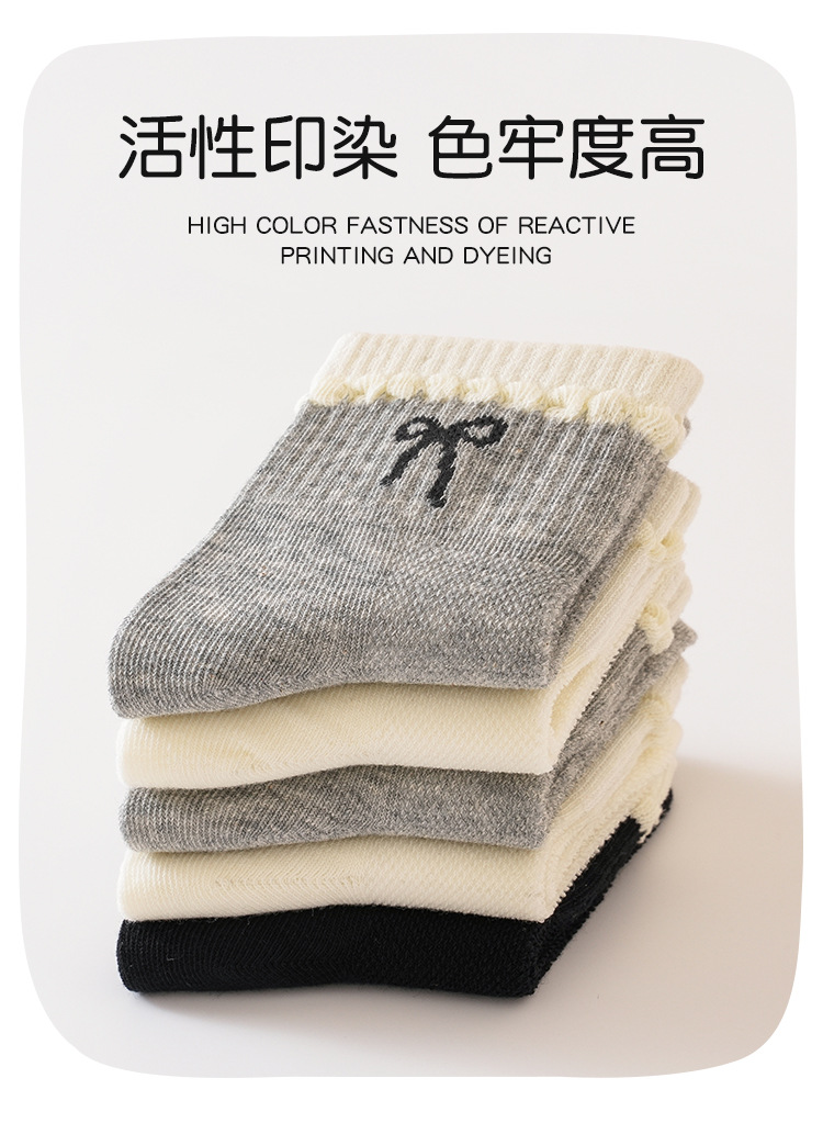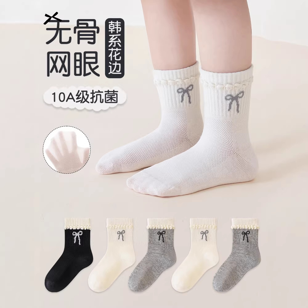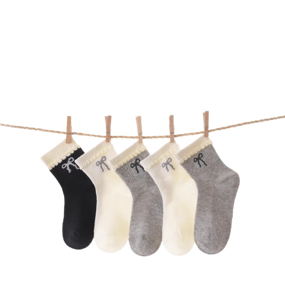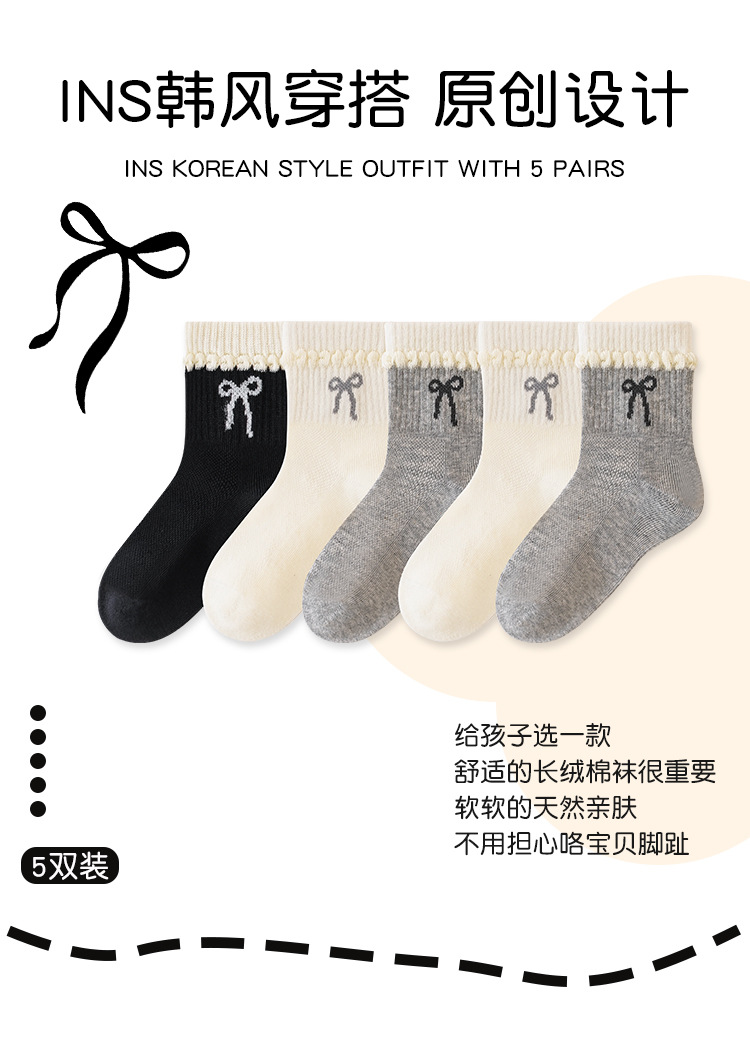儿童袜子春秋新款中筒袜简约色蝴蝶结潮流女孩子学生袜中筒袜子
