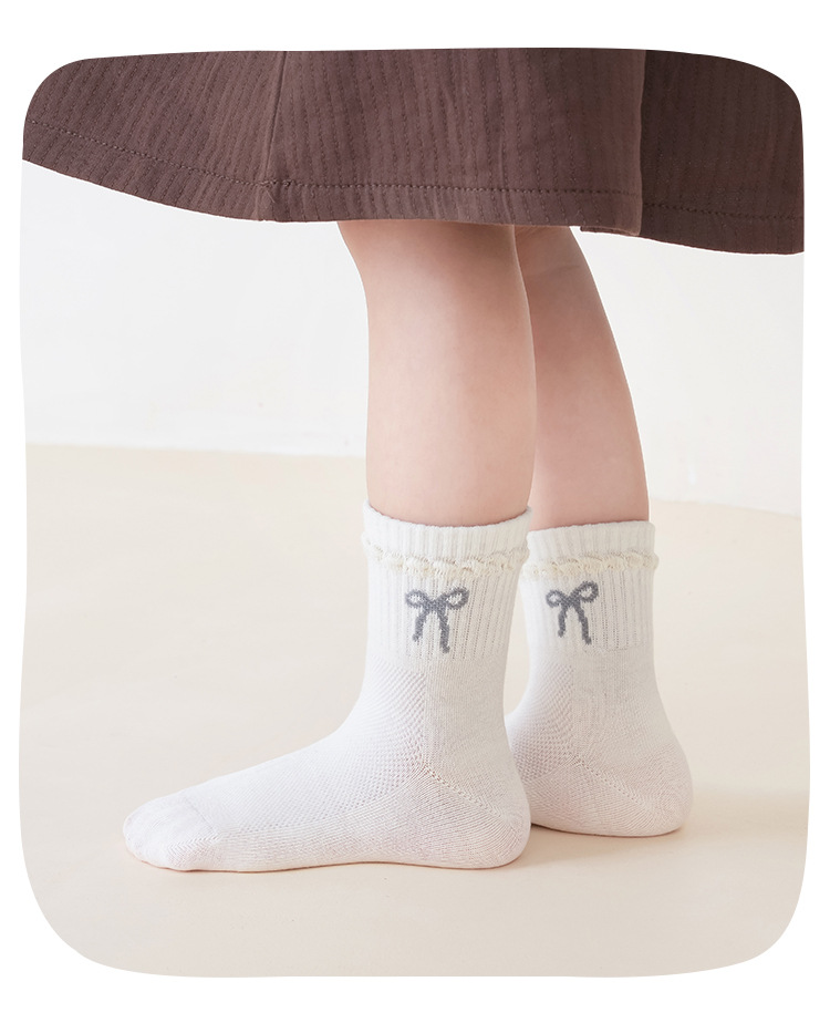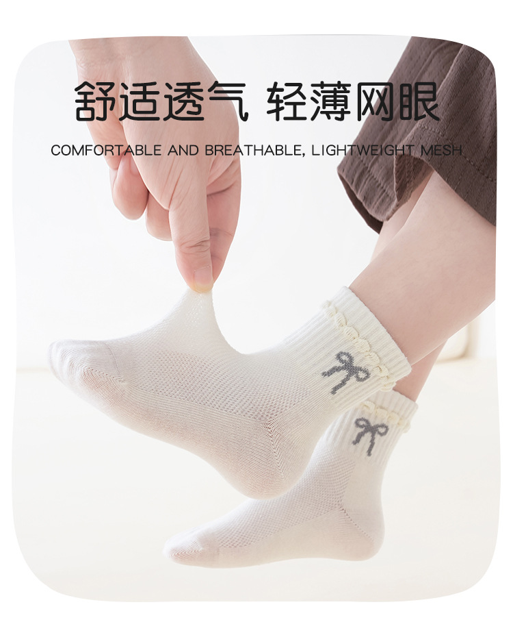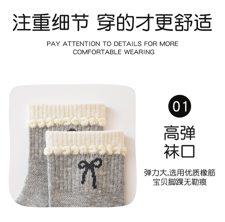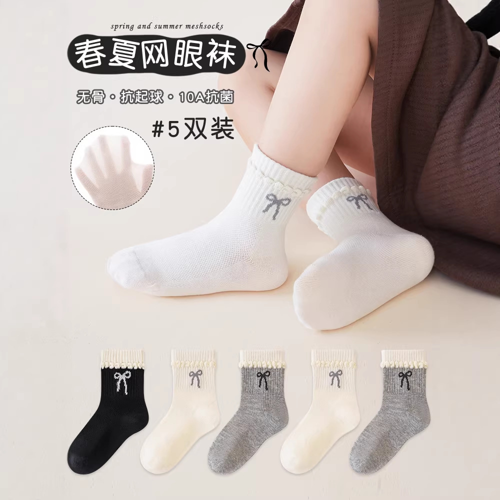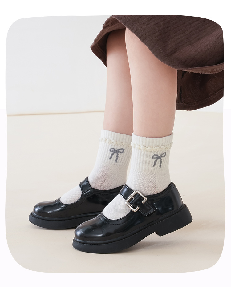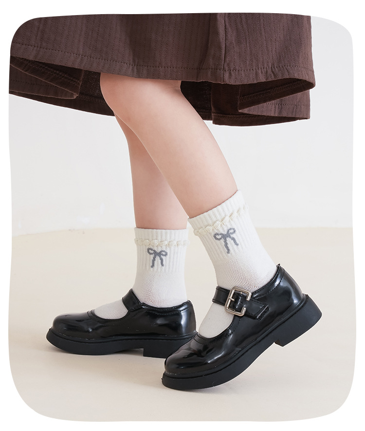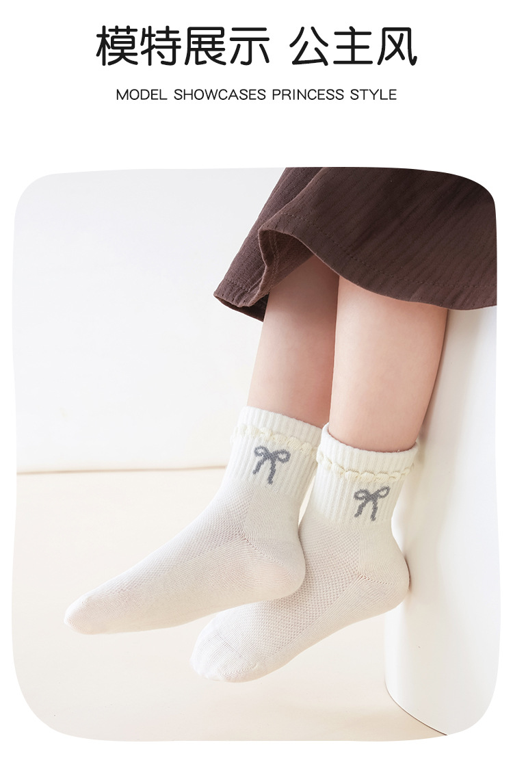 儿童袜子春秋新款中筒袜简约色蝴蝶结潮流女孩子学生袜中筒袜子