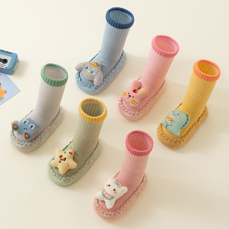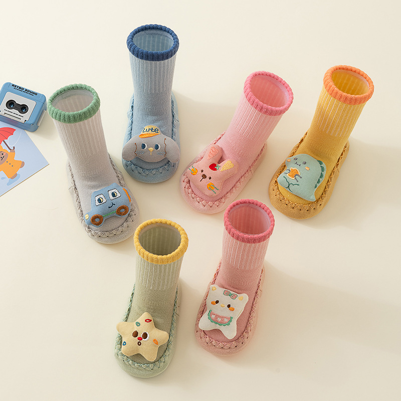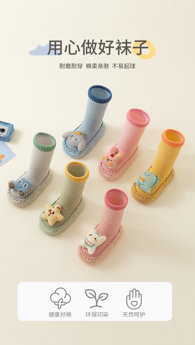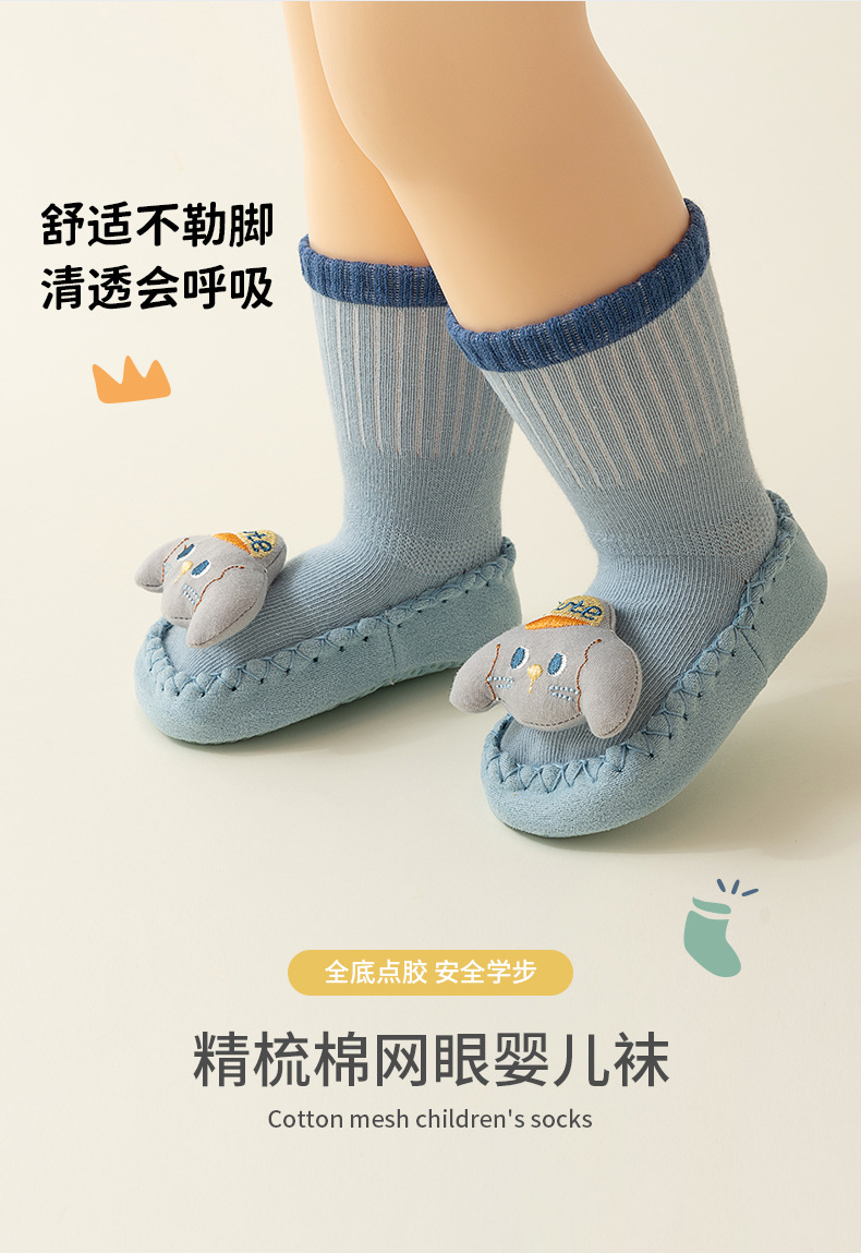 婴儿袜子a类纯棉中筒地板袜春款0-2岁宝宝新生儿防滑学步鞋袜儿童