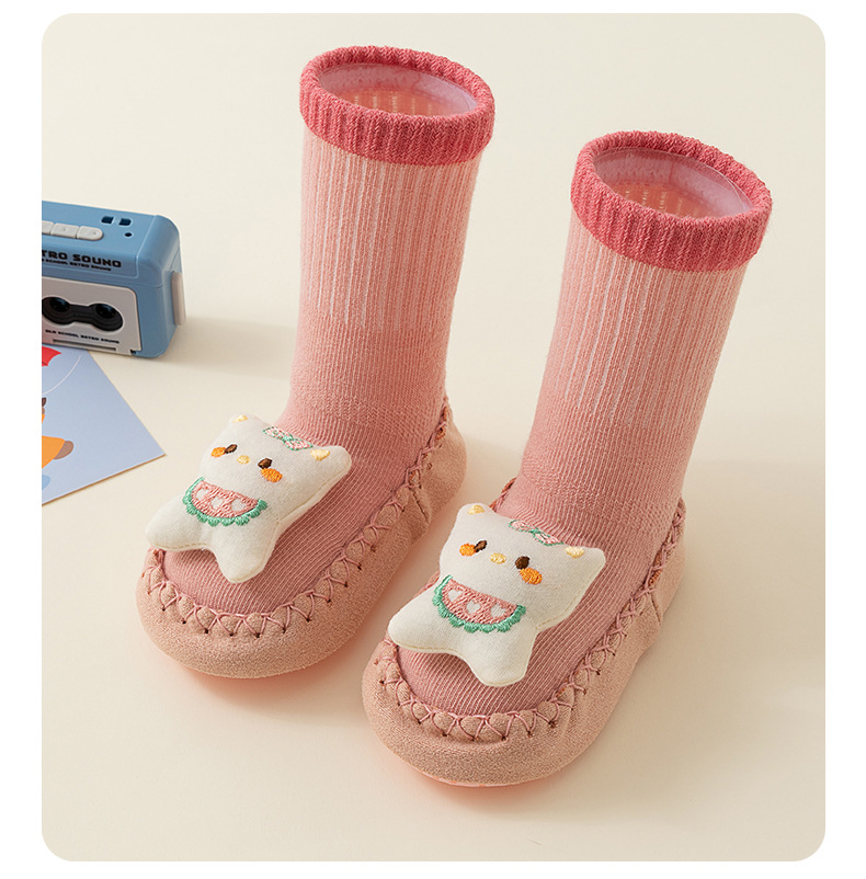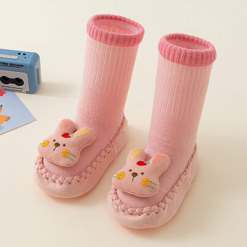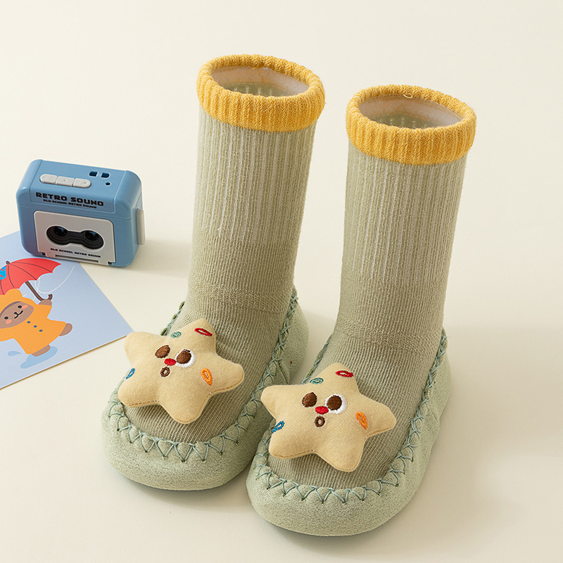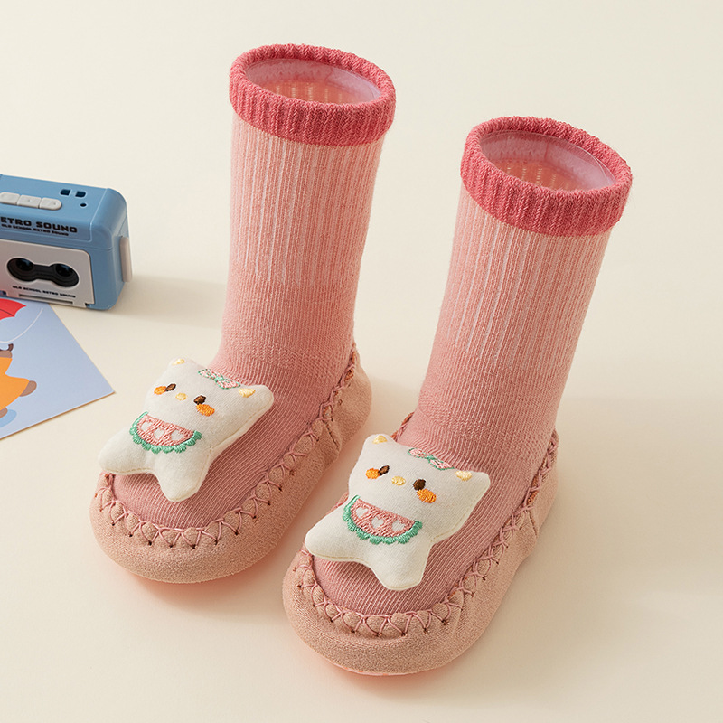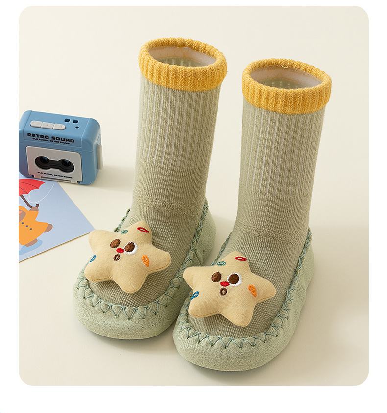 婴儿袜子a类纯棉中筒地板袜春款0-2岁宝宝新生儿防滑学步鞋袜儿童
