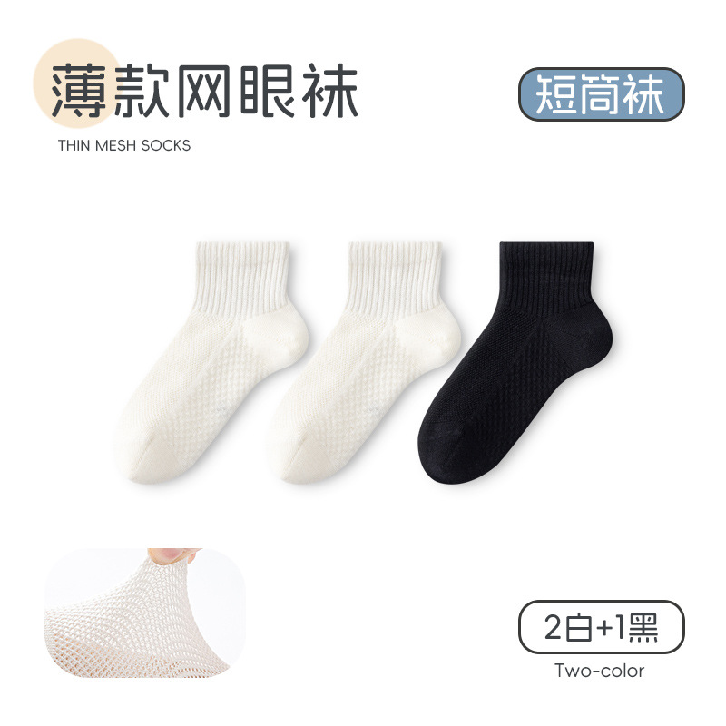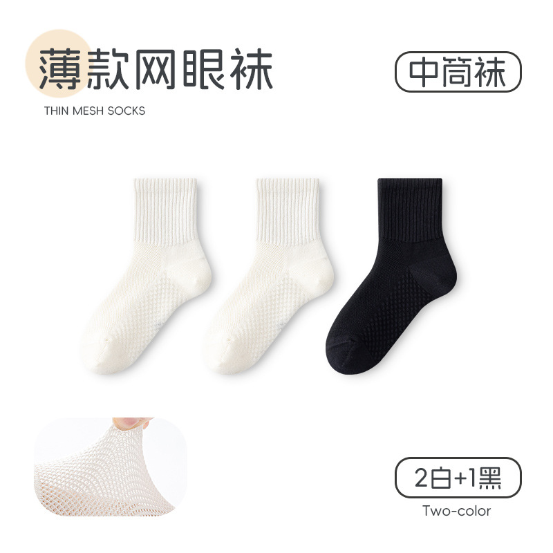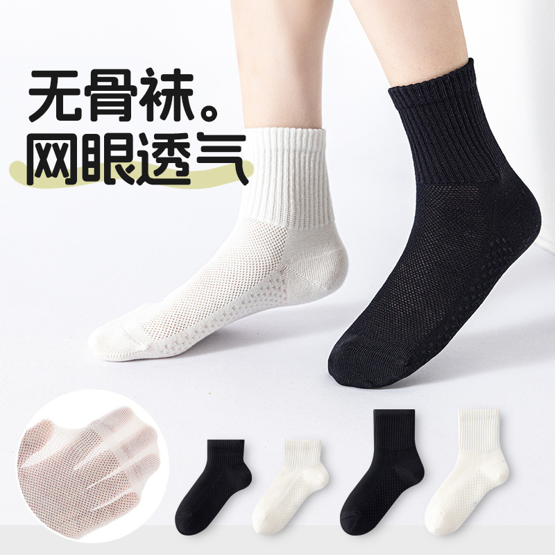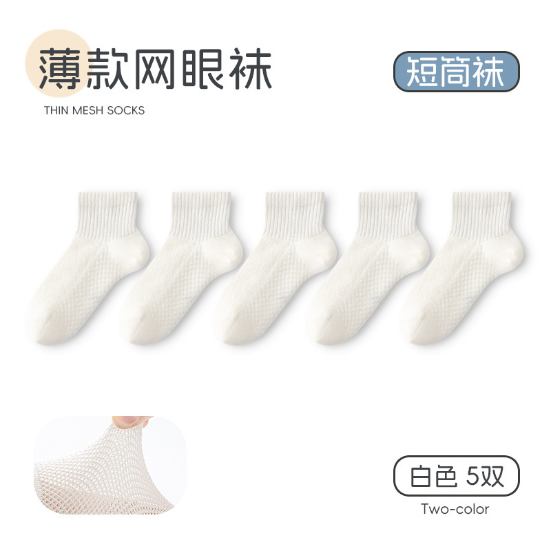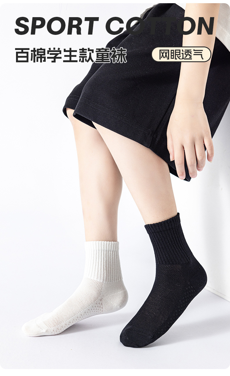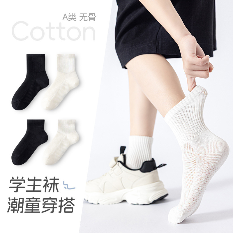 春夏季儿童袜子百棉透气纯色百搭网眼运动棉袜A类无骨耐穿学生袜