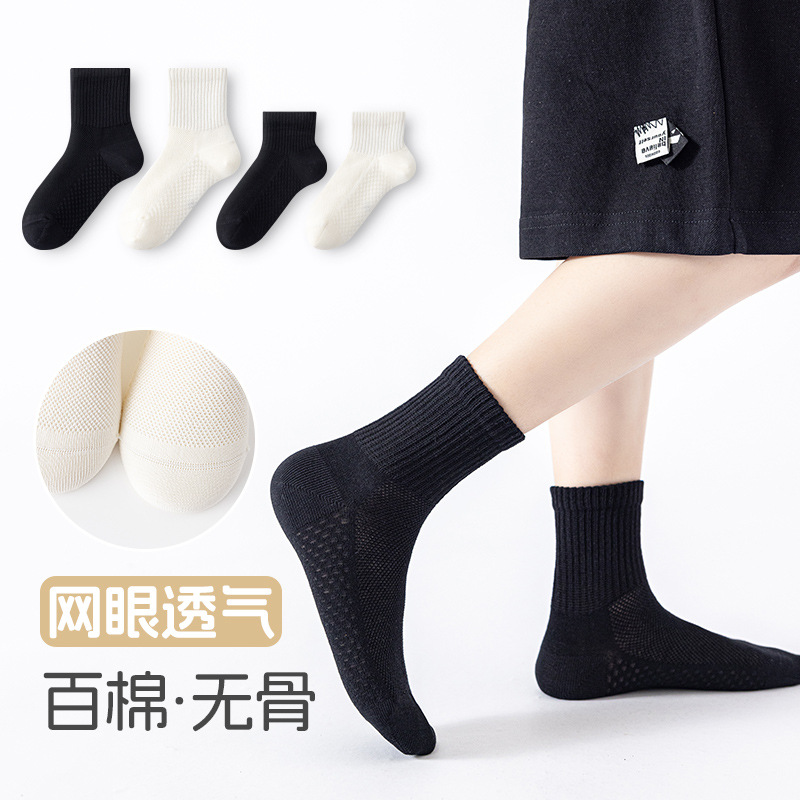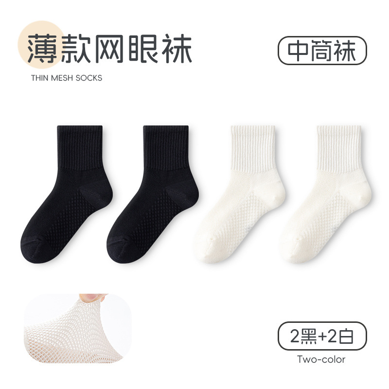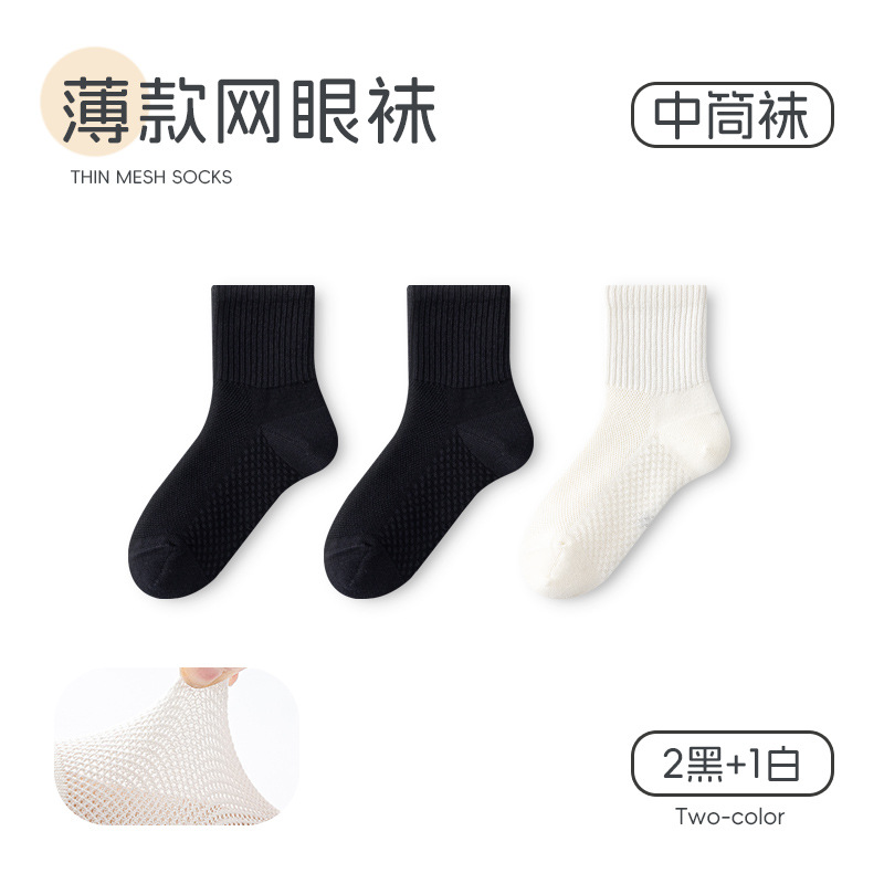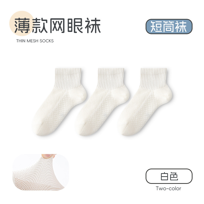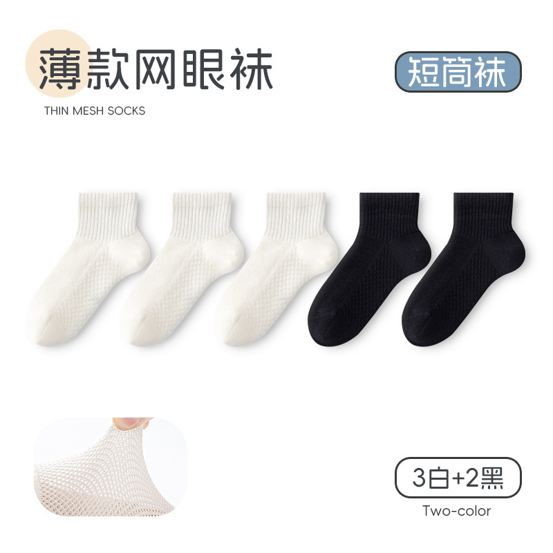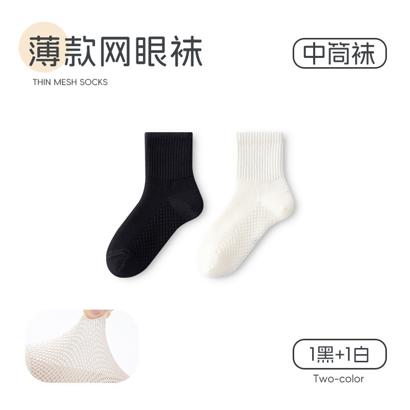 春夏季儿童袜子百棉透气纯色百搭网眼运动棉袜A类无骨耐穿学生袜
