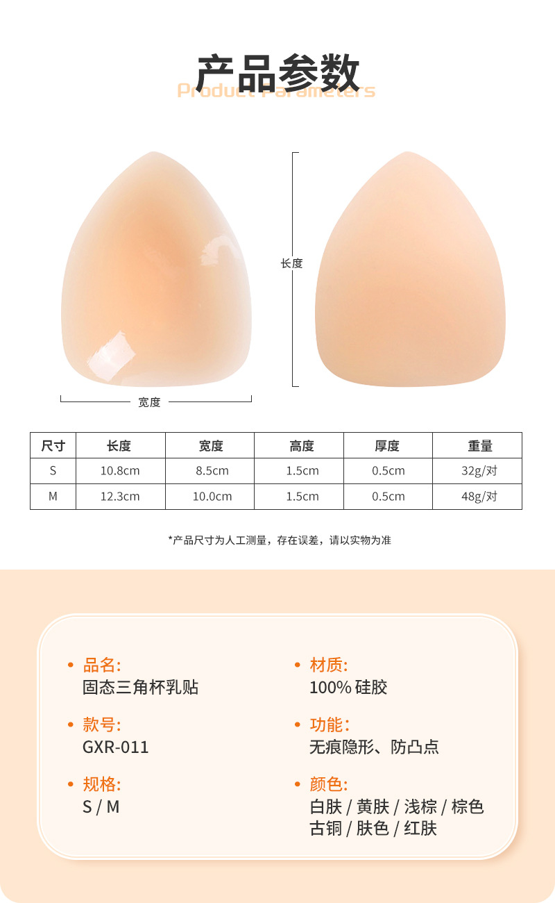 跨境 三角杯8-10CM固态纯硅胶7色有胶乳贴 泳衣比基尼防凸点胸贴