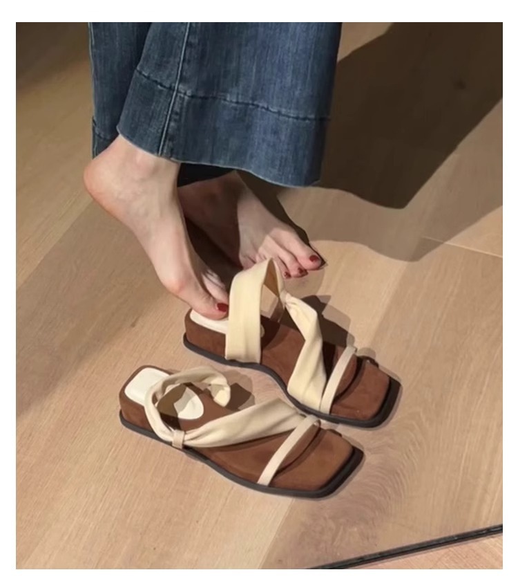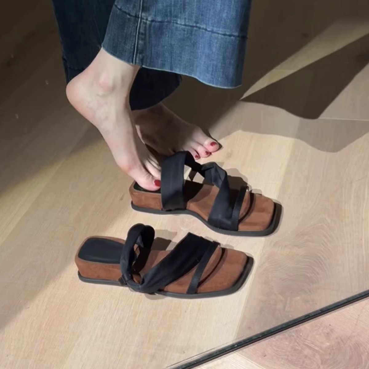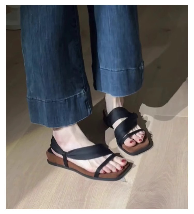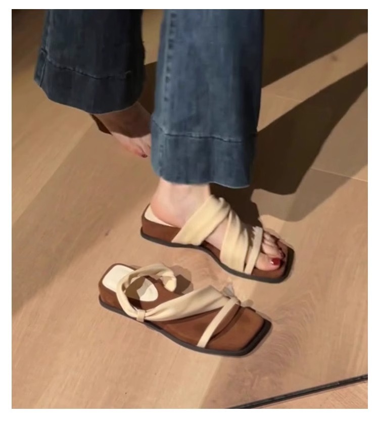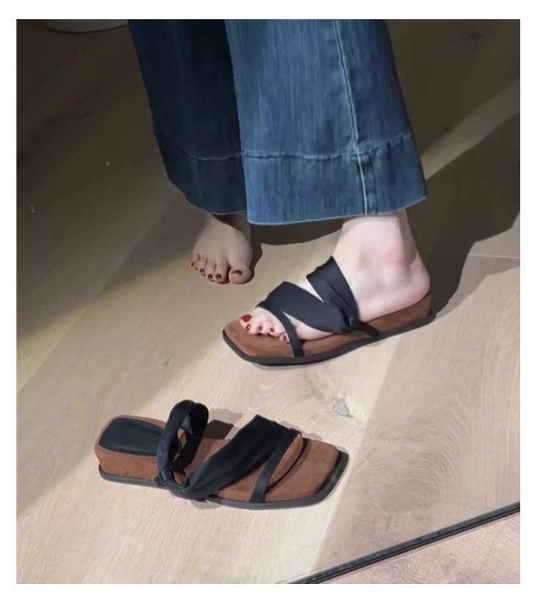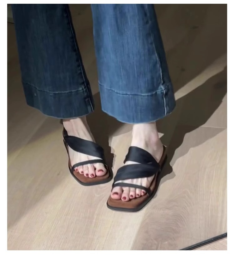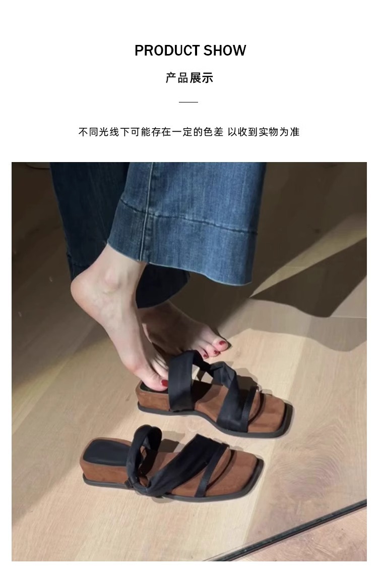 羊皮版~厚底方头一字带凉拖鞋女外穿气质配裙子凉鞋两穿拖鞋舒适