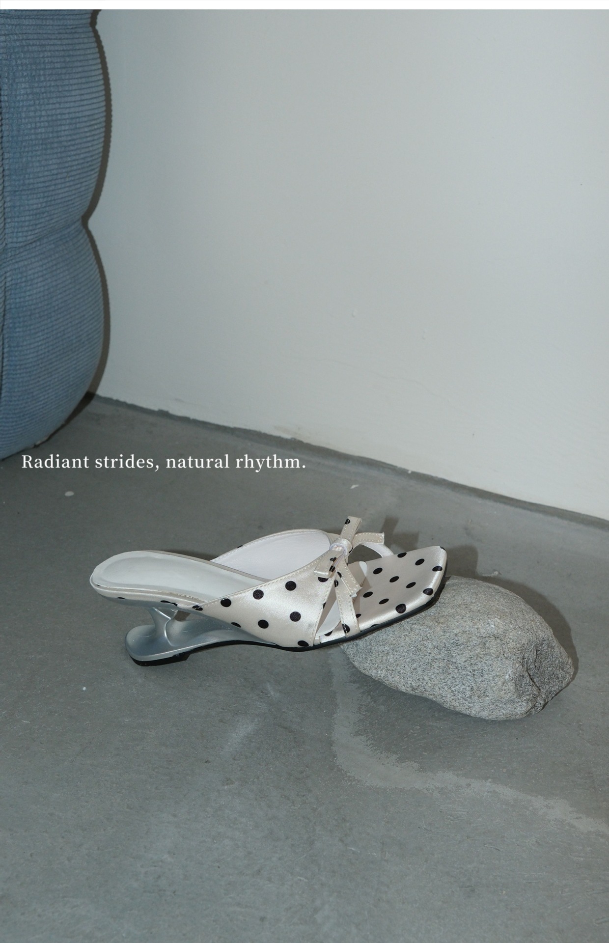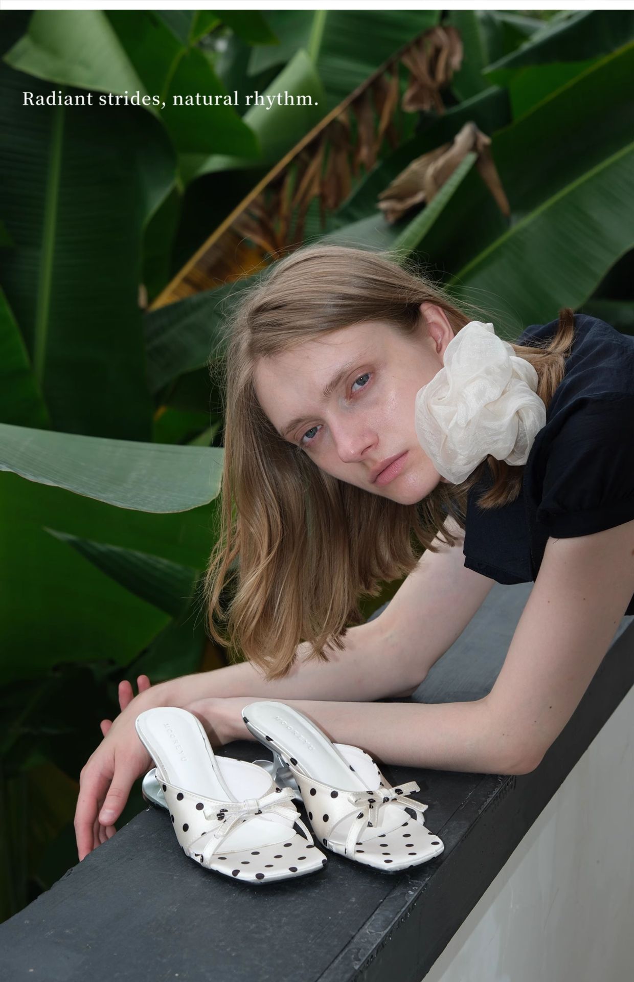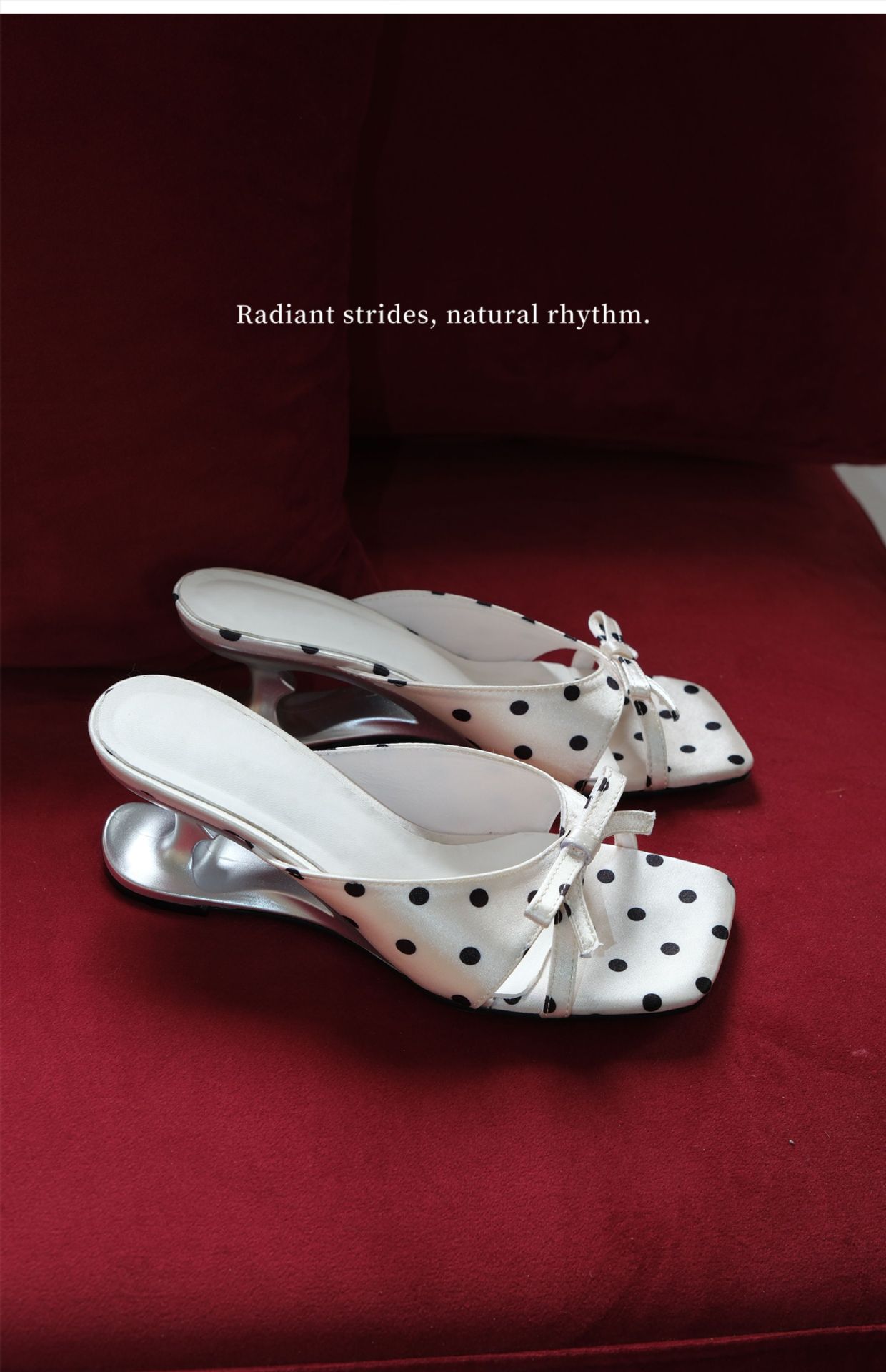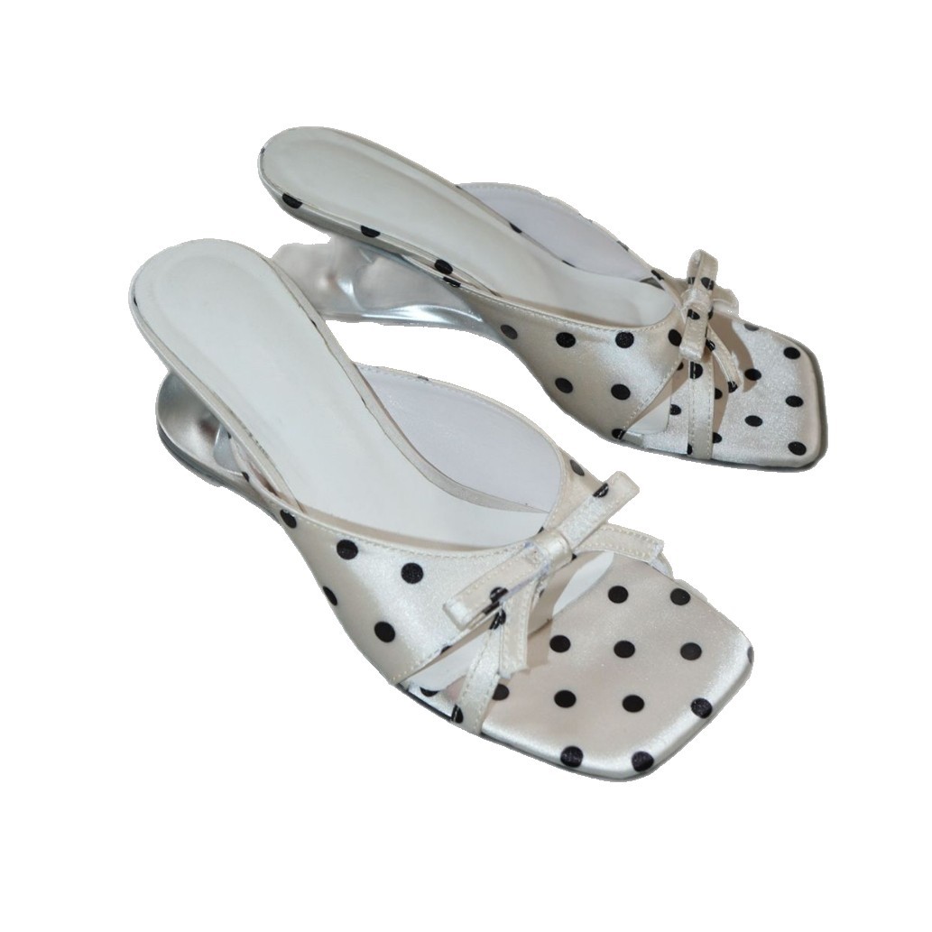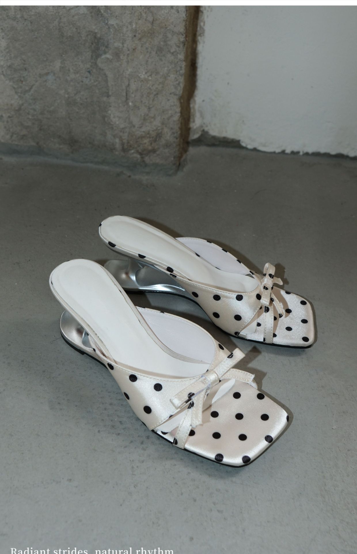 【现货】设计感小众异形跟拖鞋复古蝴蝶结波点爱心高跟方头凉鞋