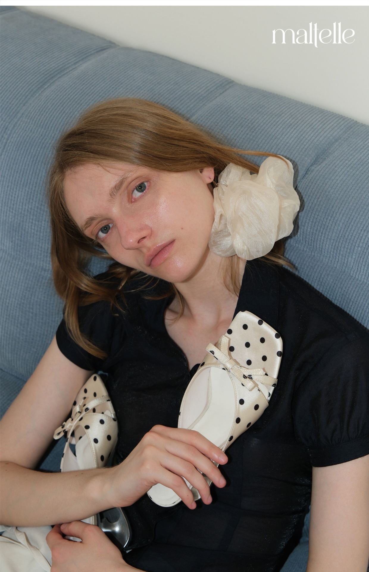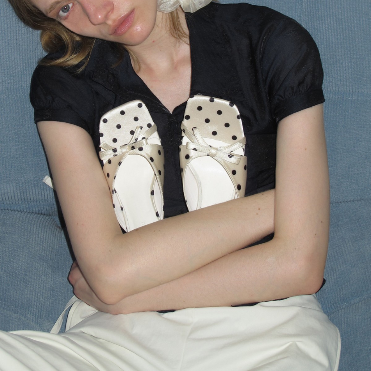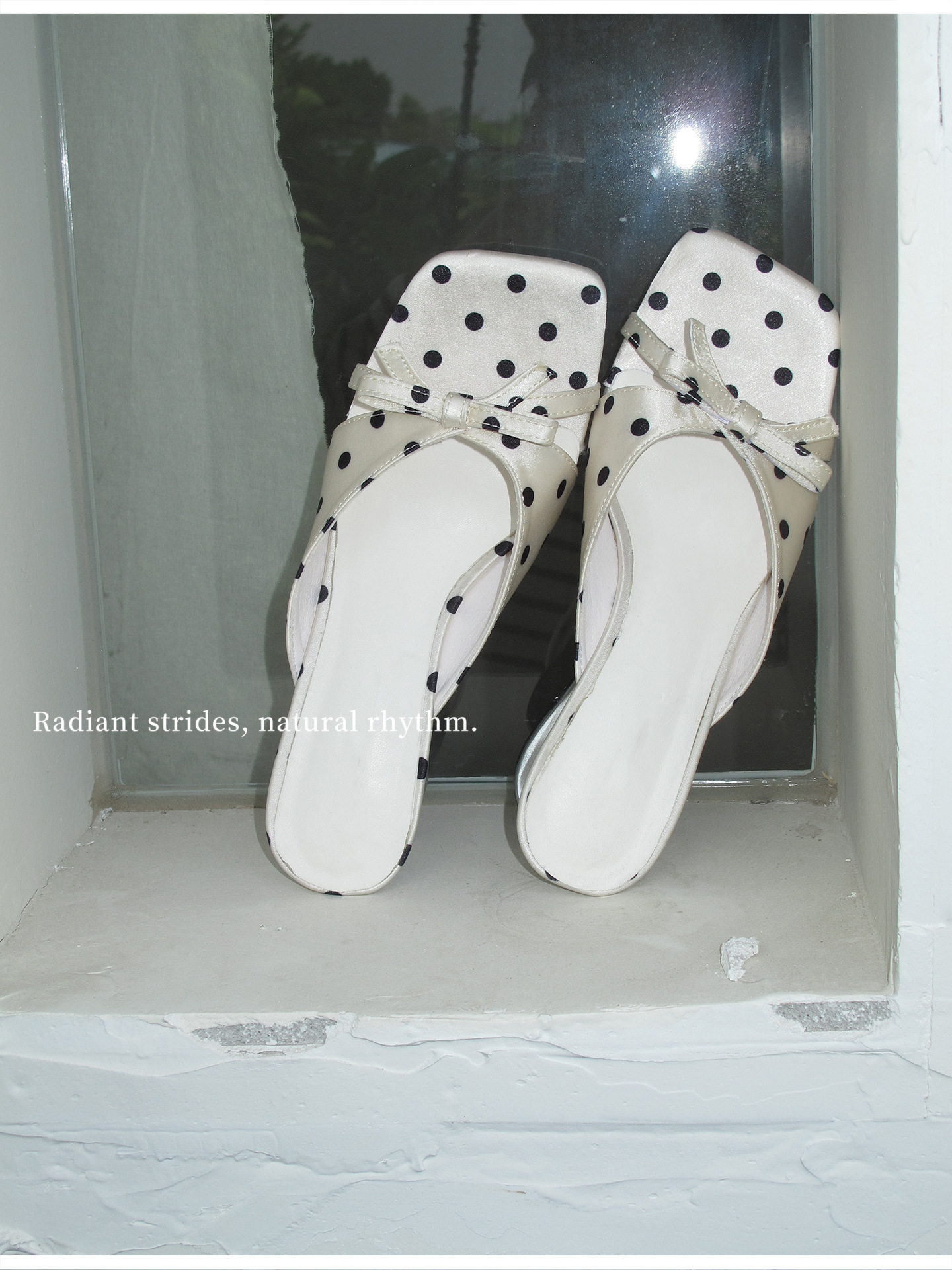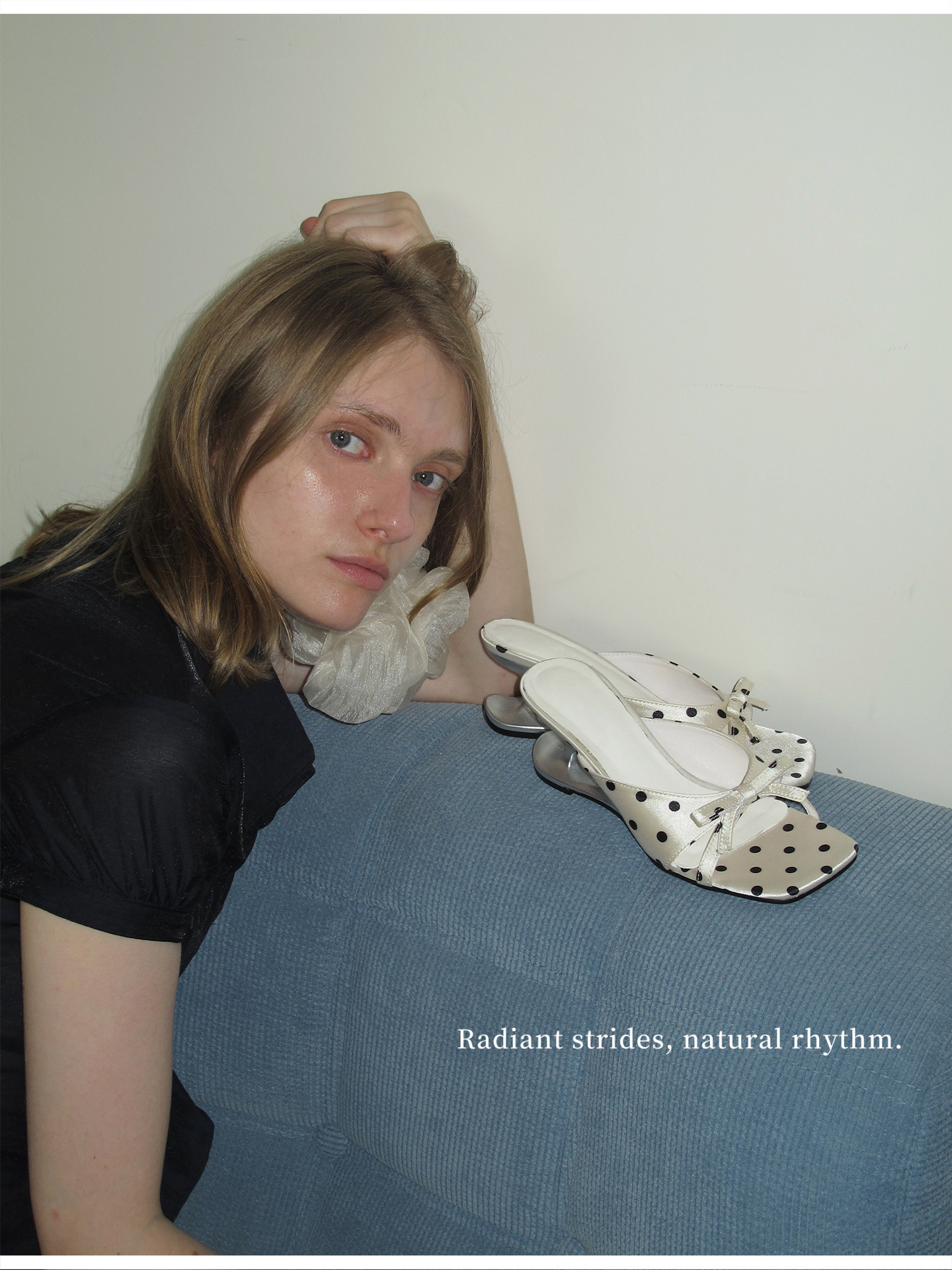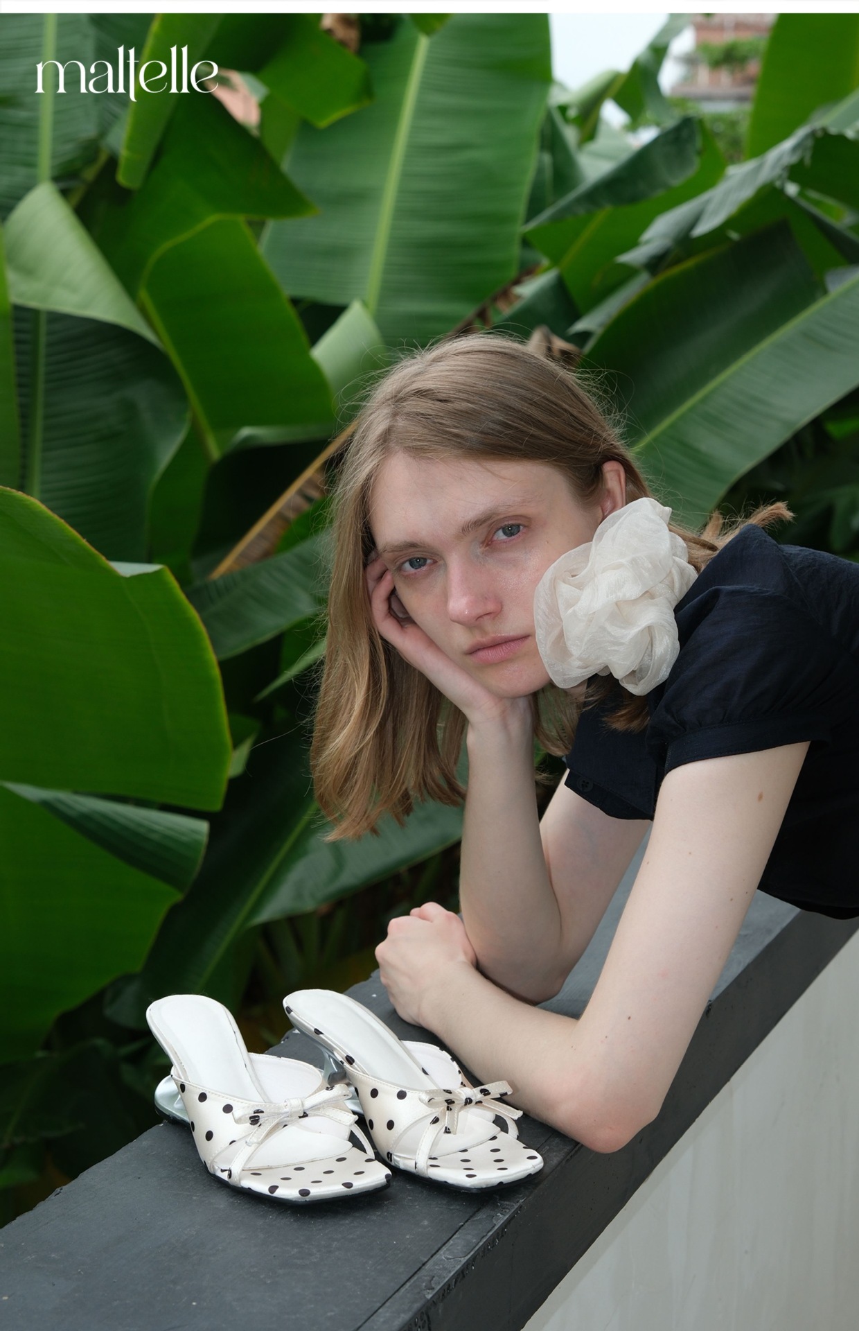 【现货】设计感小众异形跟拖鞋复古蝴蝶结波点爱心高跟方头凉鞋