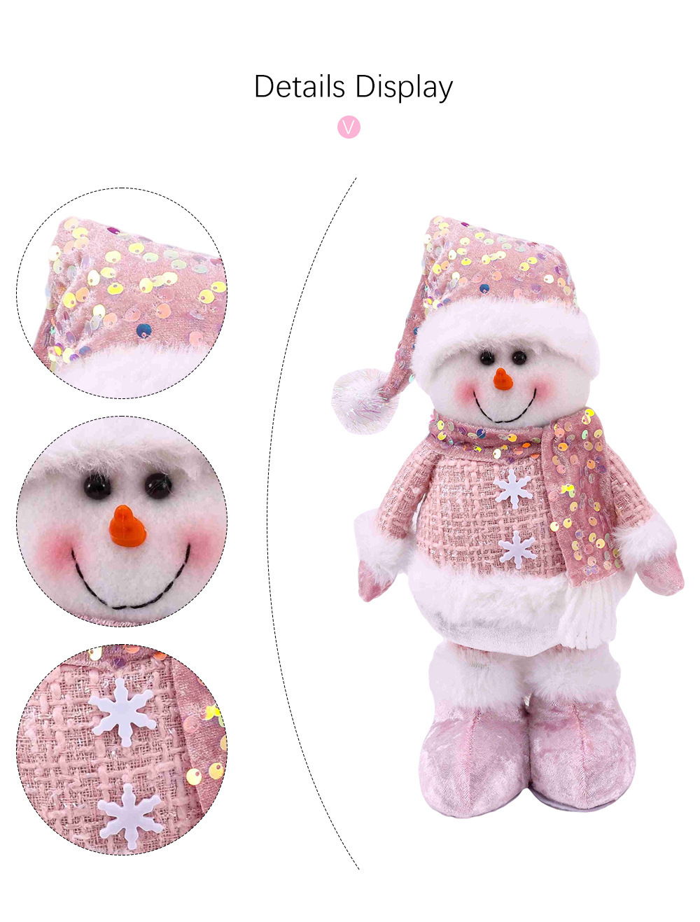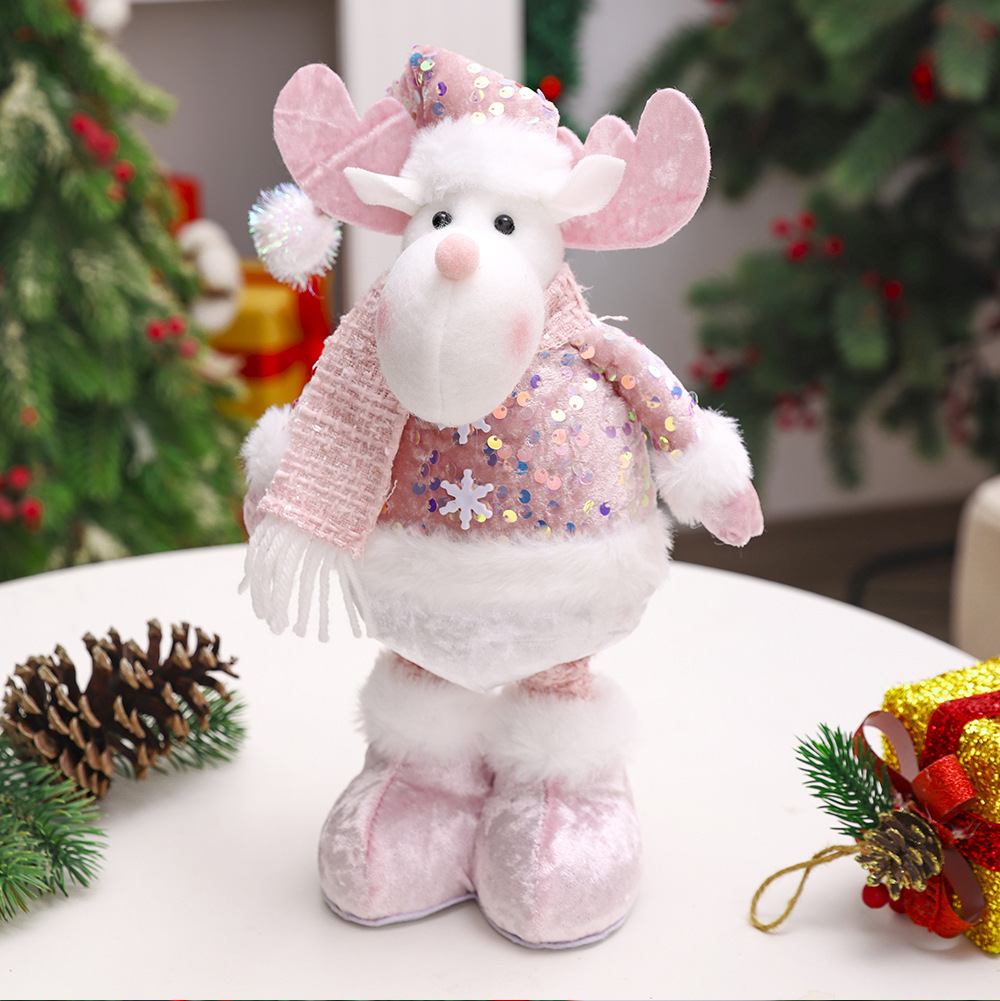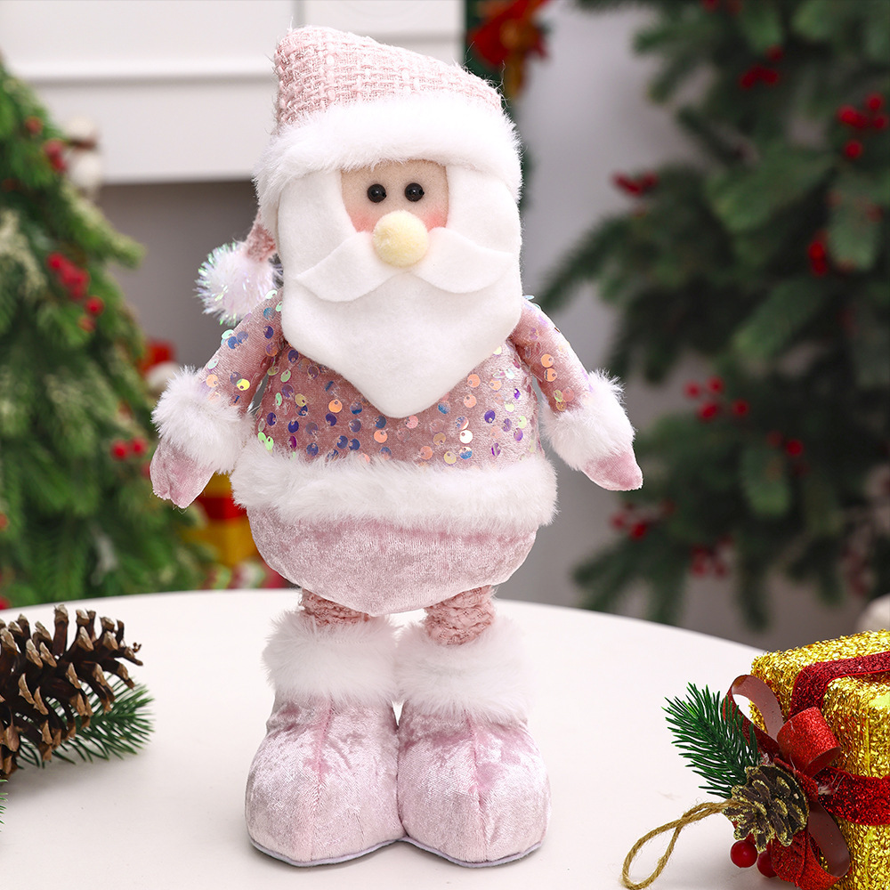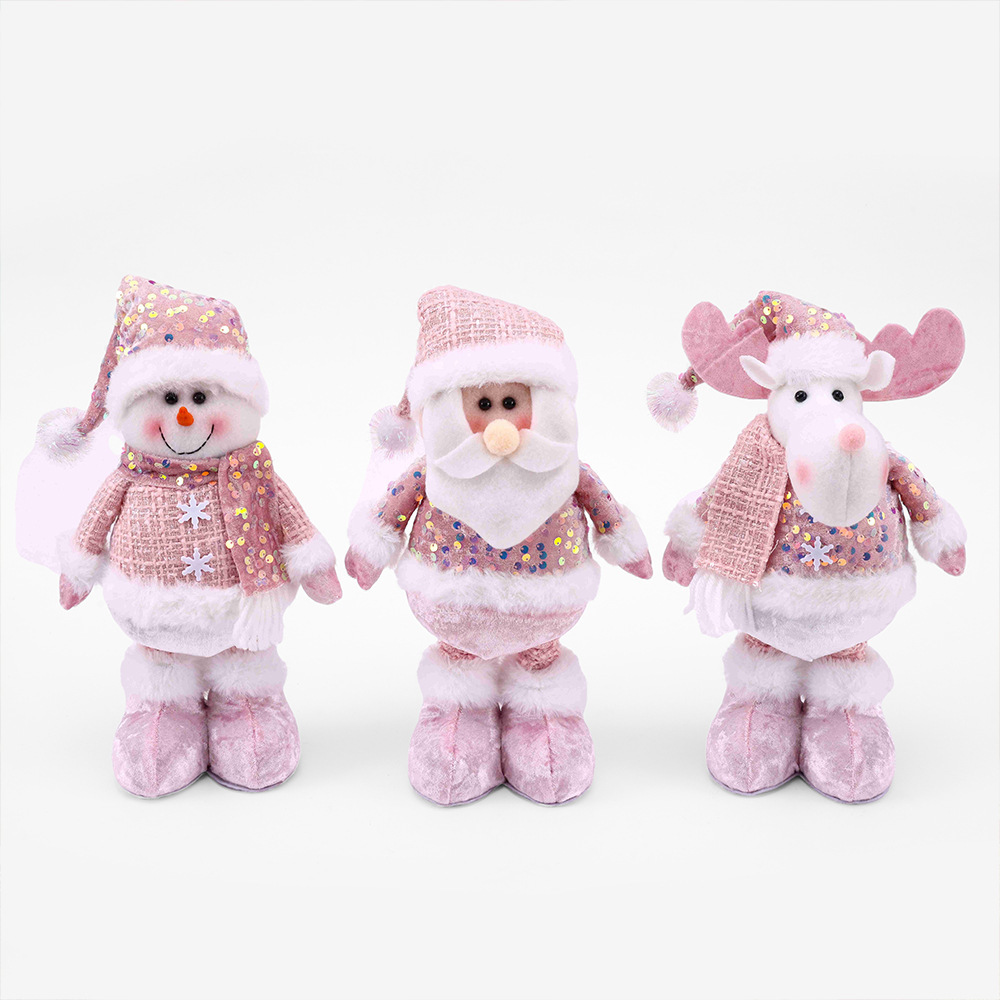 跨境新品圣诞亮片粉色系列伸缩公仔橱窗道具装饰配饰搭配用品