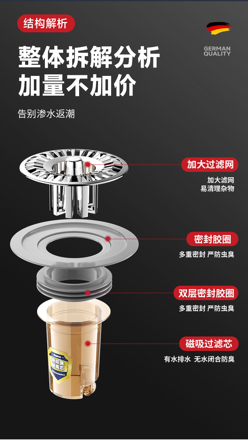 地漏防臭卫生间内芯浴室排水口过滤网下水道封口盖卫生间通用安装