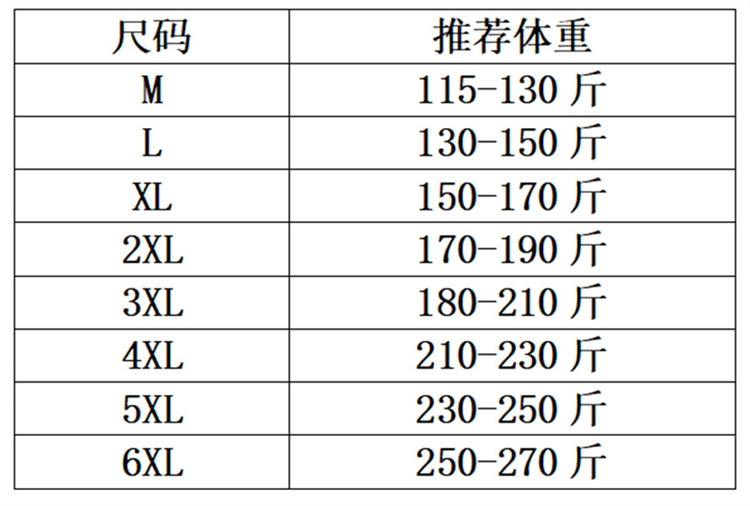 | 6XL建议250-270斤 | USD $0.0 | 2995 piece available |