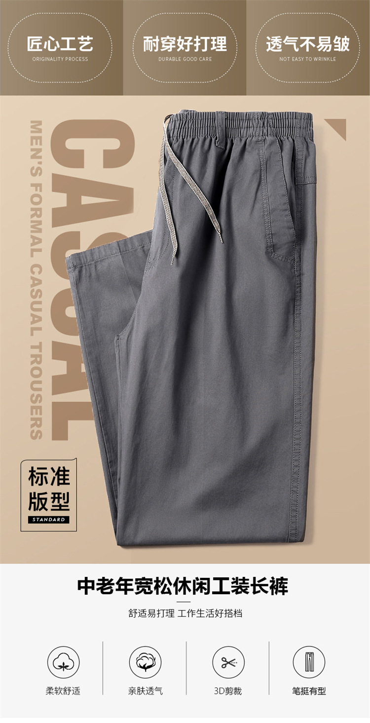 纯棉男士休闲裤2025春秋季新款中年长裤男商务休闲直筒工装裤子男