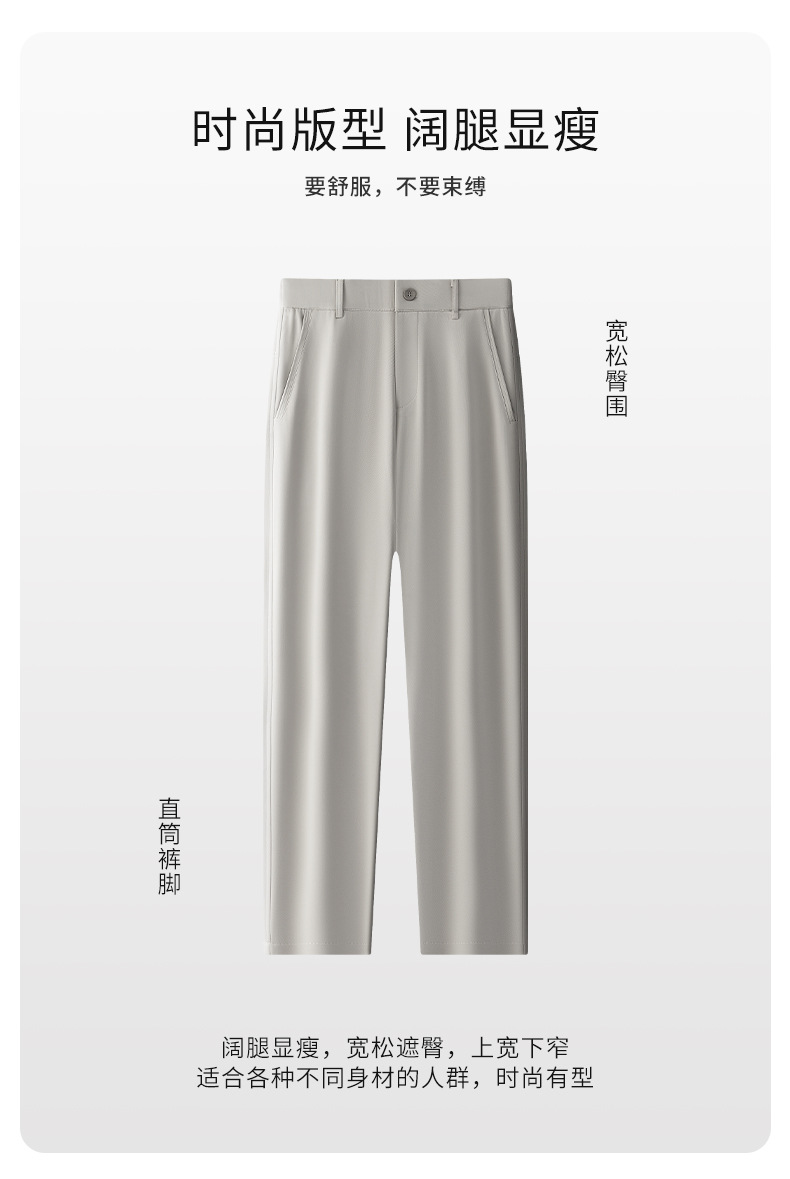 阿里虎男装外贸跨境微锥小西裤简约百搭直筒宽松男裤商务340g男士