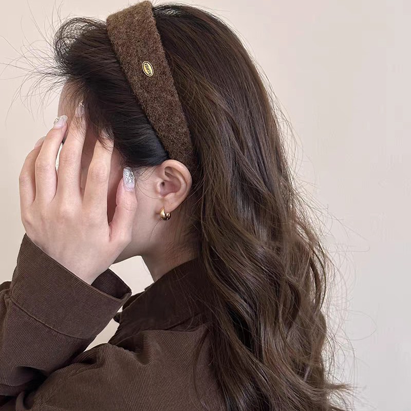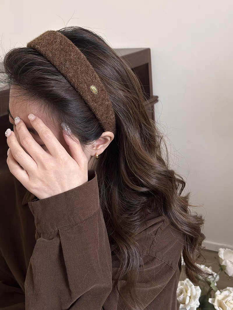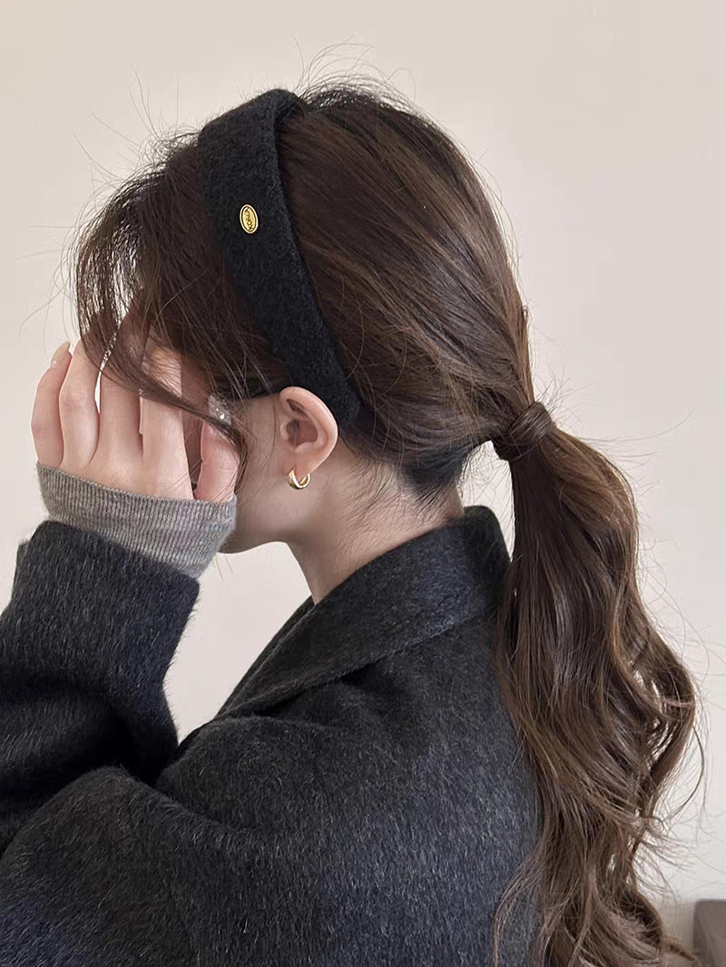 质感超好!秋冬毛呢金标宽边发箍法式外出百搭发卡高颅顶头箍发饰