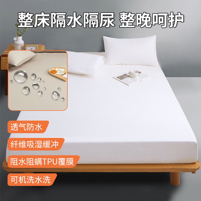 跨境防水隔尿床笠a类母婴级床垫保护套纯色磨毛透气款床罩笠批发