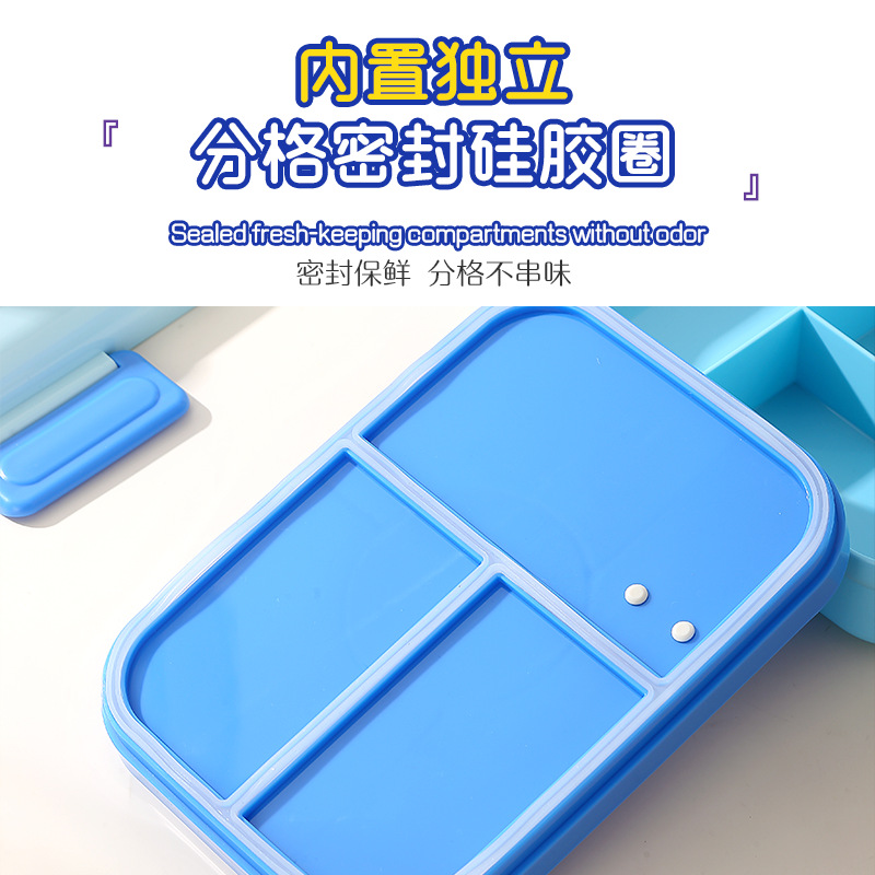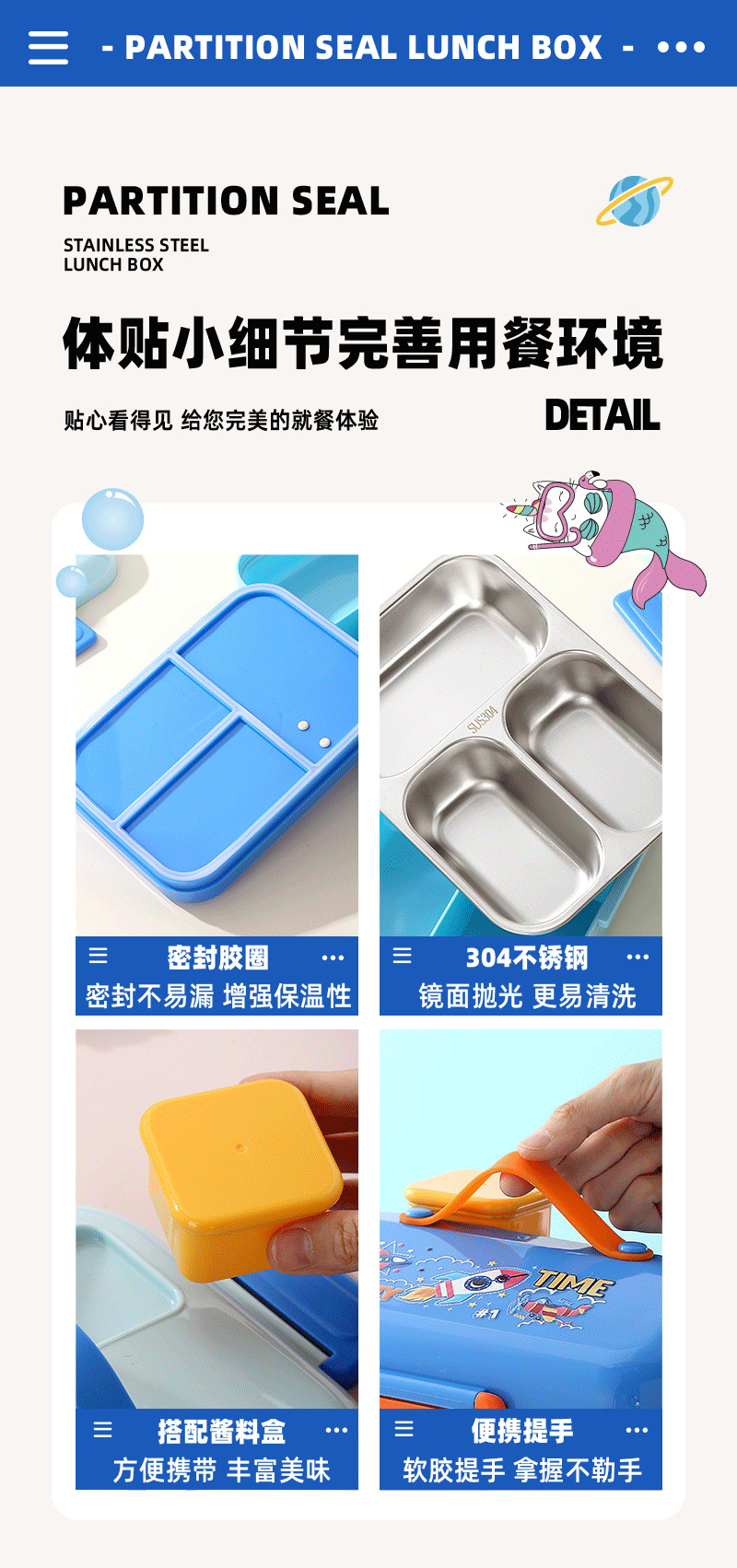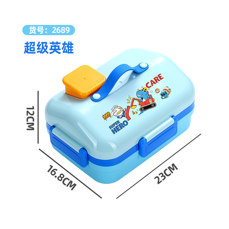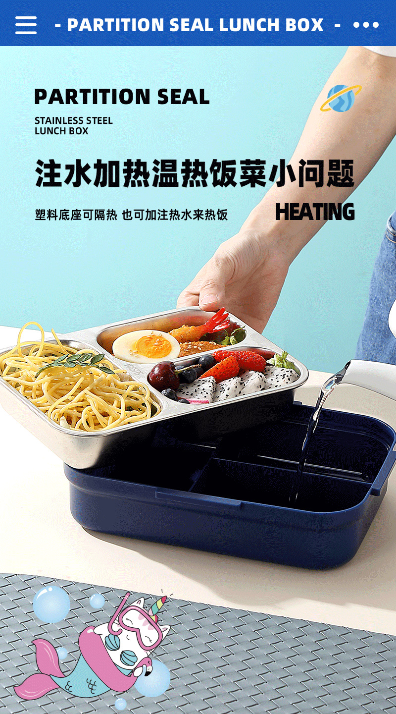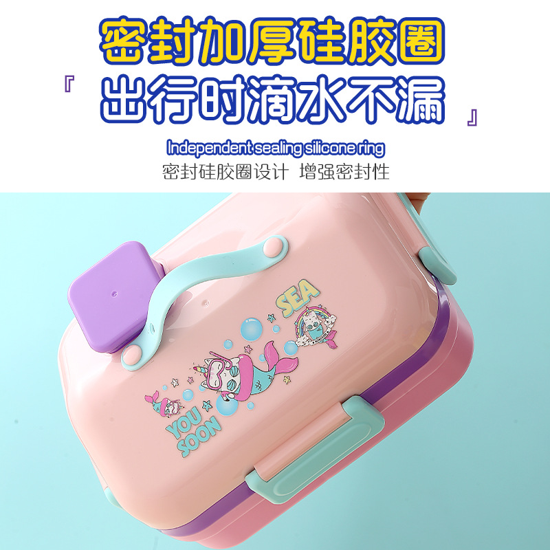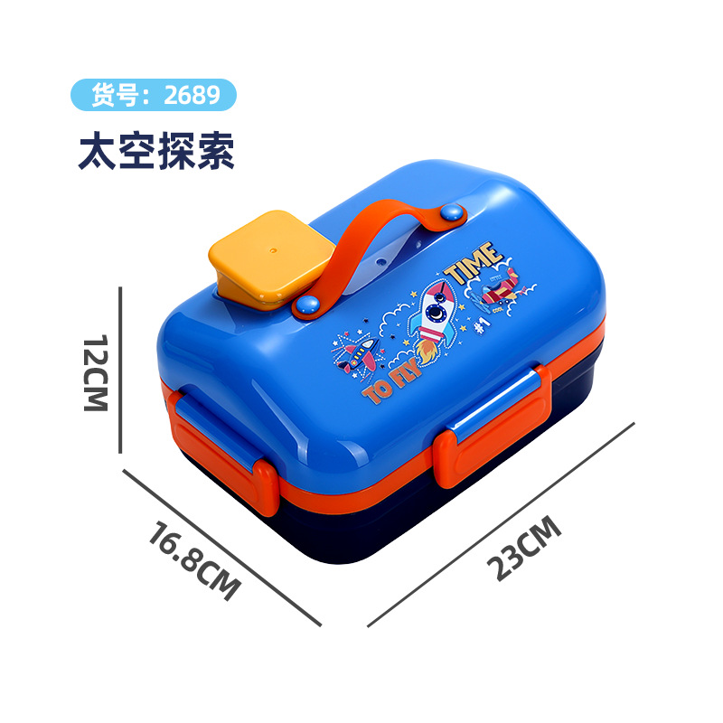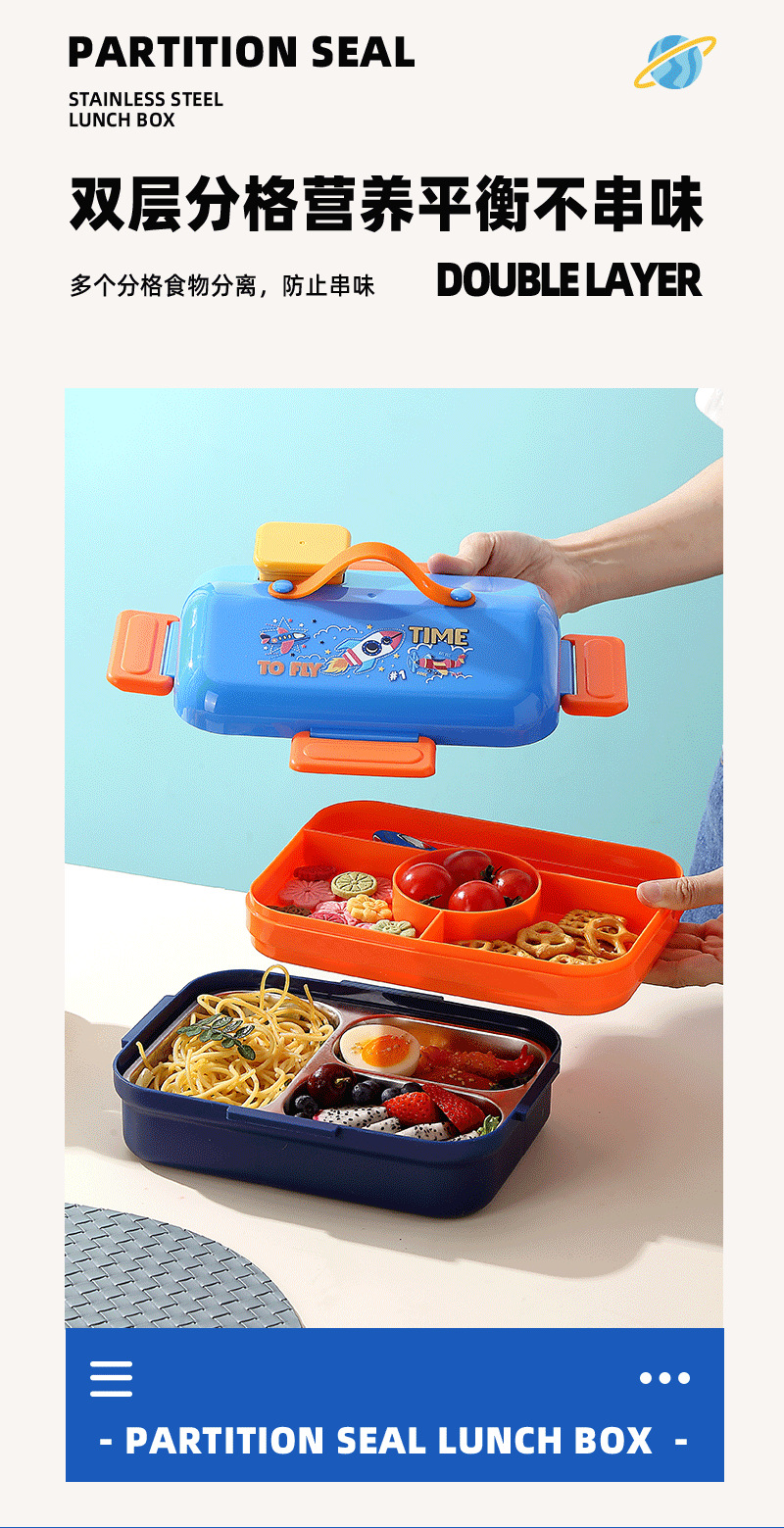 跨境卡通长方形不锈钢饭盒大容量双层密封野餐便当盒太空人午餐盒