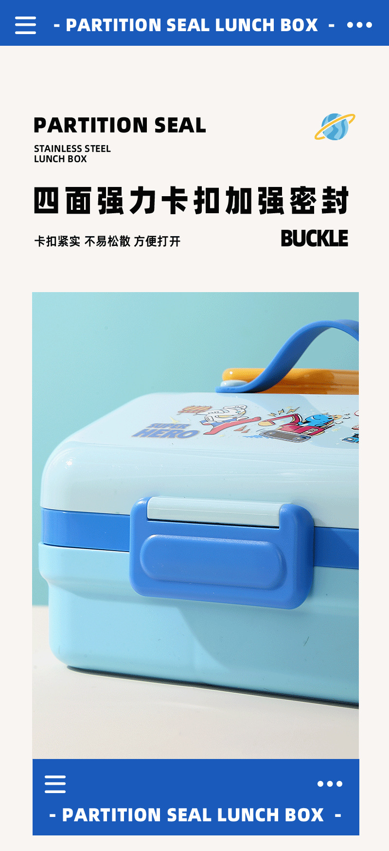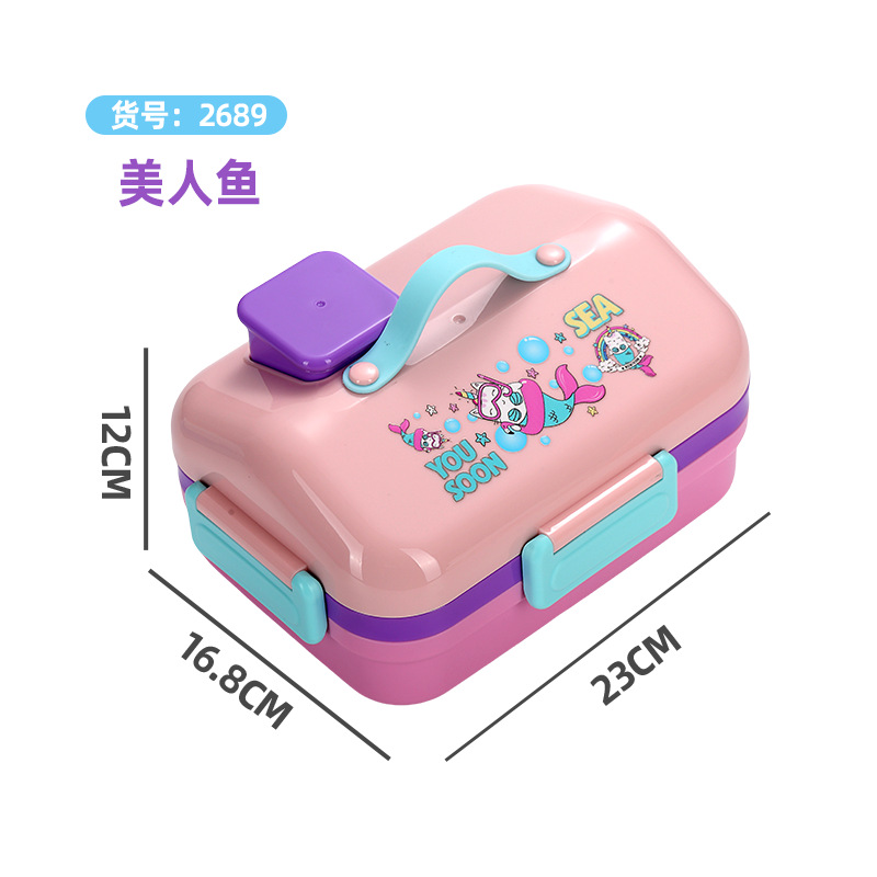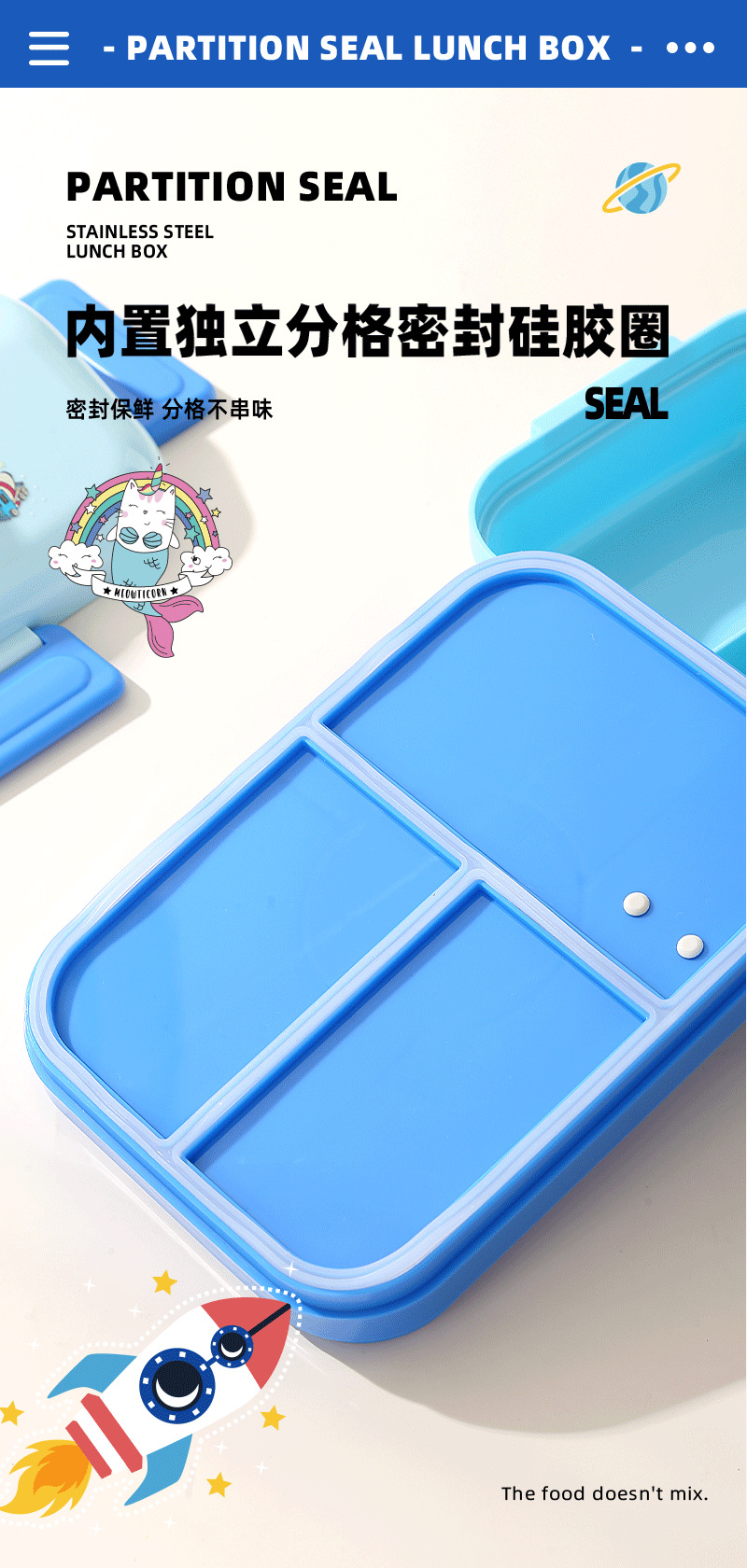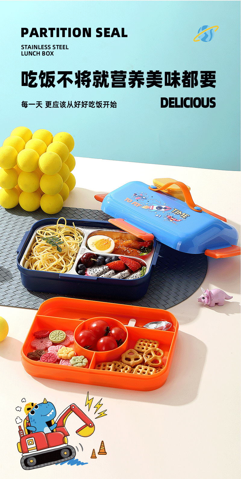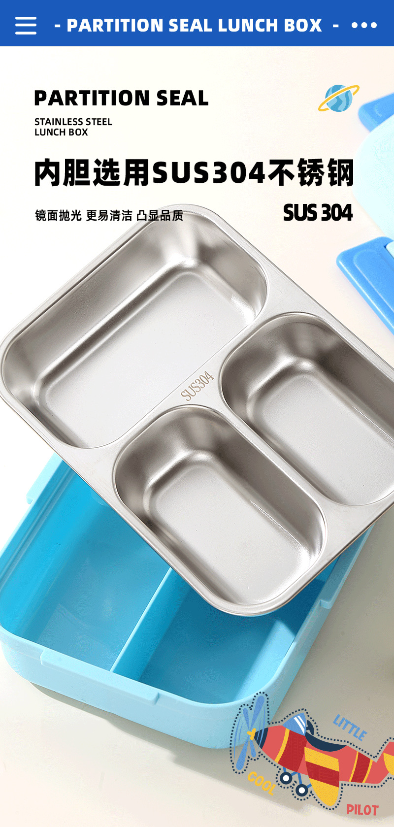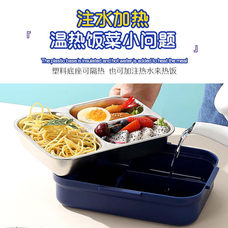 跨境卡通长方形不锈钢饭盒大容量双层密封野餐便当盒太空人午餐盒