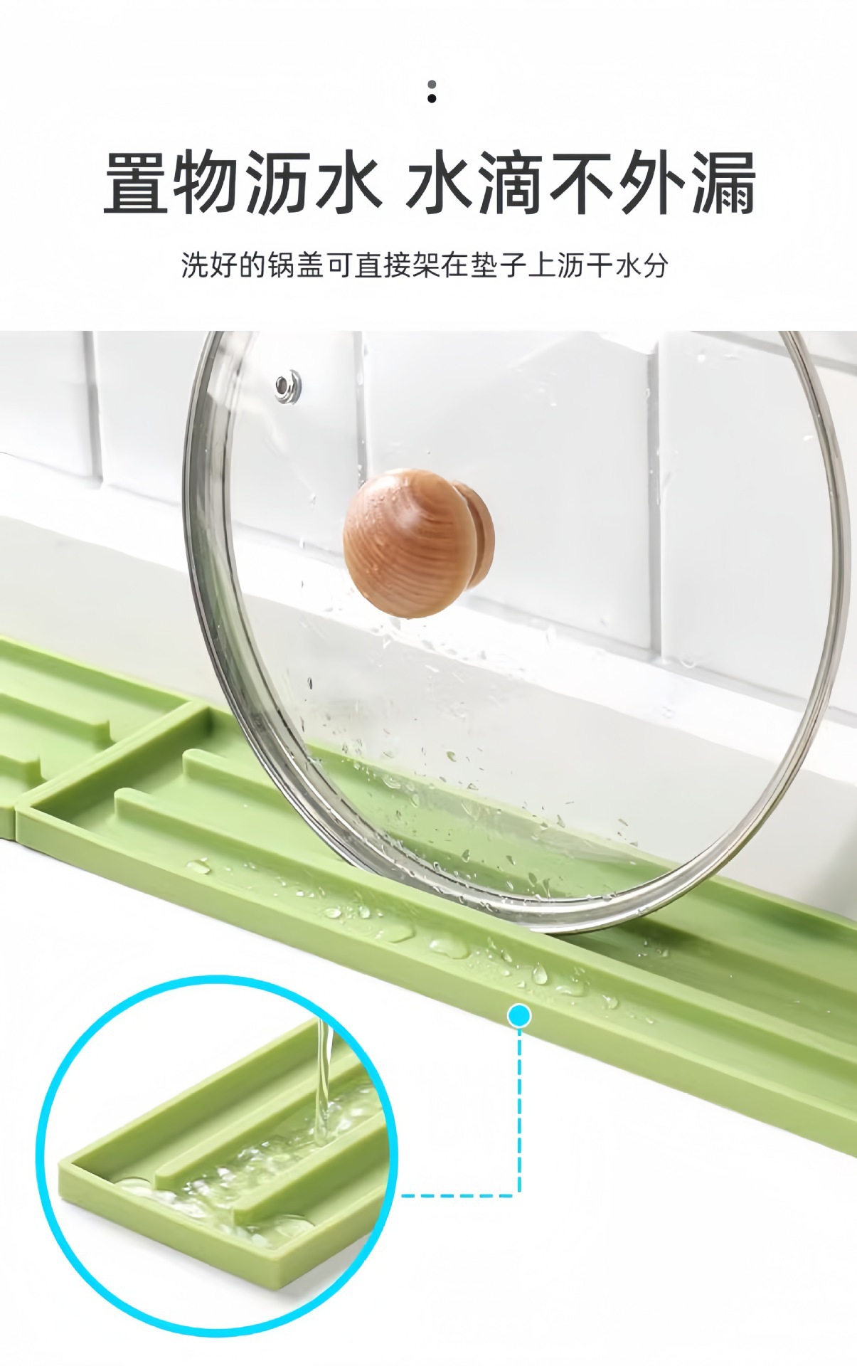 防滑沥水灶台锅铲收纳垫窄缝锅盖收纳垫家用厨房多功能台面放置垫