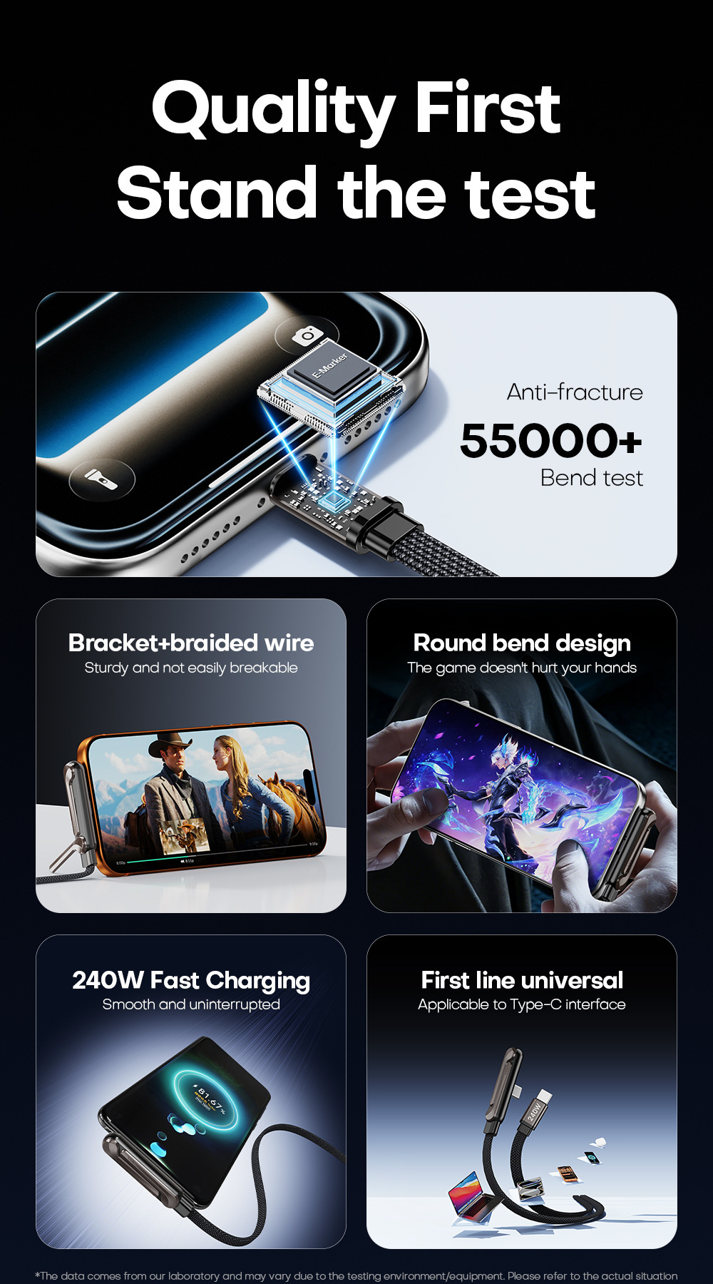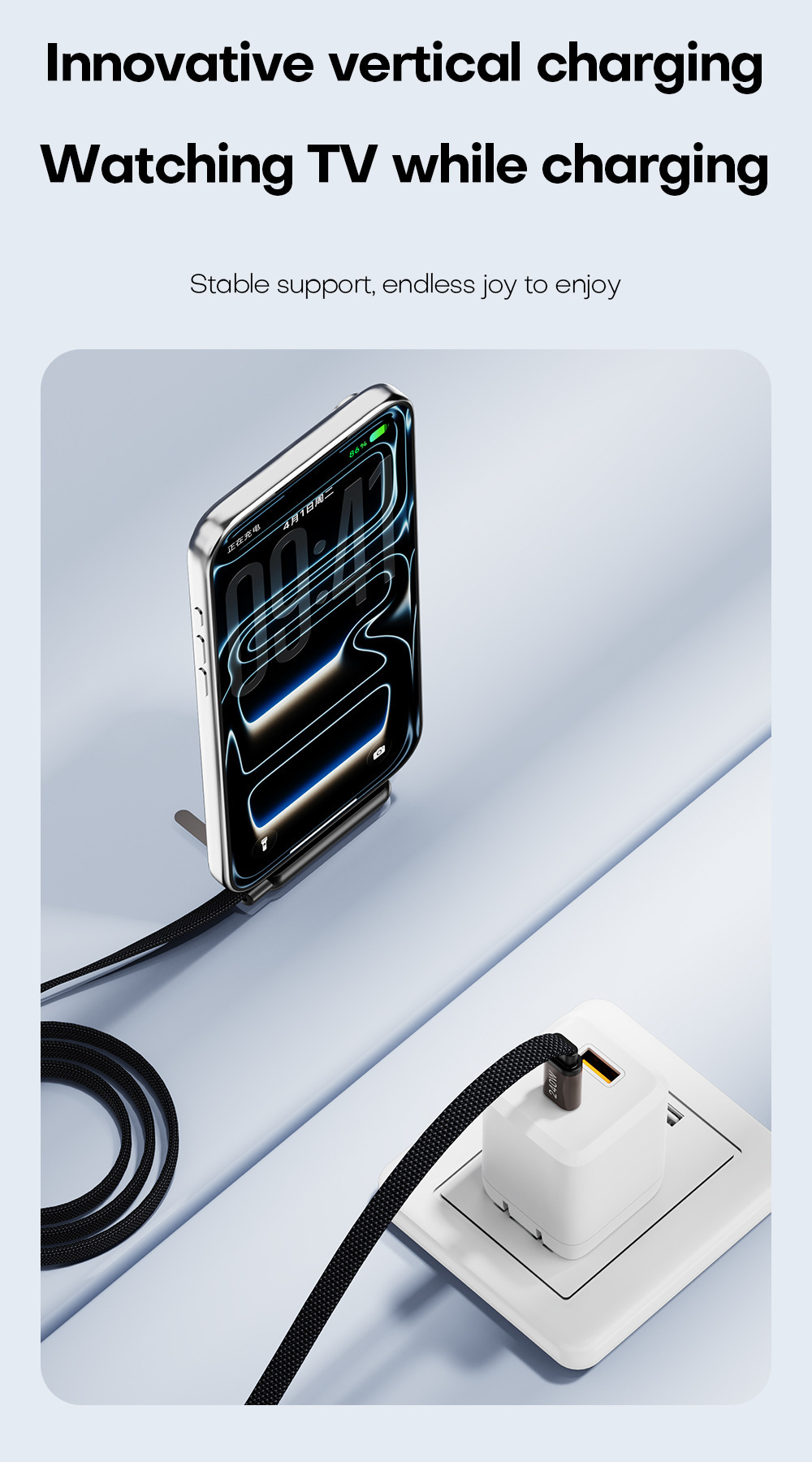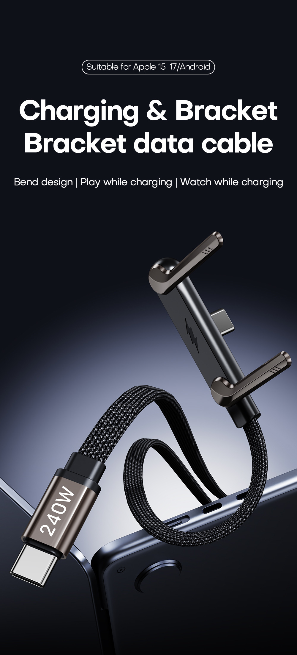 适用TC插口手机通用可折叠支架数据线快充手游弯头充电线