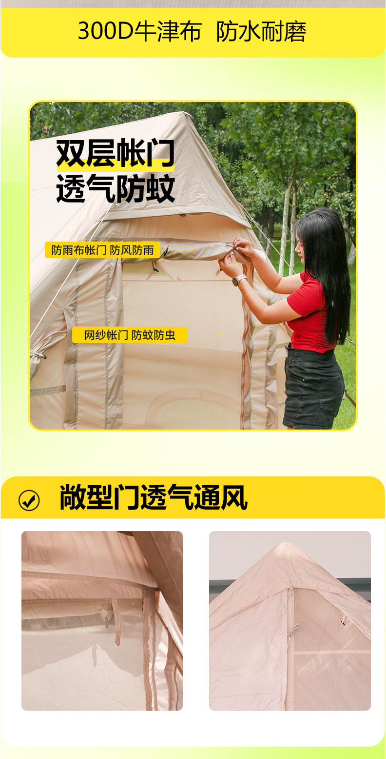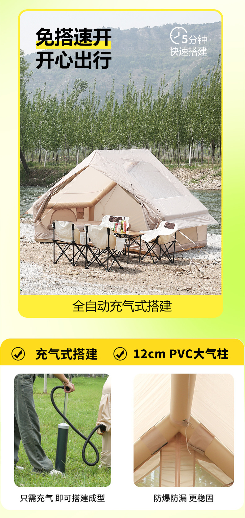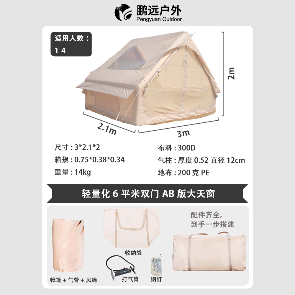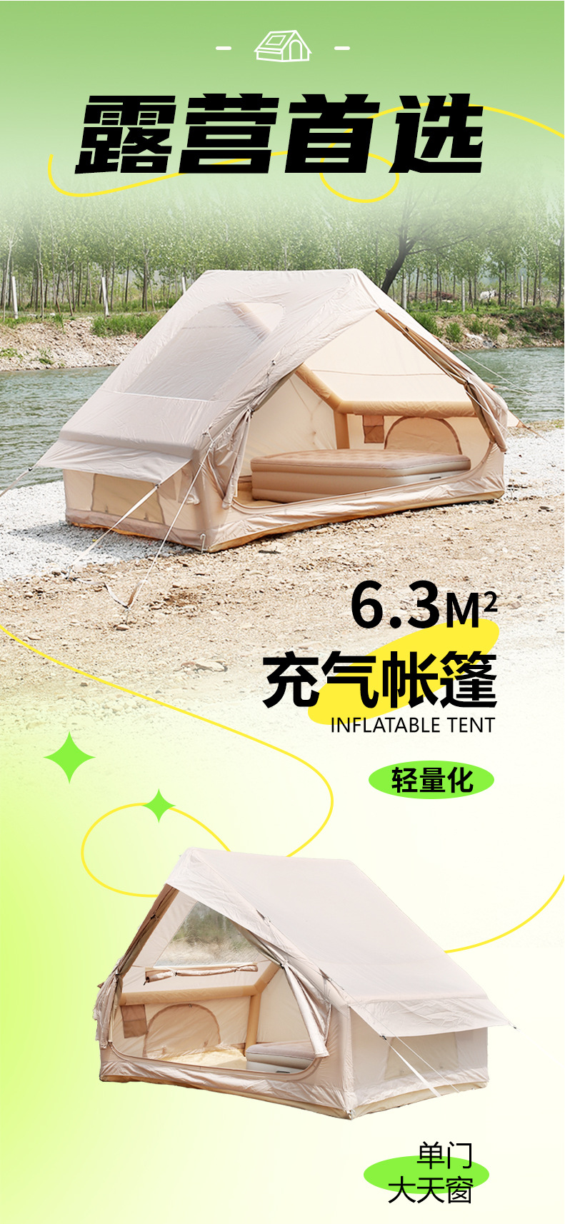 跨境单层折叠6.3平充气帐篷防水牛津布屋脊野外露营帐篷户外露营