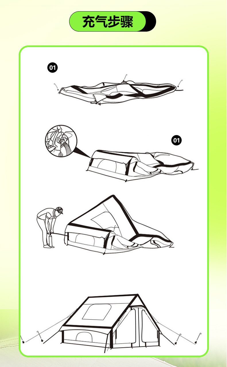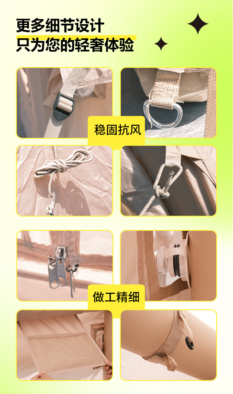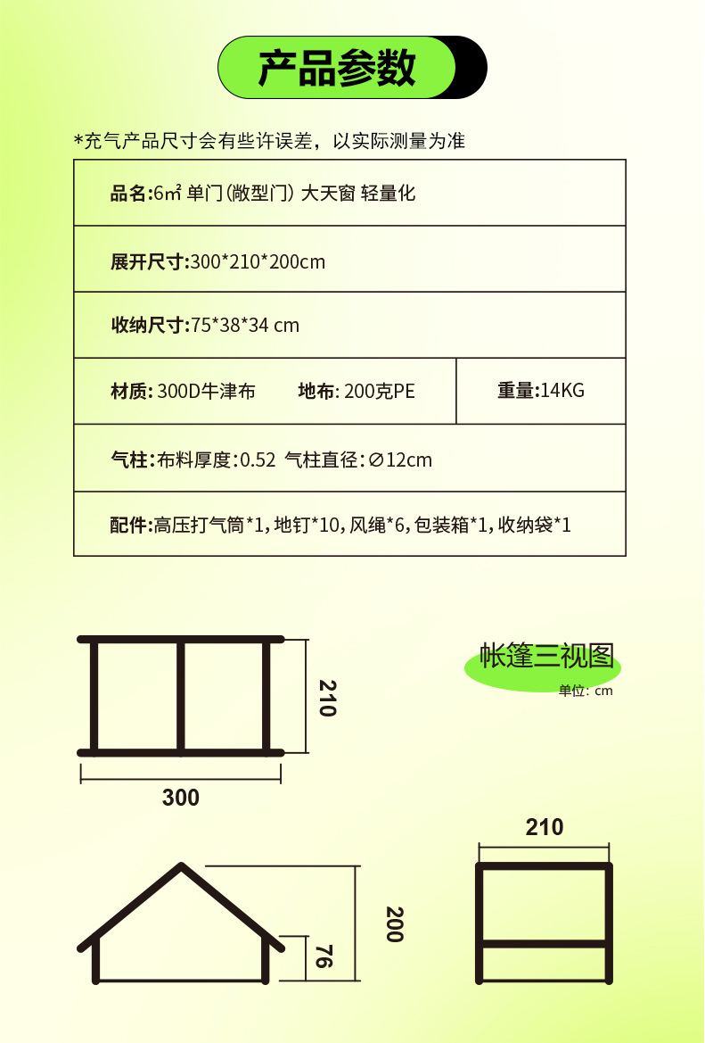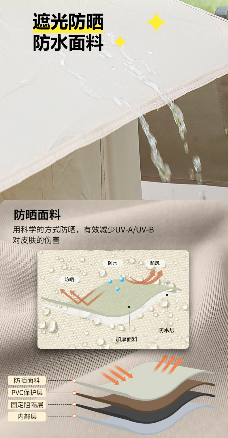 跨境单层折叠6.3平充气帐篷防水牛津布屋脊野外露营帐篷户外露营