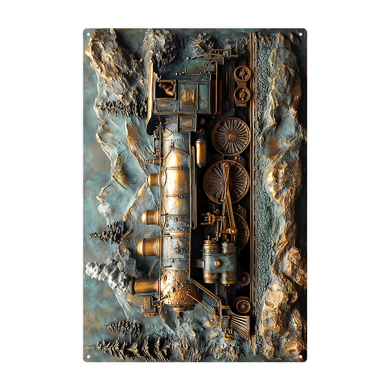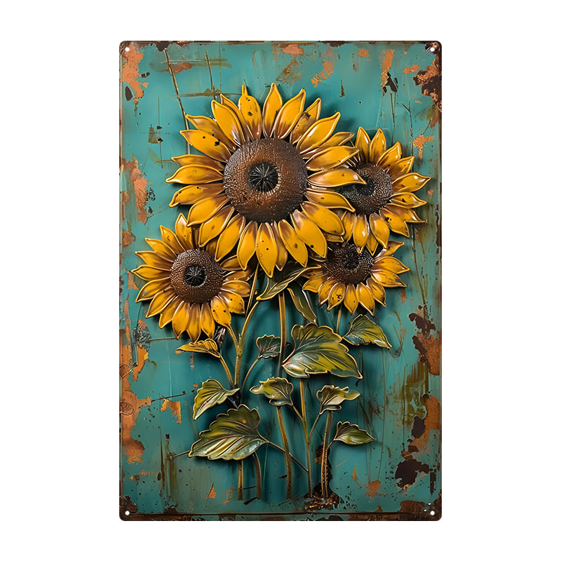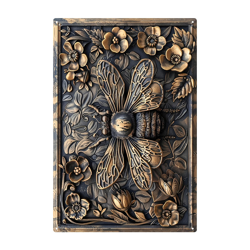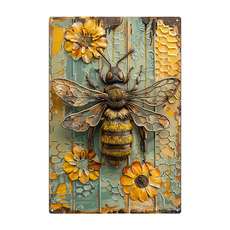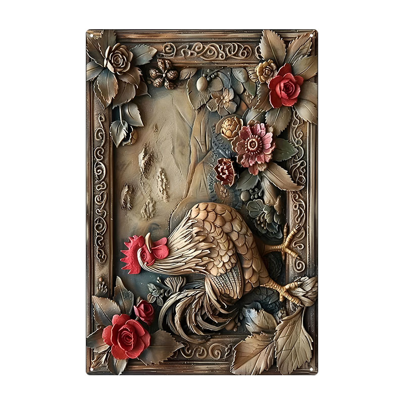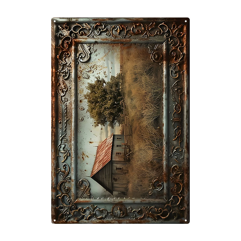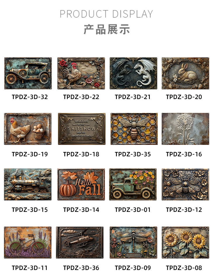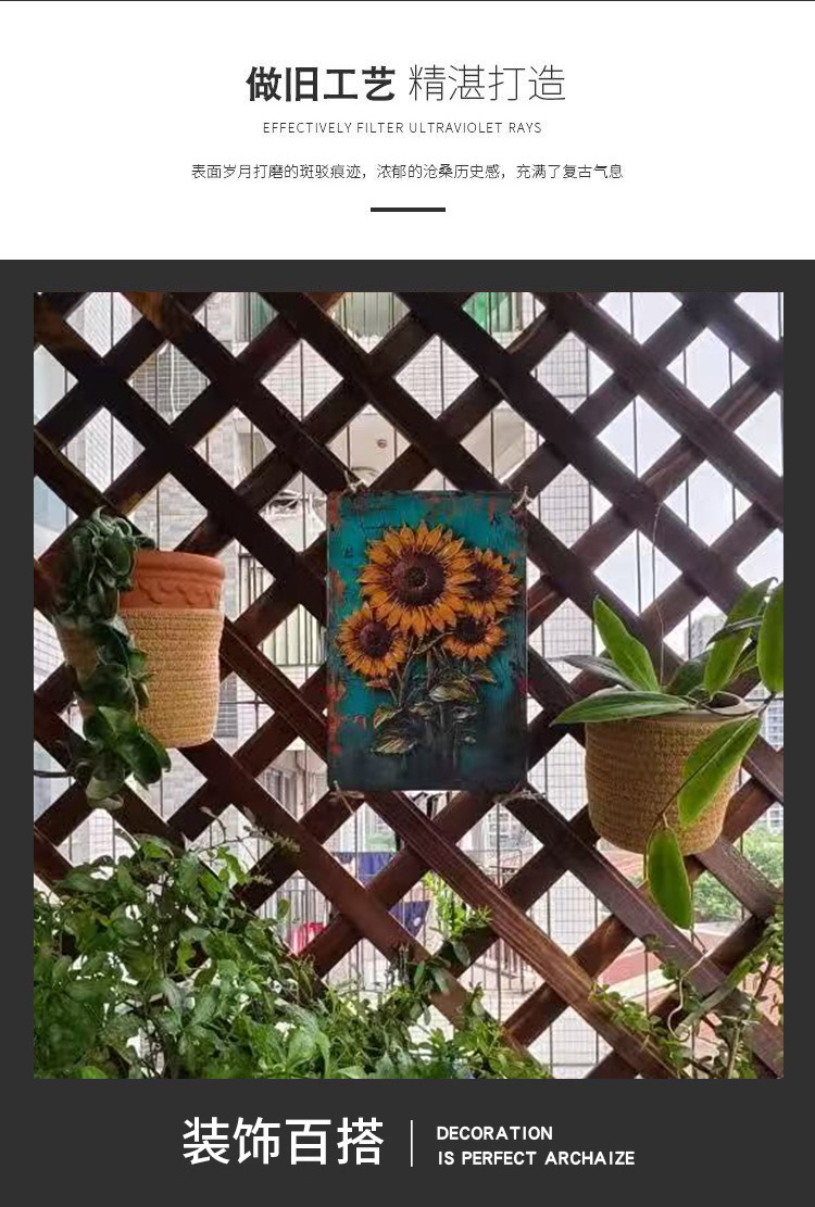 跨境仿3D露营墙面装饰水彩鸟复古铁皮画防水防晒铁艺挂画壁挂标牌