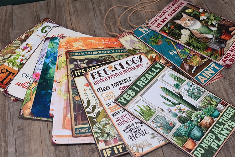 田园风花卉铁皮画户外阳台花园卧室墙面装饰铁艺挂画布置摄影跨境