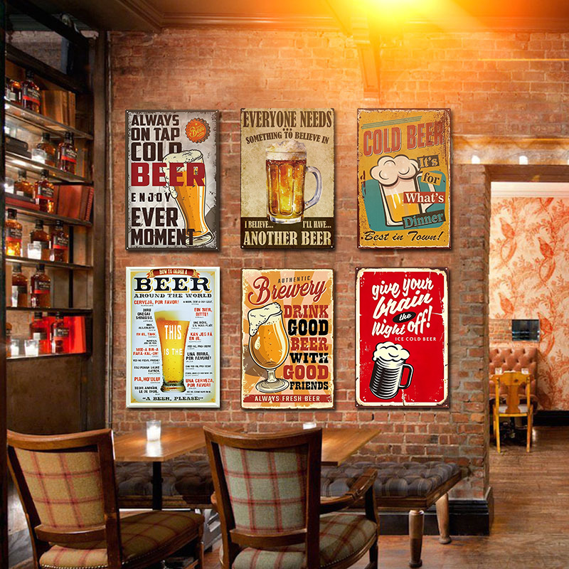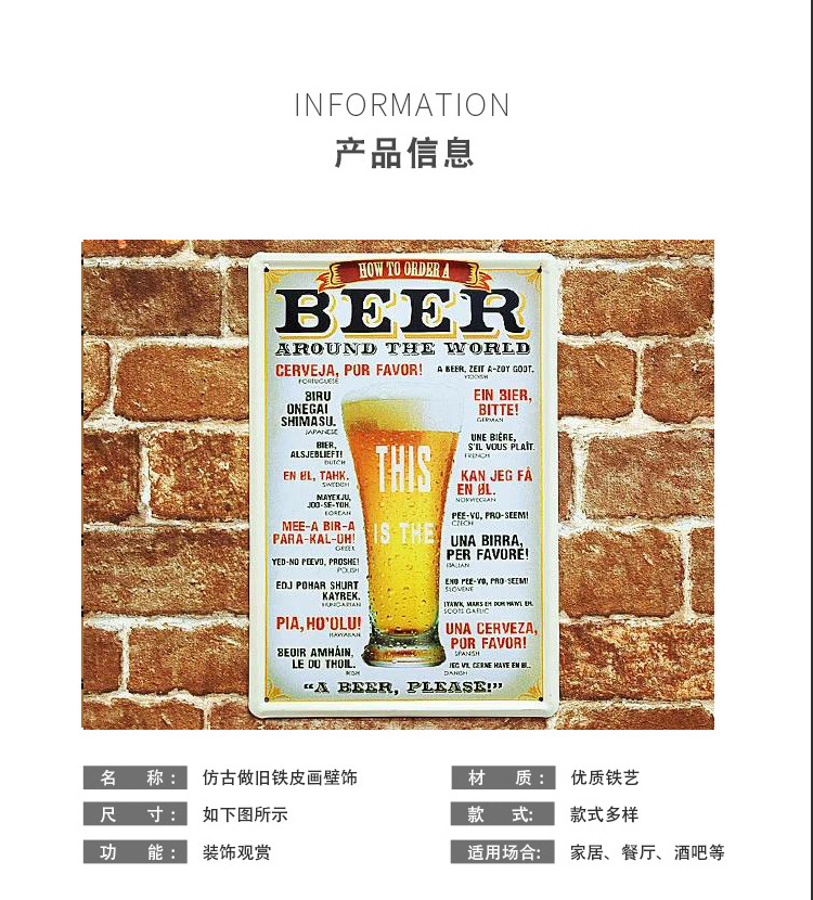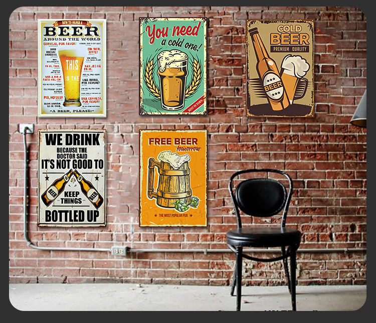马口铁铁皮画美式复古怀旧酒吧餐厅饭店烧烤店火锅店啤酒装饰挂画
