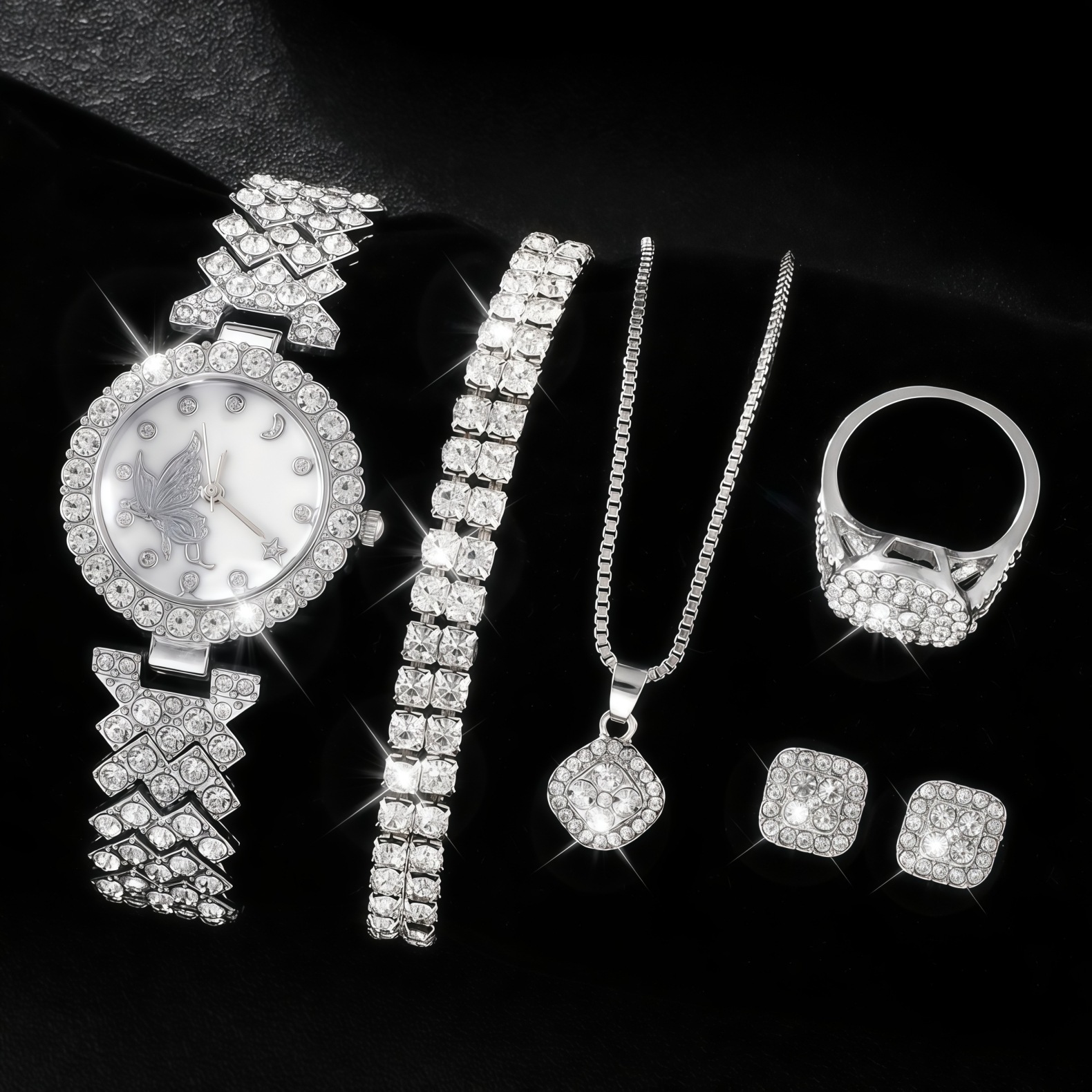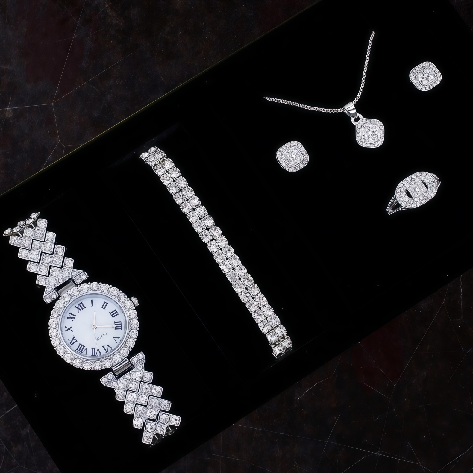 女士聚宝盆镶钻手表套装 爆款5pcs手链配饰时尚石英欧美女表套装