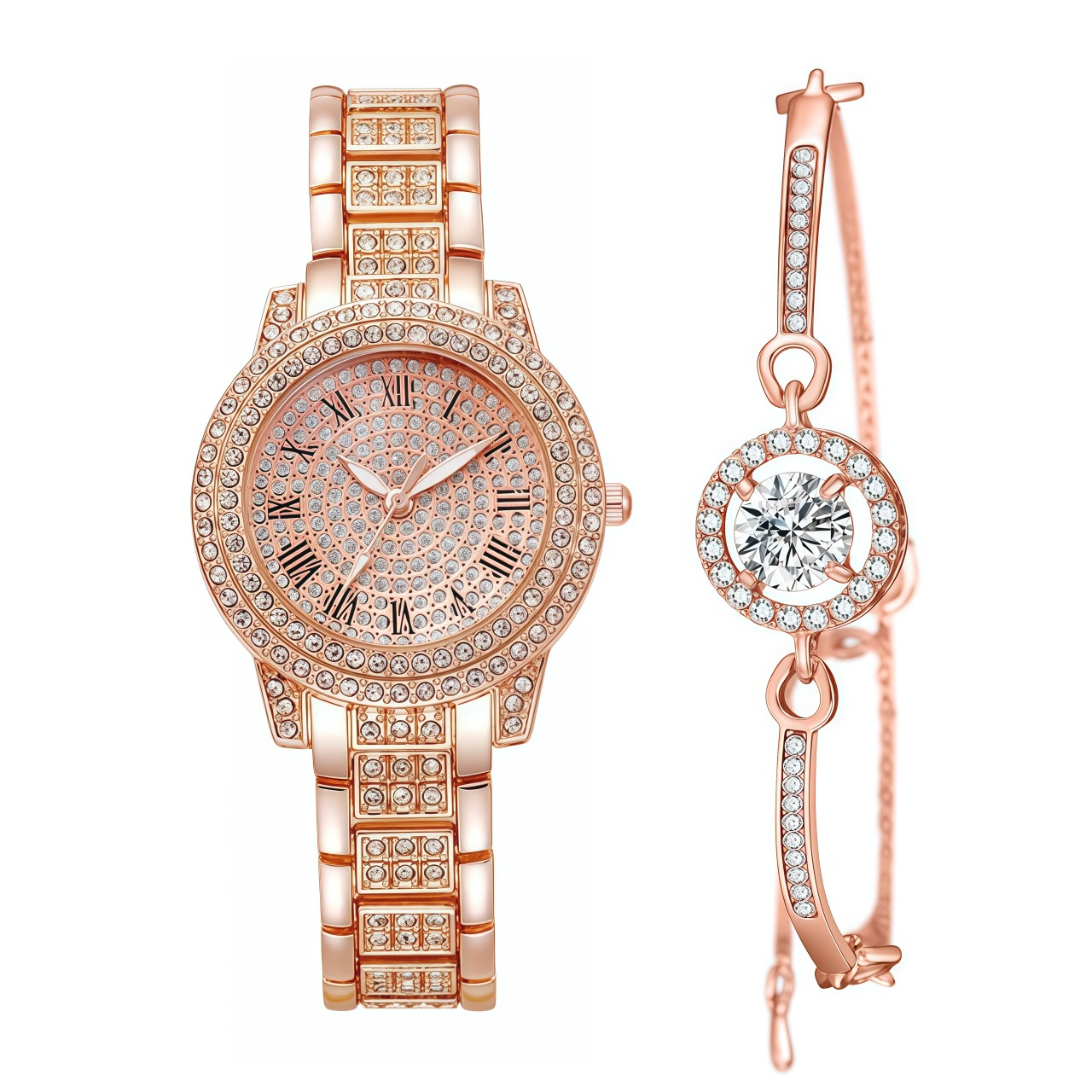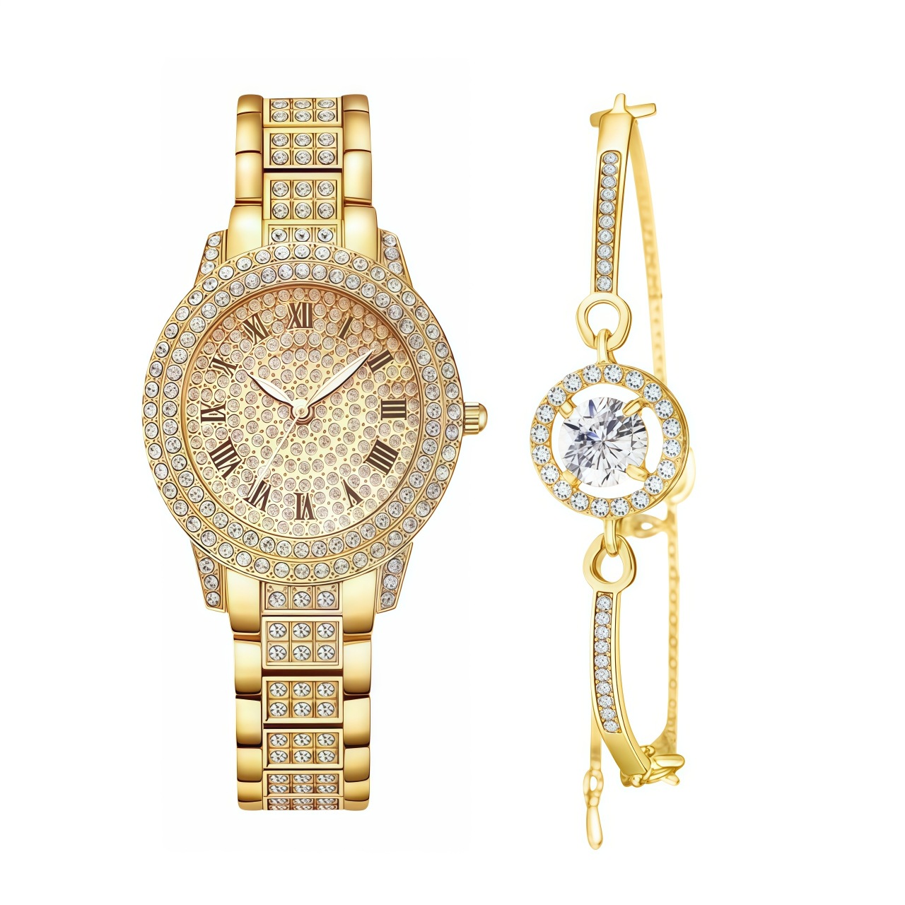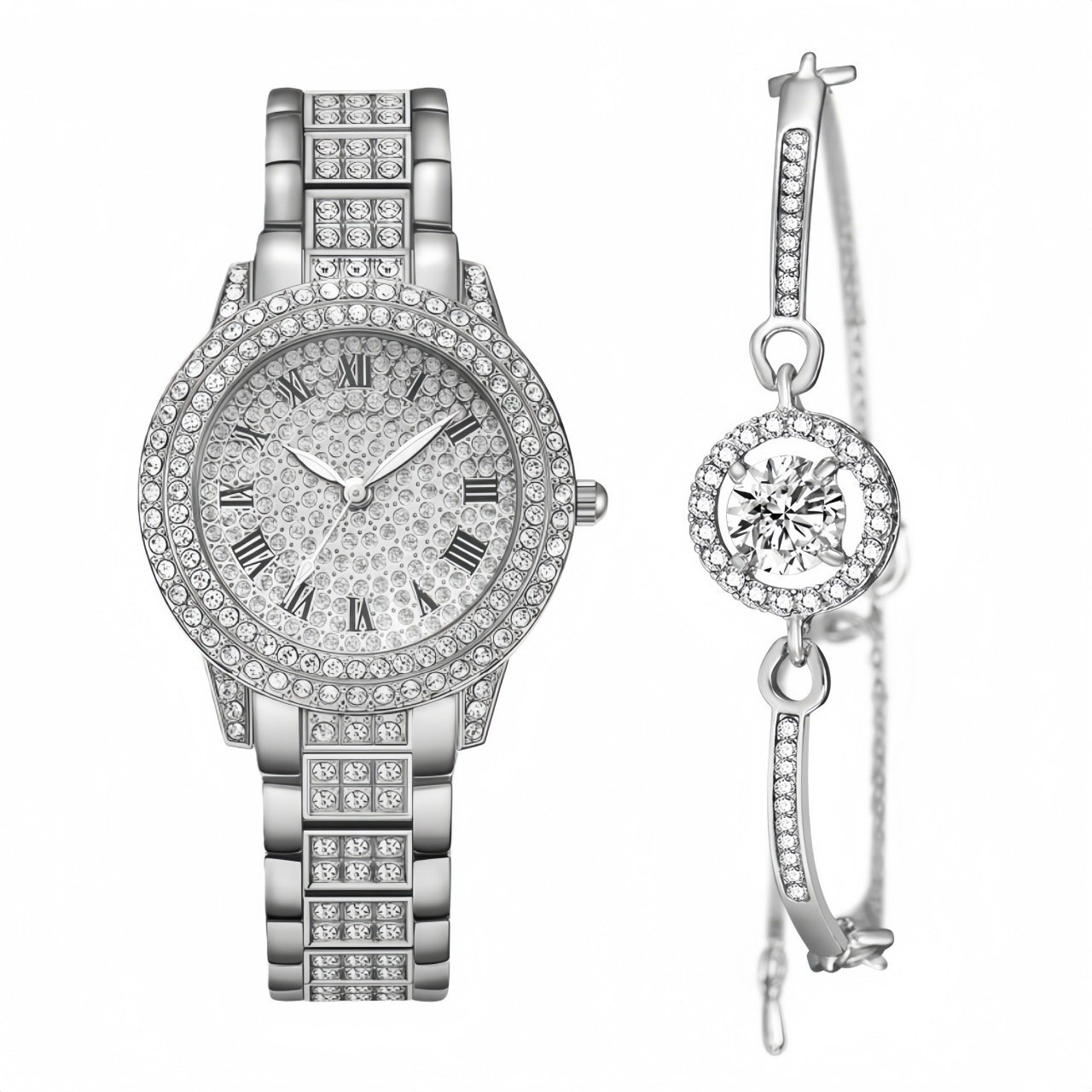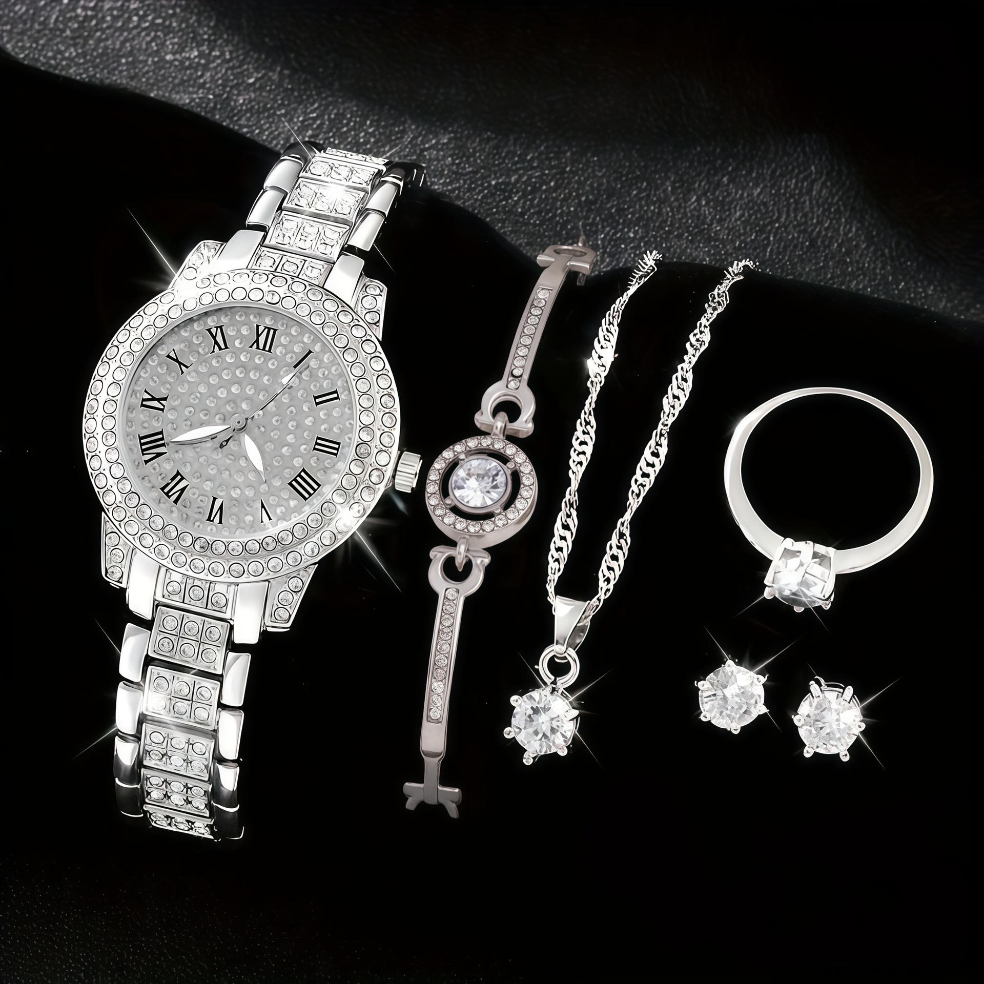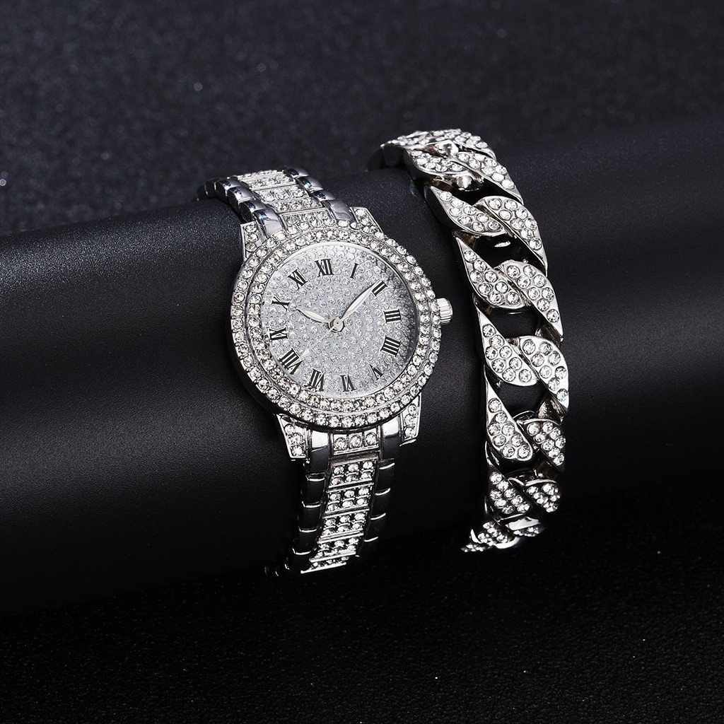 女士聚宝盆满天星水钻手表 跨境爆款镶钻手链女表5pcs套装批发