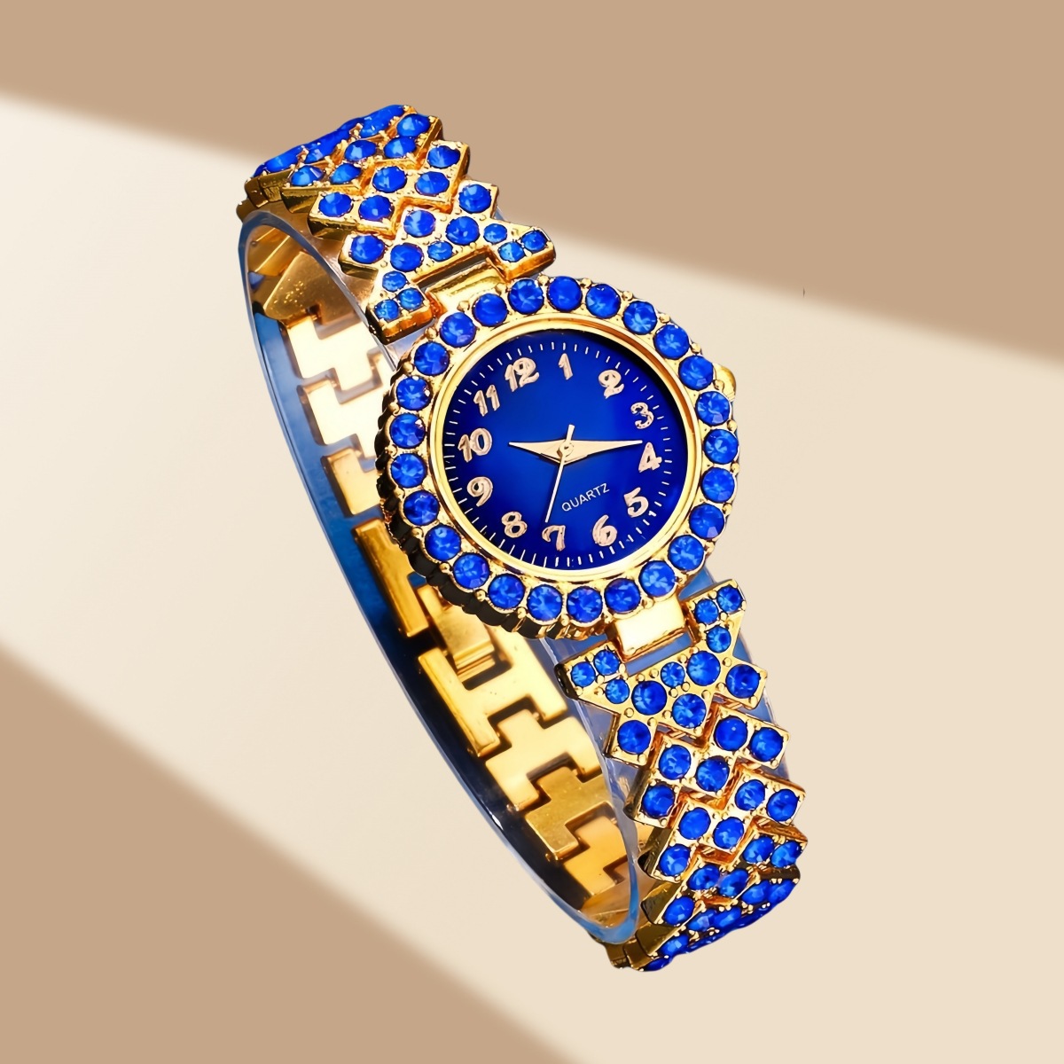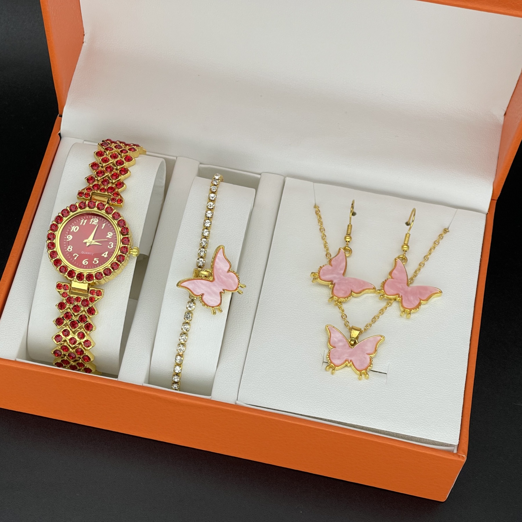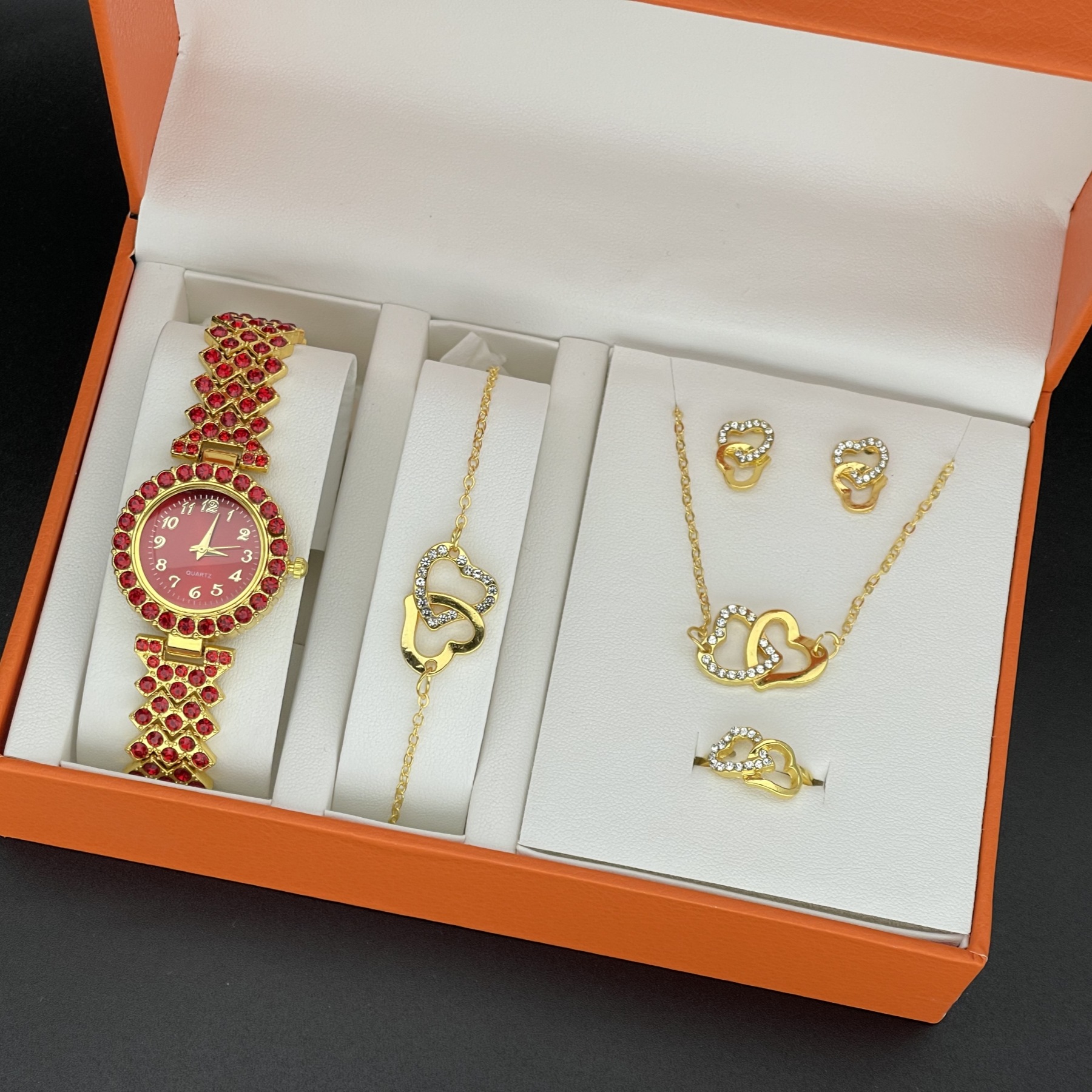 新款女士数字彩钻石英表女 跨境爆款5PCS首饰套装时尚腕表女批发