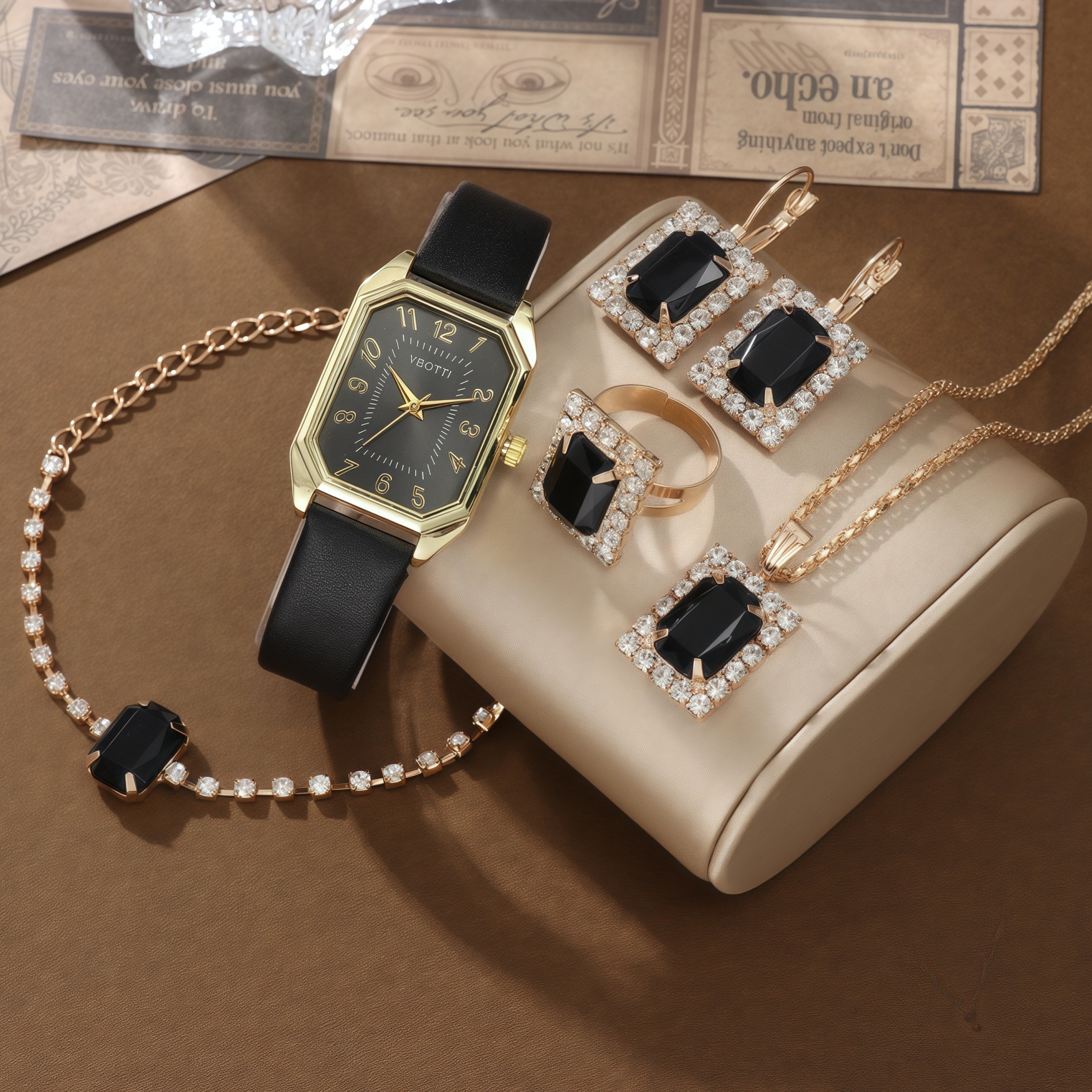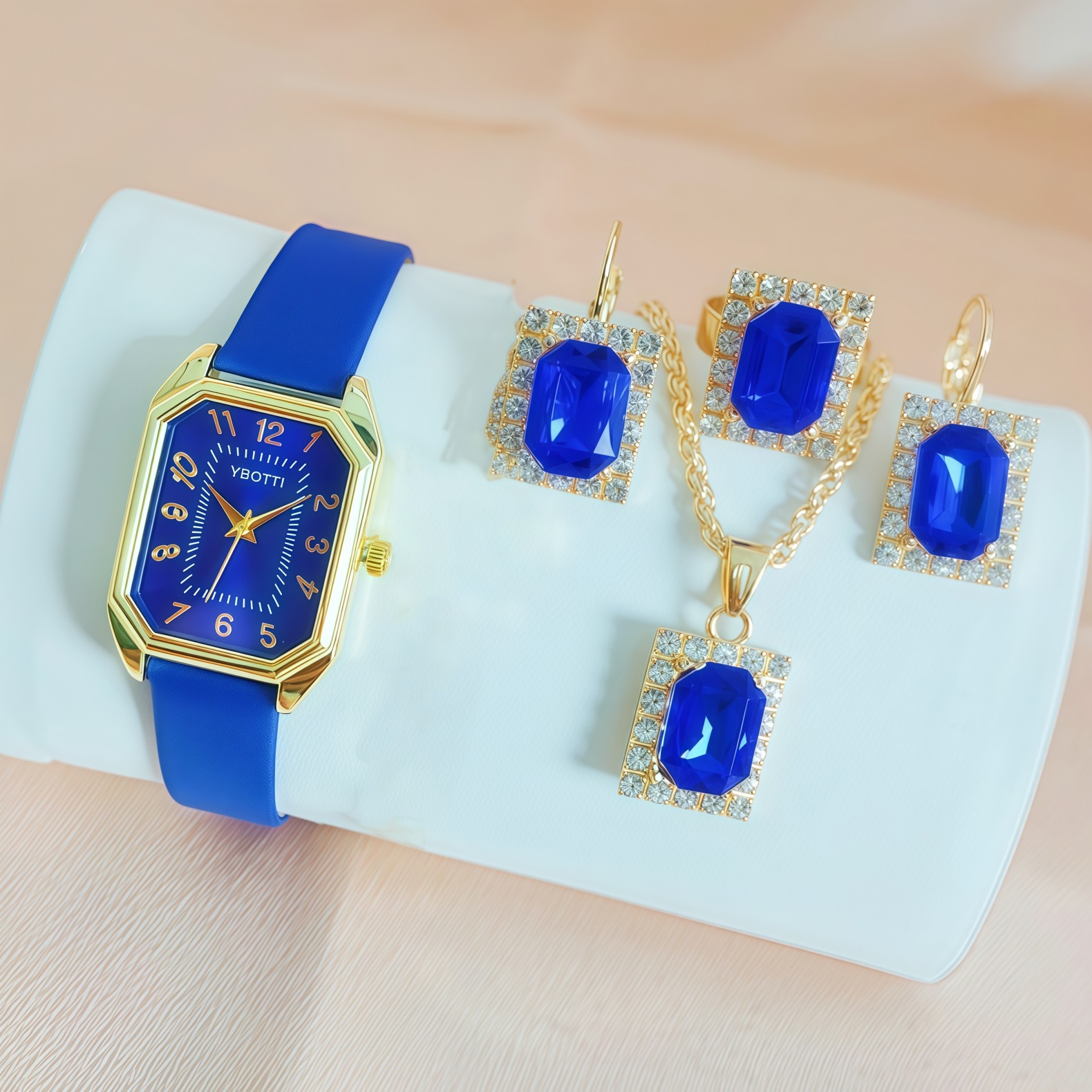 女士方形皮带宝石手表套装 言彧批发贸易YBOTTI石英表配饰爆款套