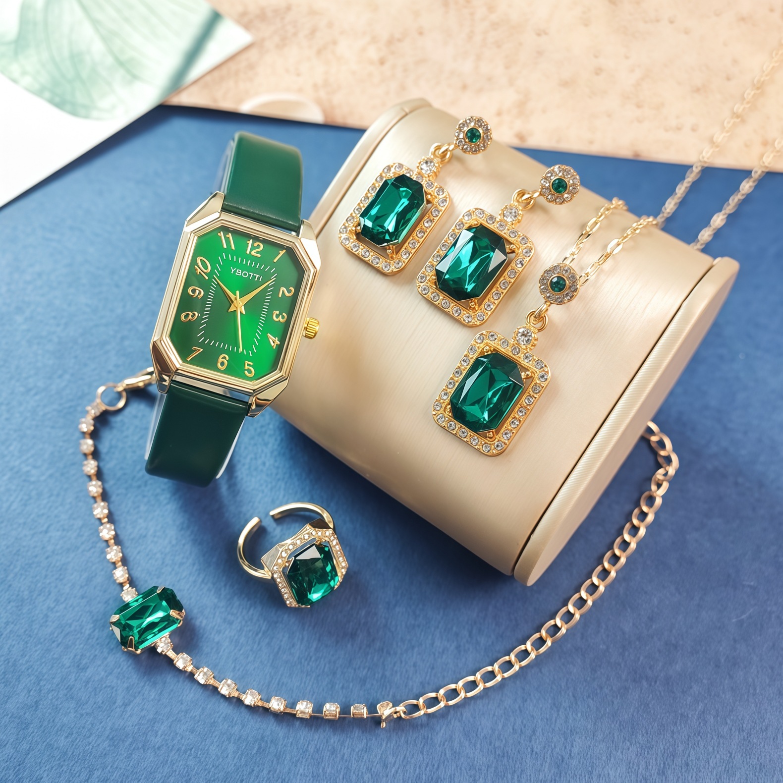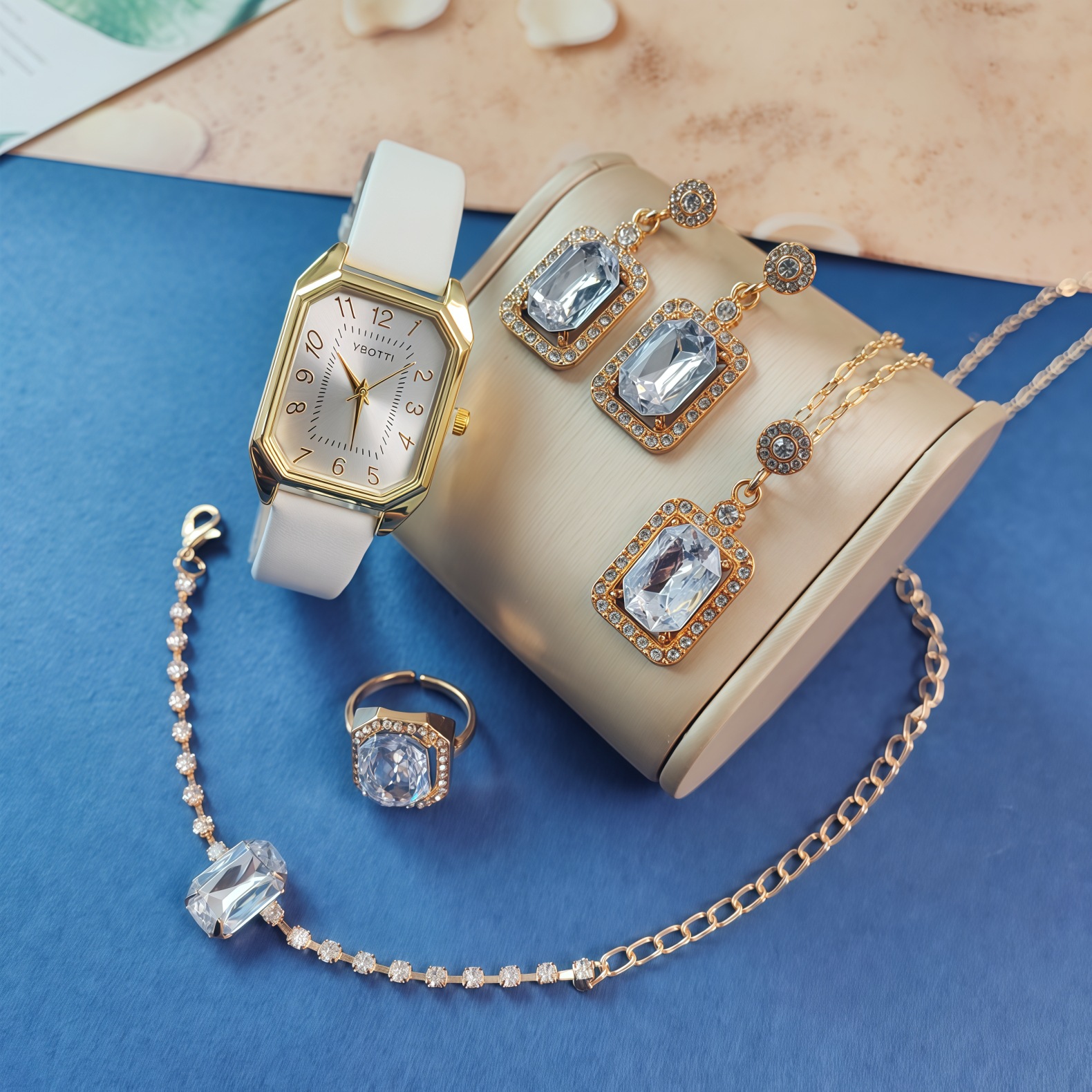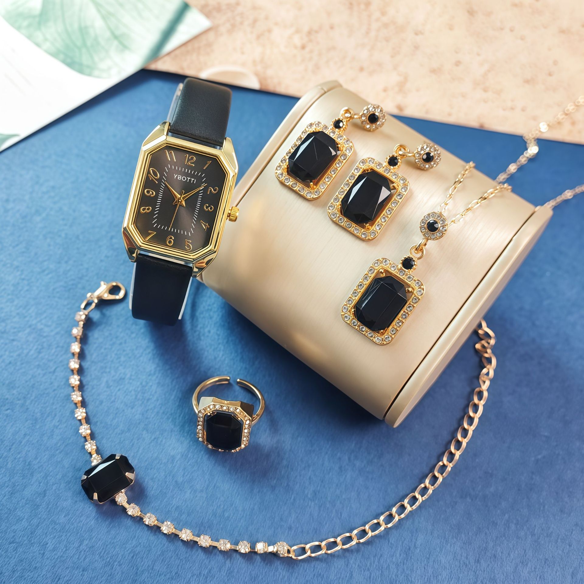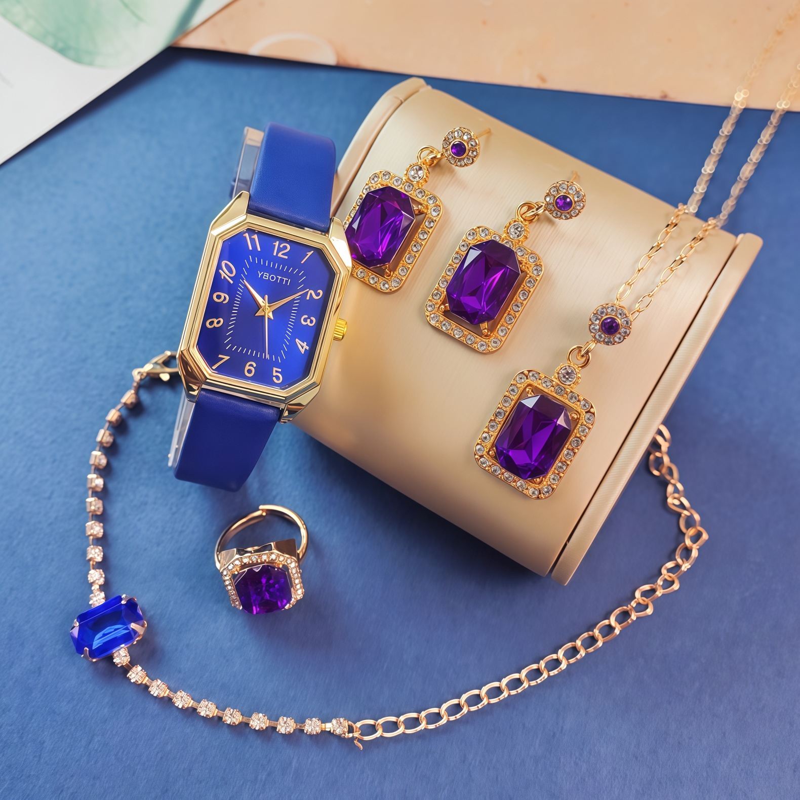 女士方形皮带宝石手表套装 言彧批发贸易YBOTTI石英表配饰爆款套