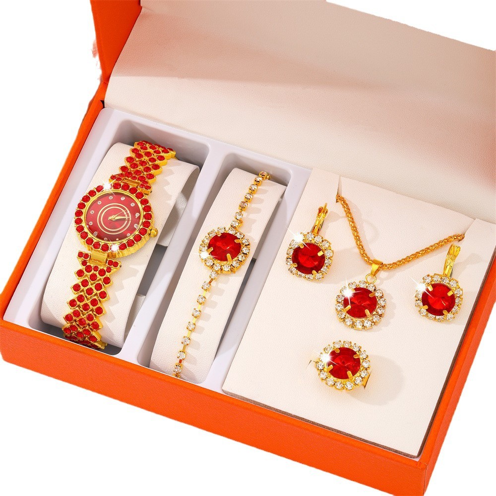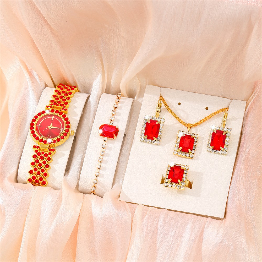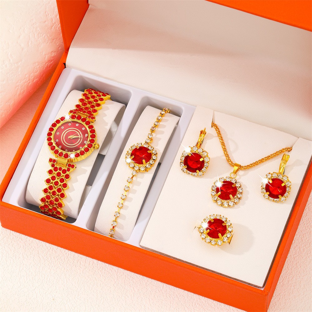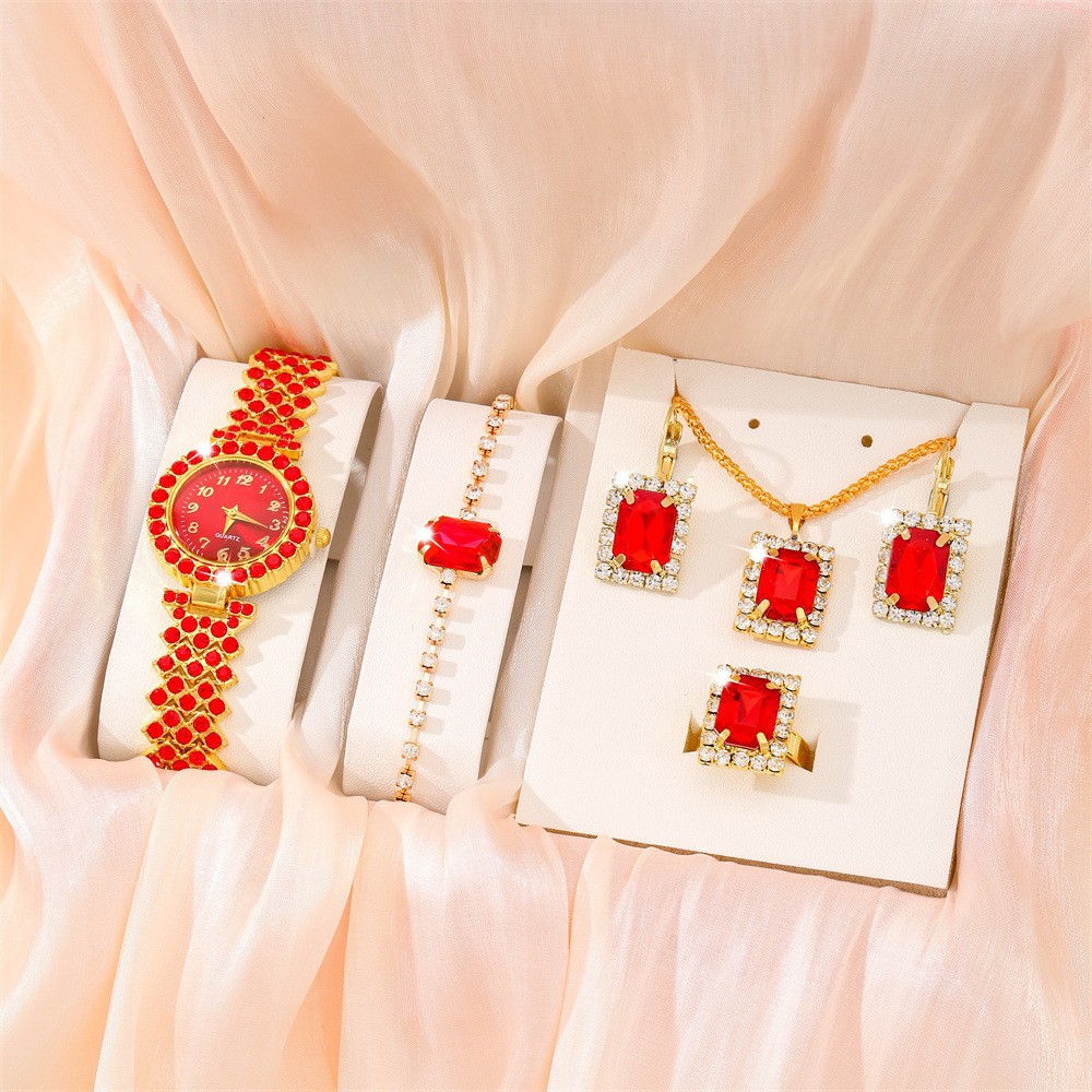 欧美ins跨境爆款女士手表水钻饰品 热卖彩钻石英表女表精美套装