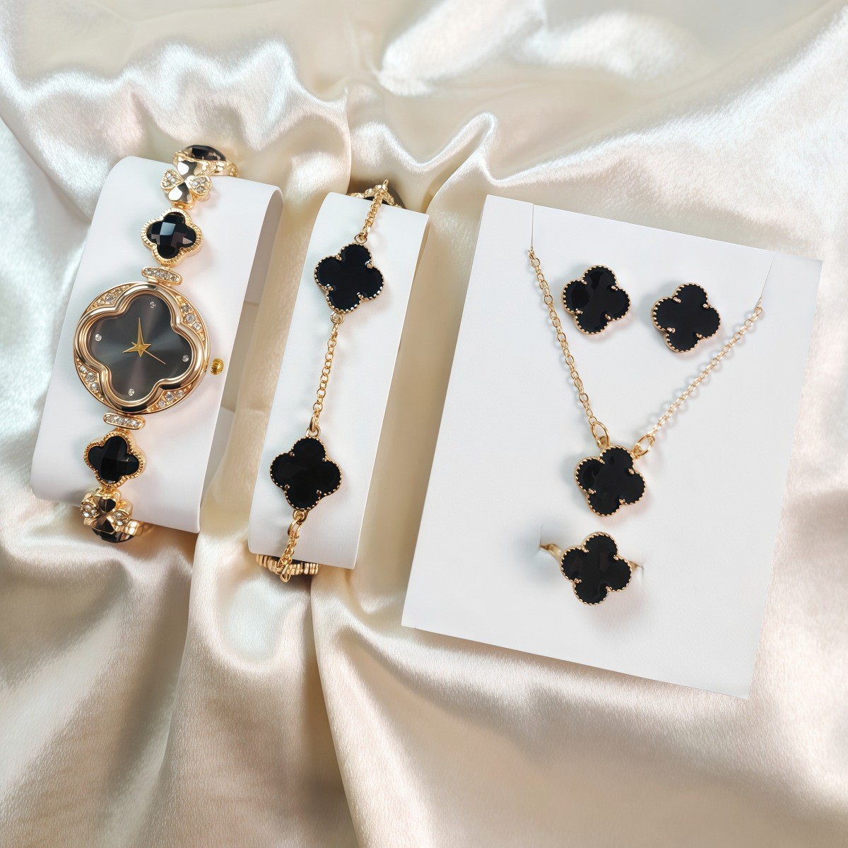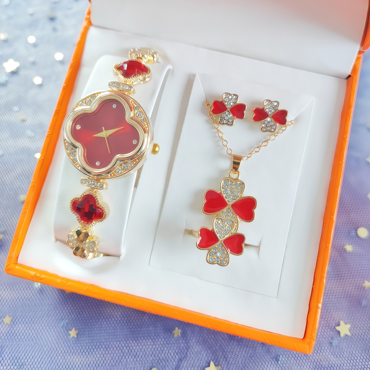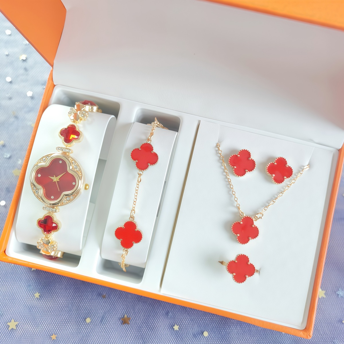 女士爆款四叶草手链腕表 梵宝同款耳钉手链套装石英表礼盒套装
