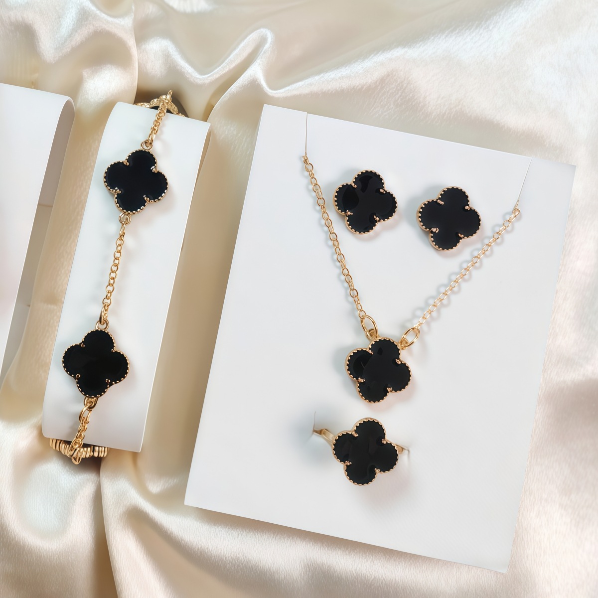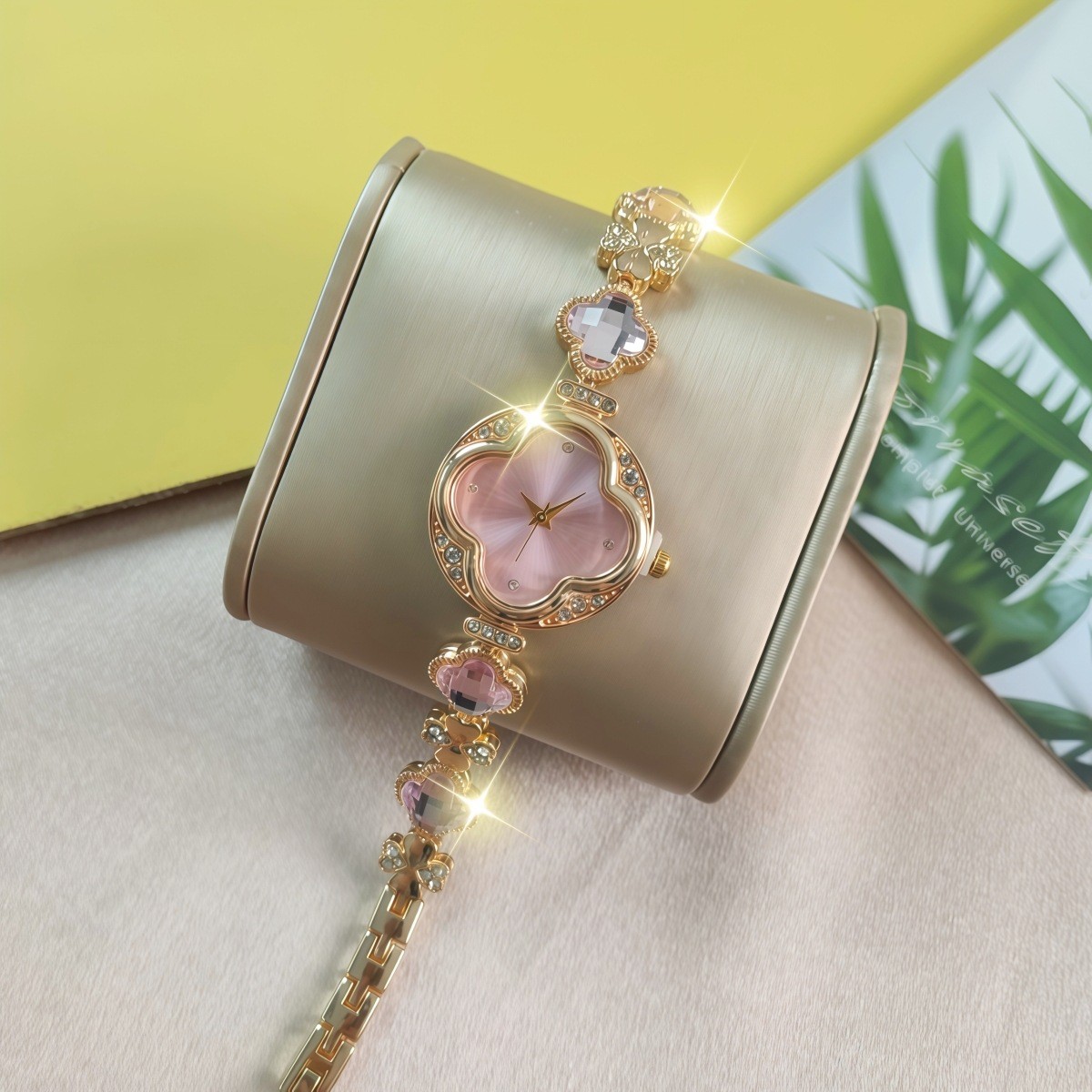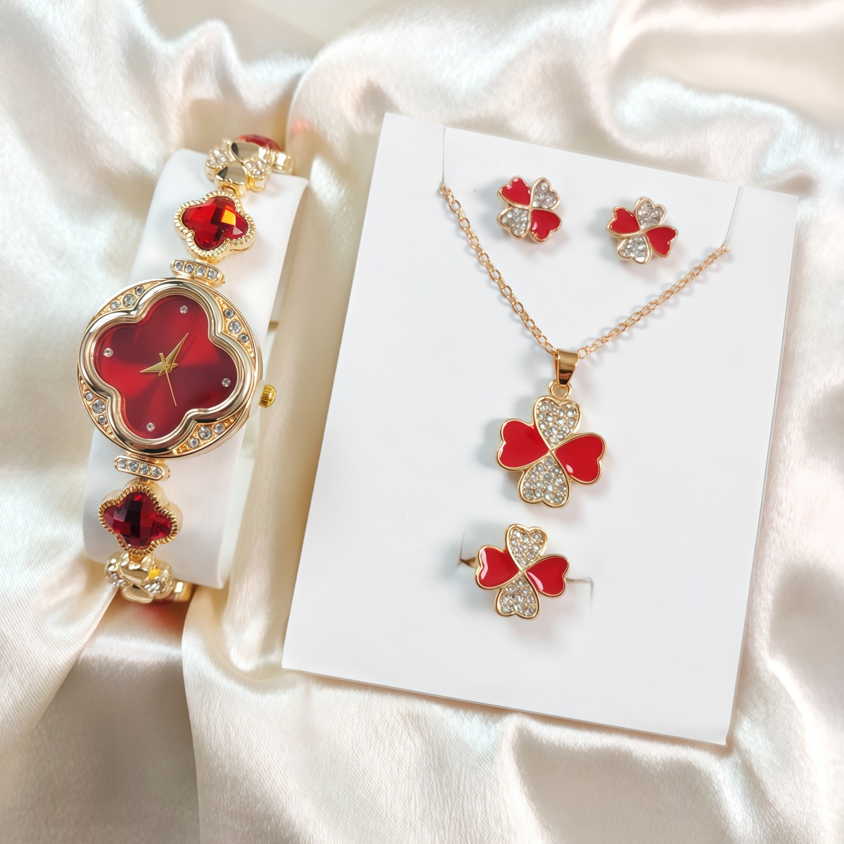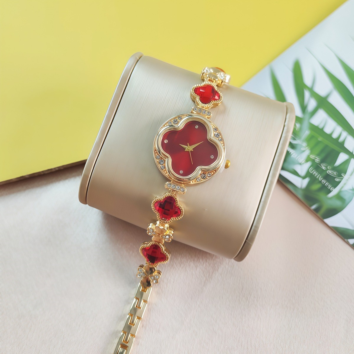 女士爆款四叶草手链腕表 梵宝同款耳钉手链套装石英表礼盒套装