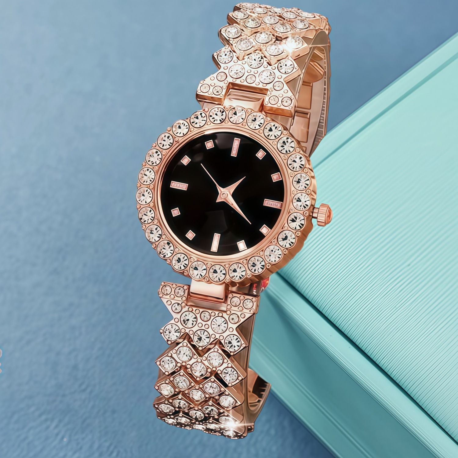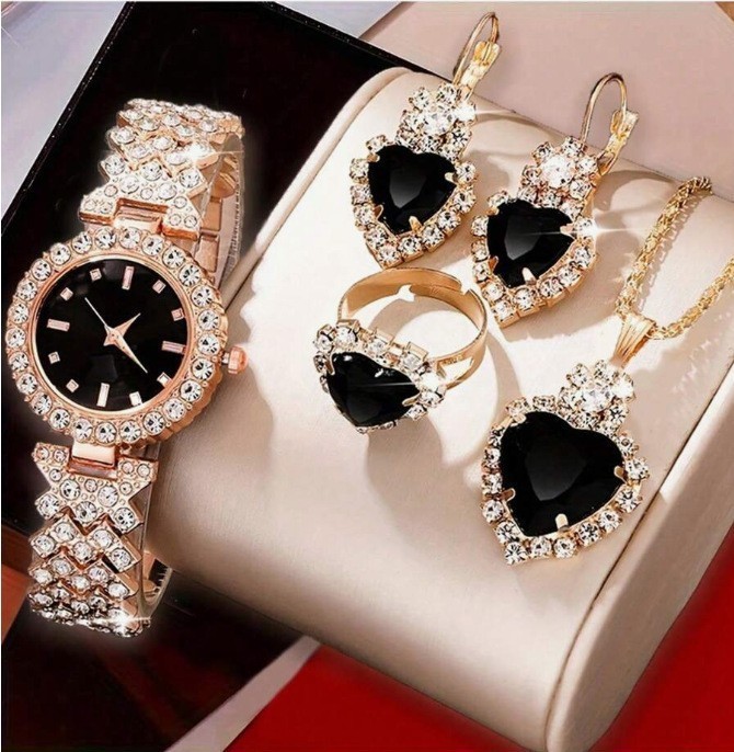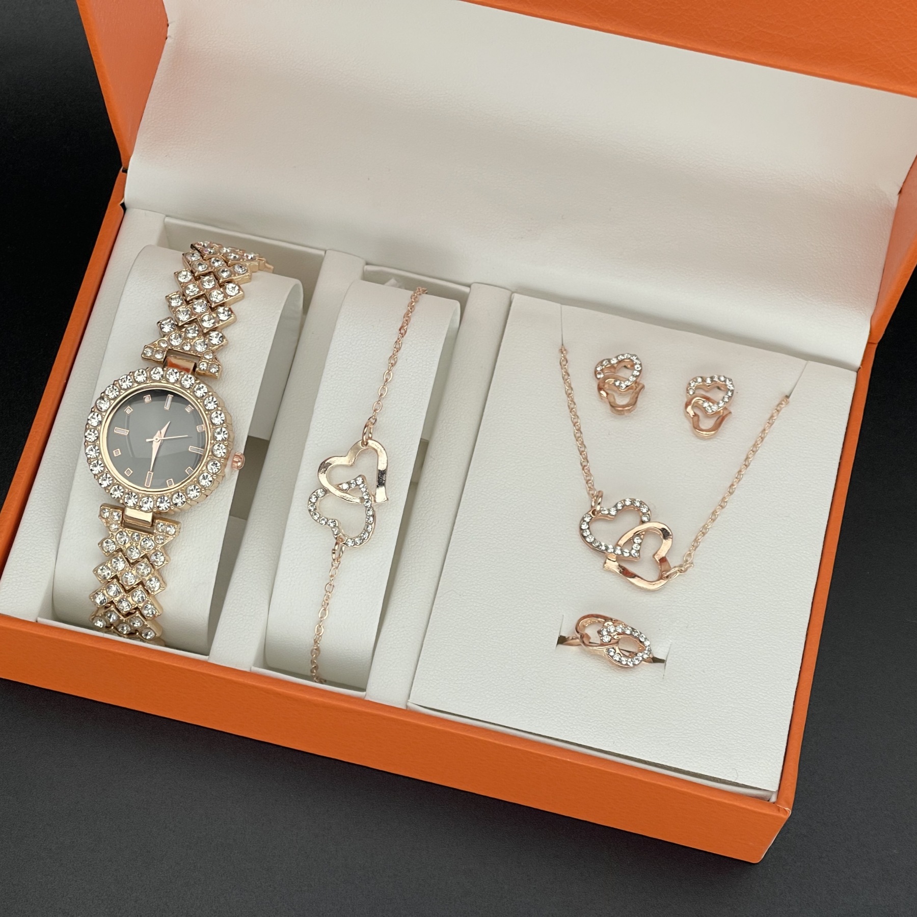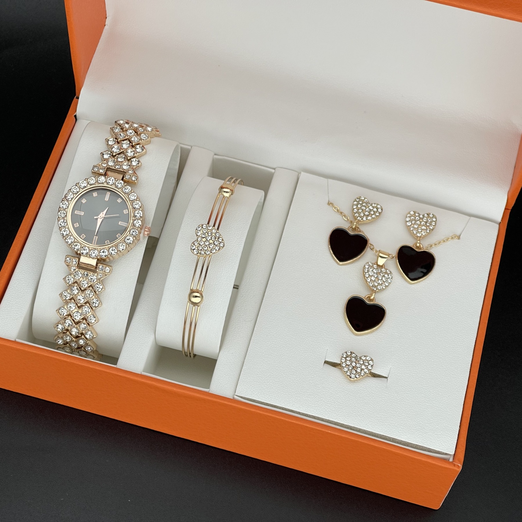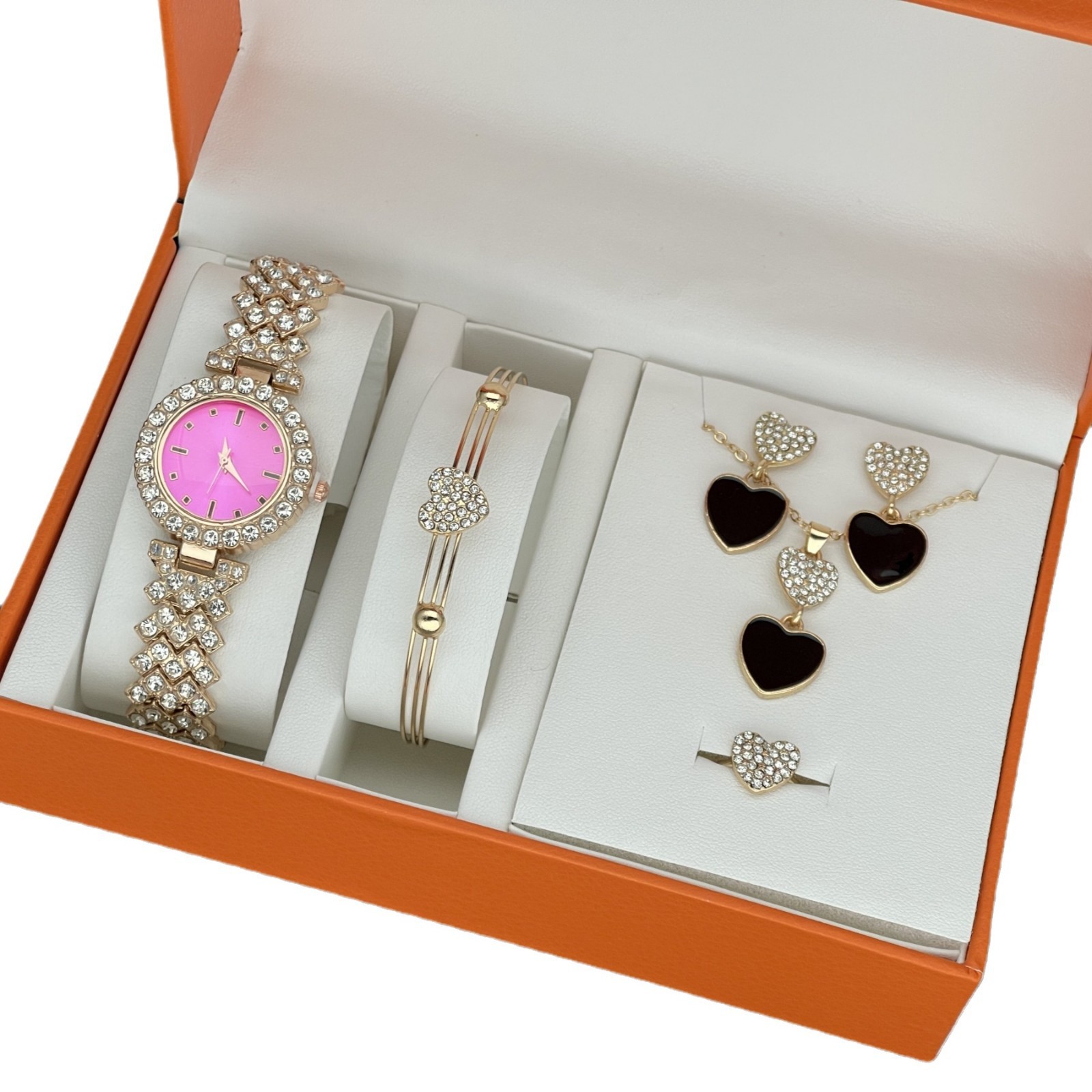 跨境爆卖女士手表镶钻配饰5pcs套装 新款宝石石英表女可定作保色