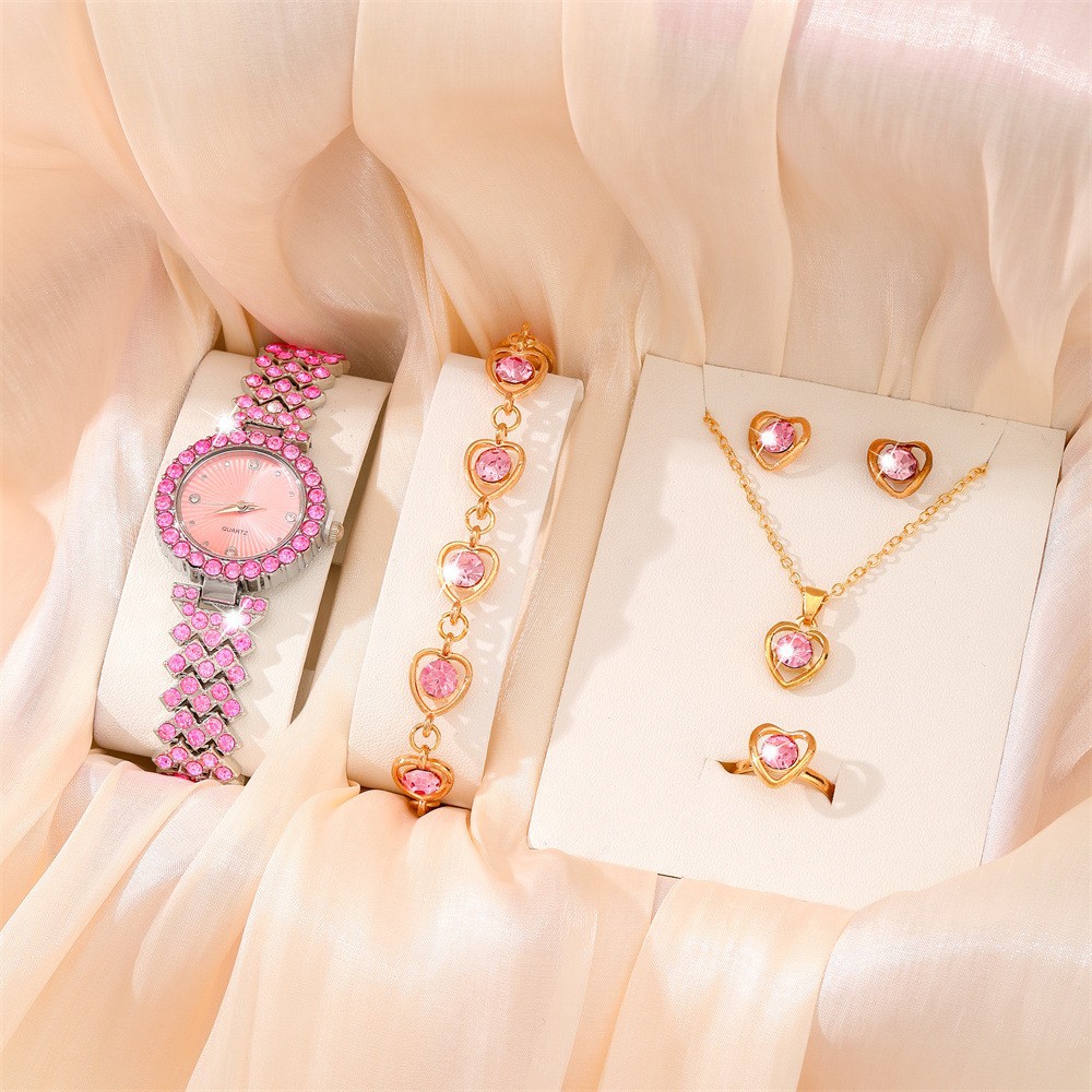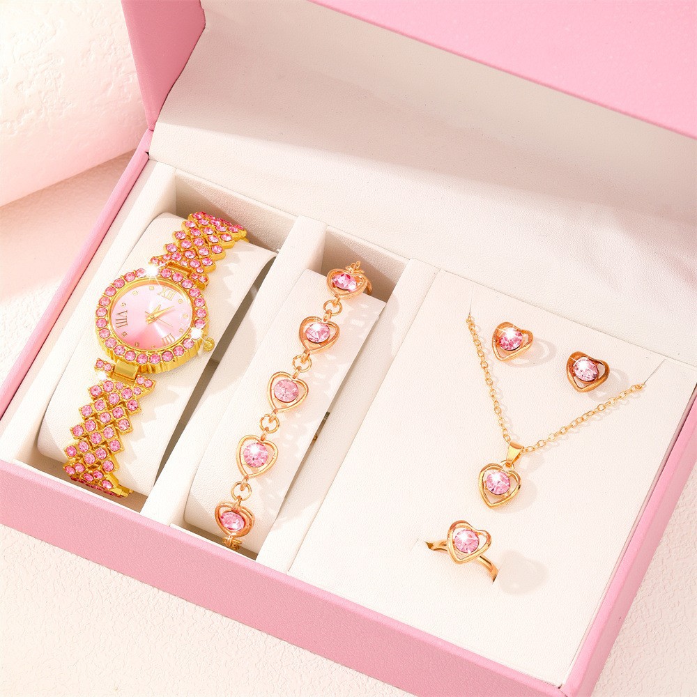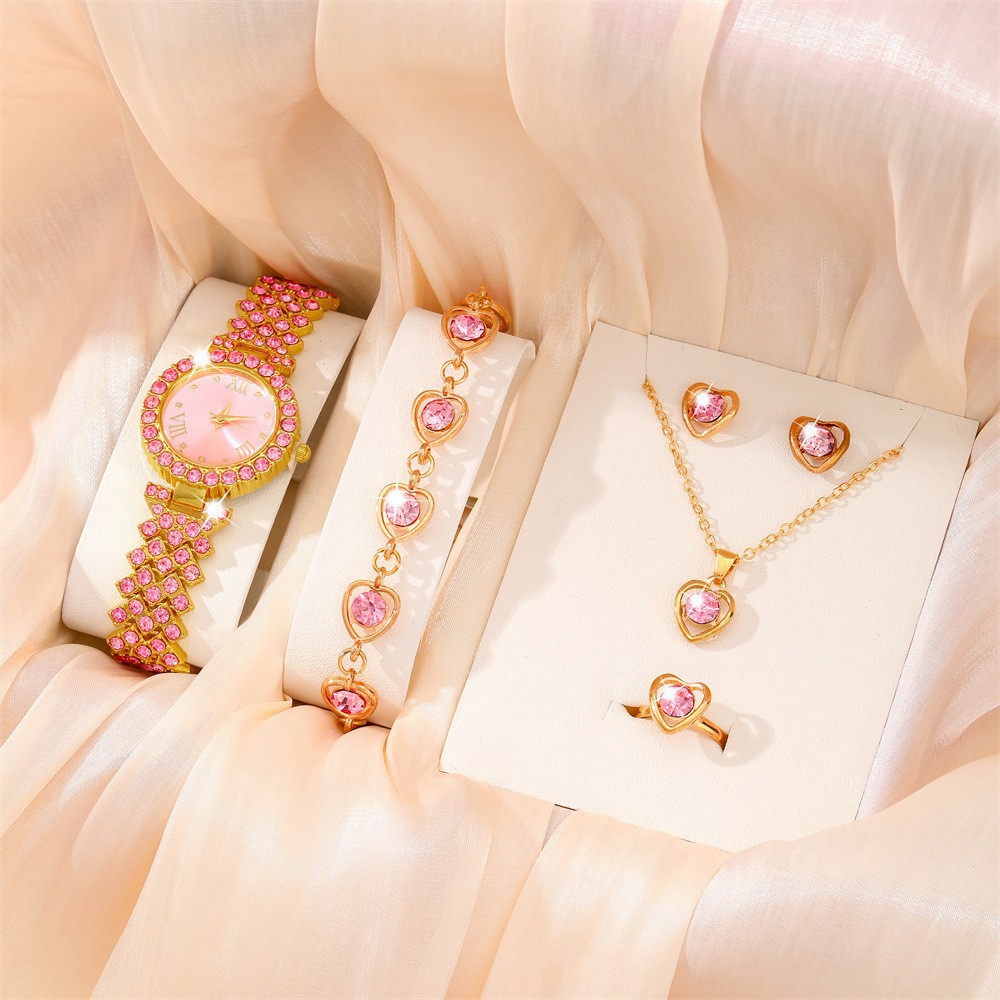 跨境爆款女士手表镶钻气质饰品 E14满钻珍珠套数手表项链配饰套装