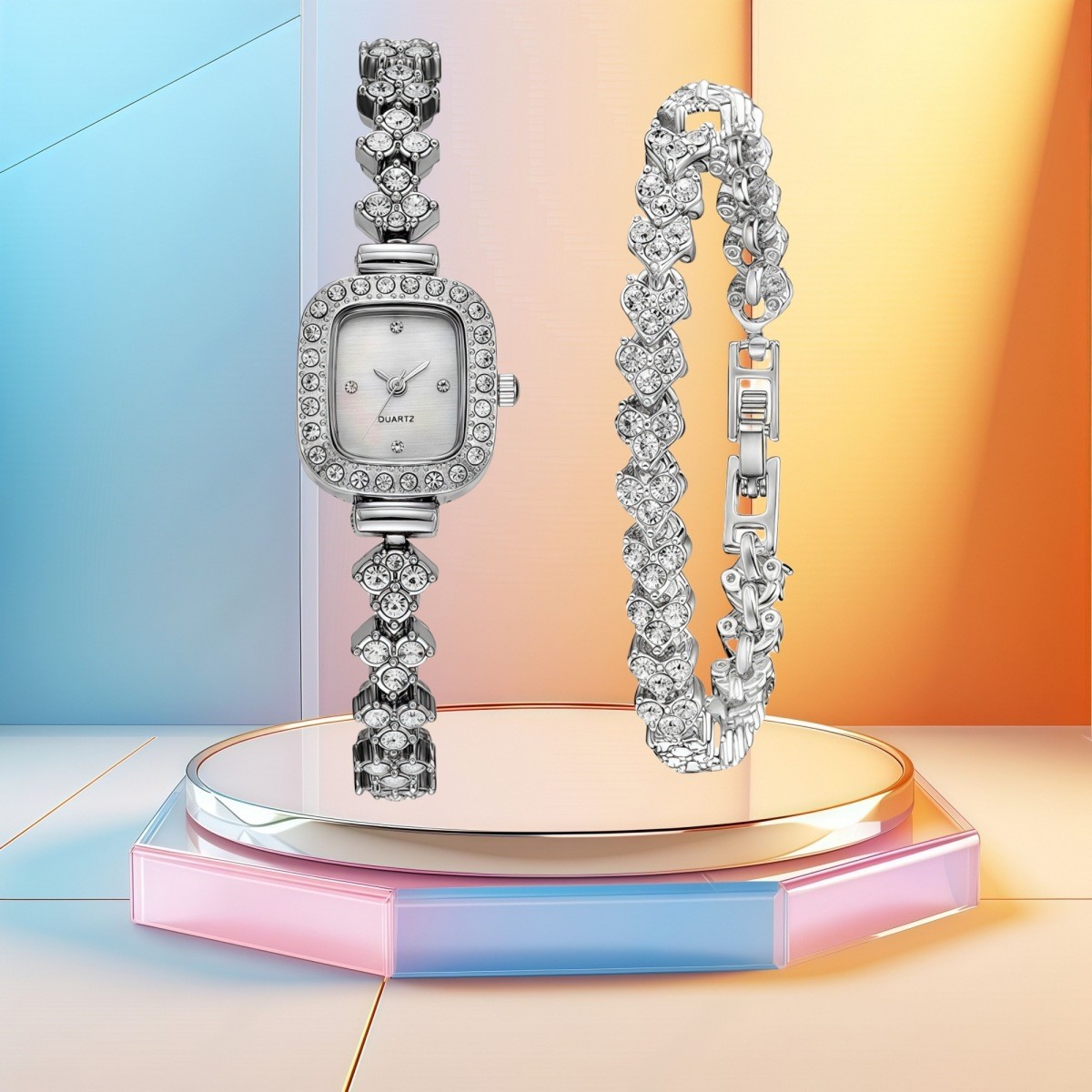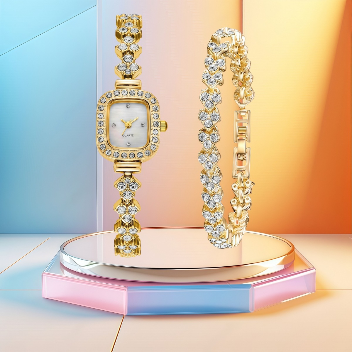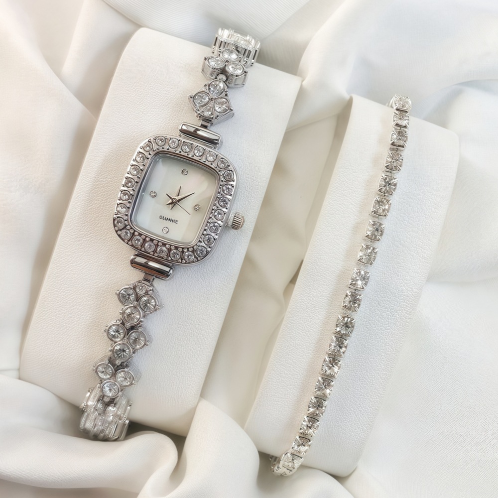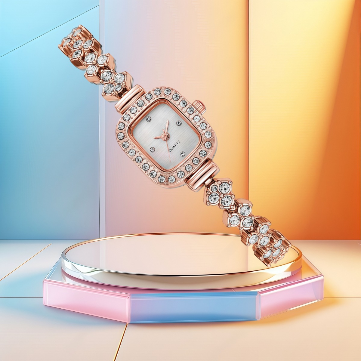 女士小方糖时尚镶钻手表 跨境外贸爆款女士手链手表石英表批发表