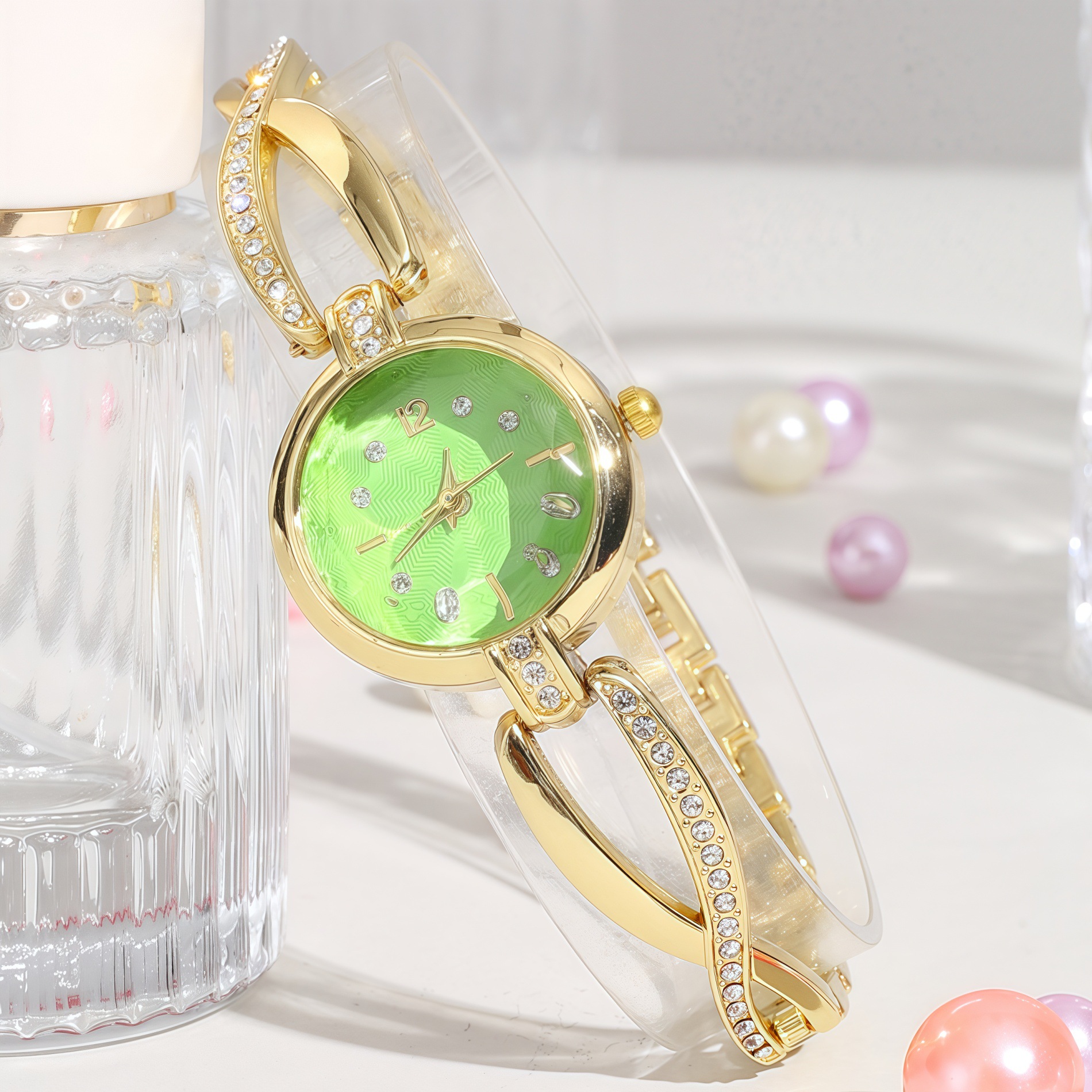 外贸新款女奢华圆形腕表 多色小号表盘时尚气质点钻交叉手链手表