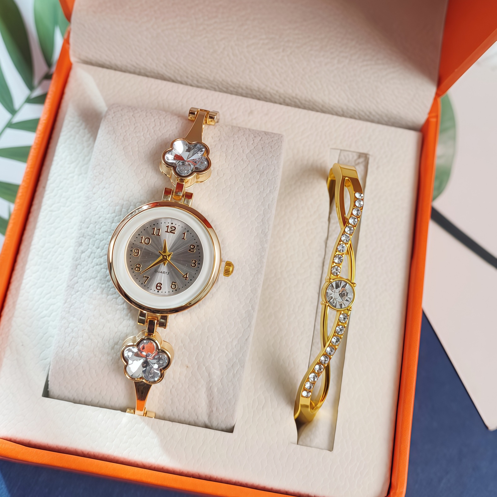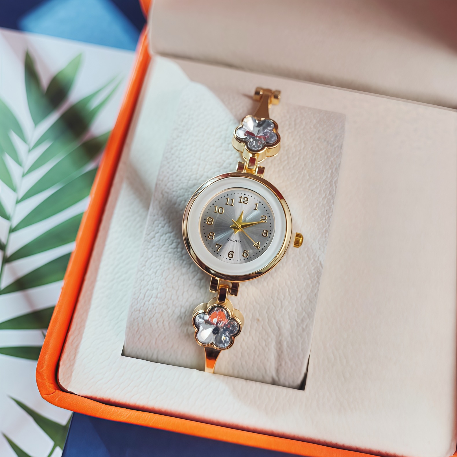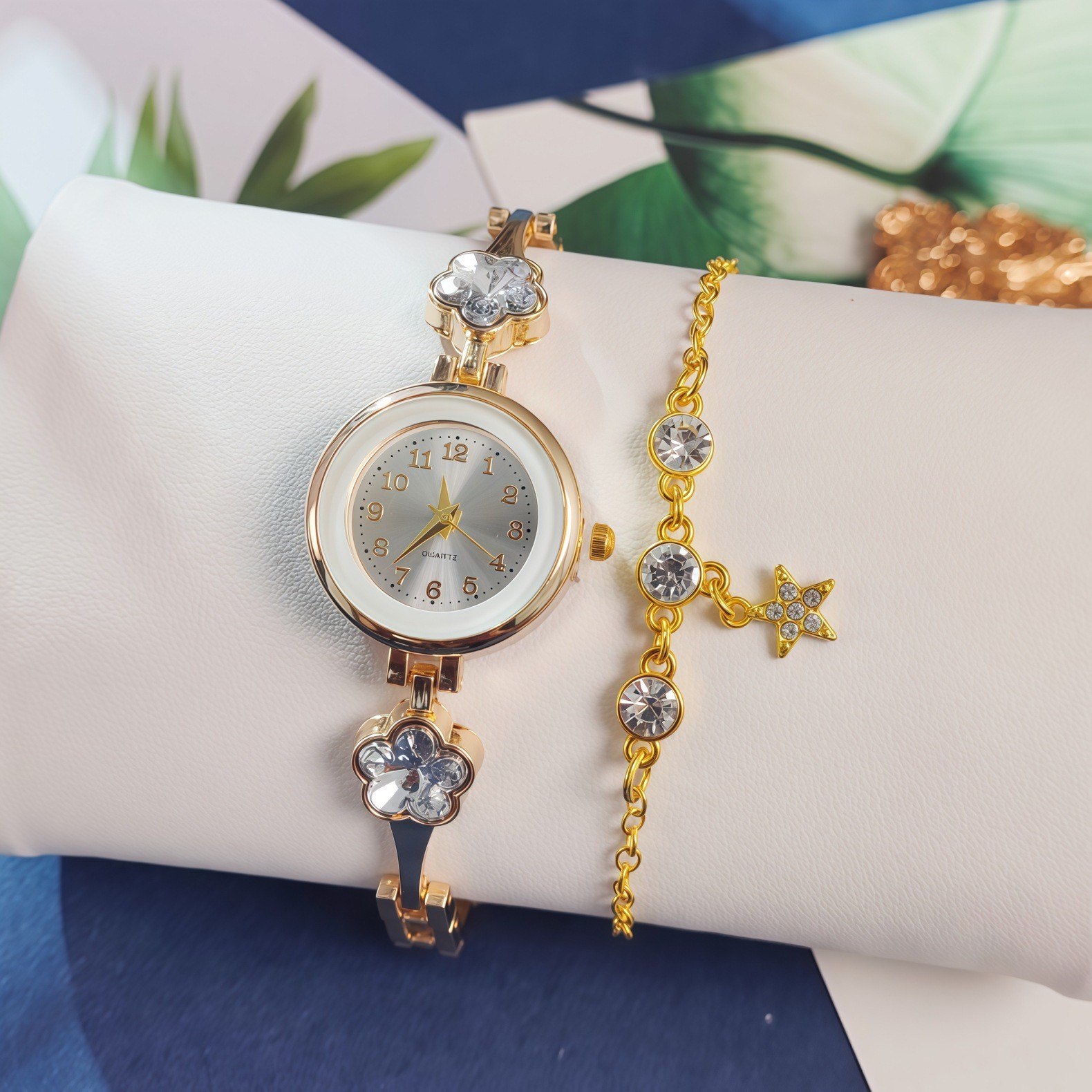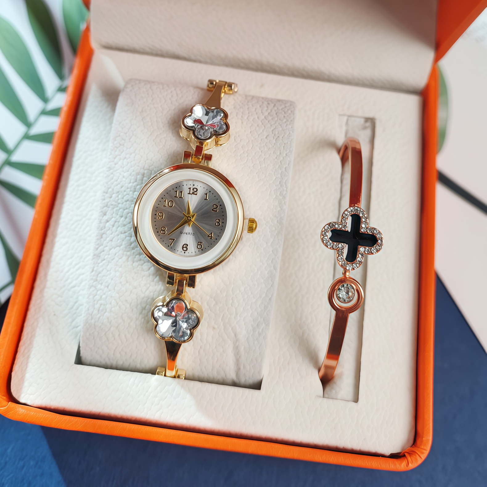 女士小香风花形套装手表 爆款网红短剧女主同款黄金手镯限量腕表