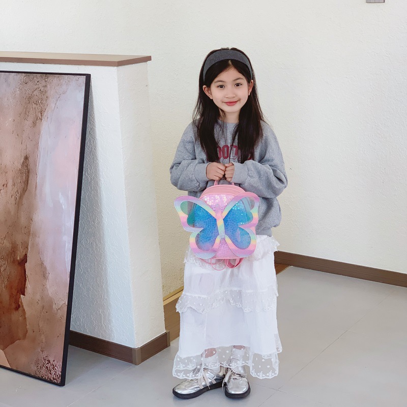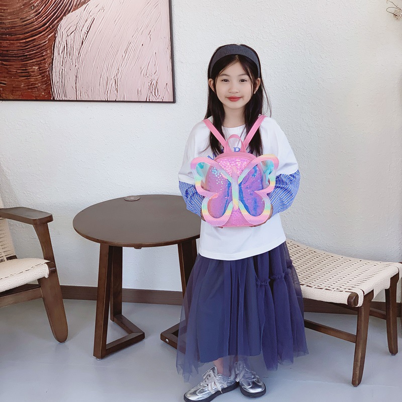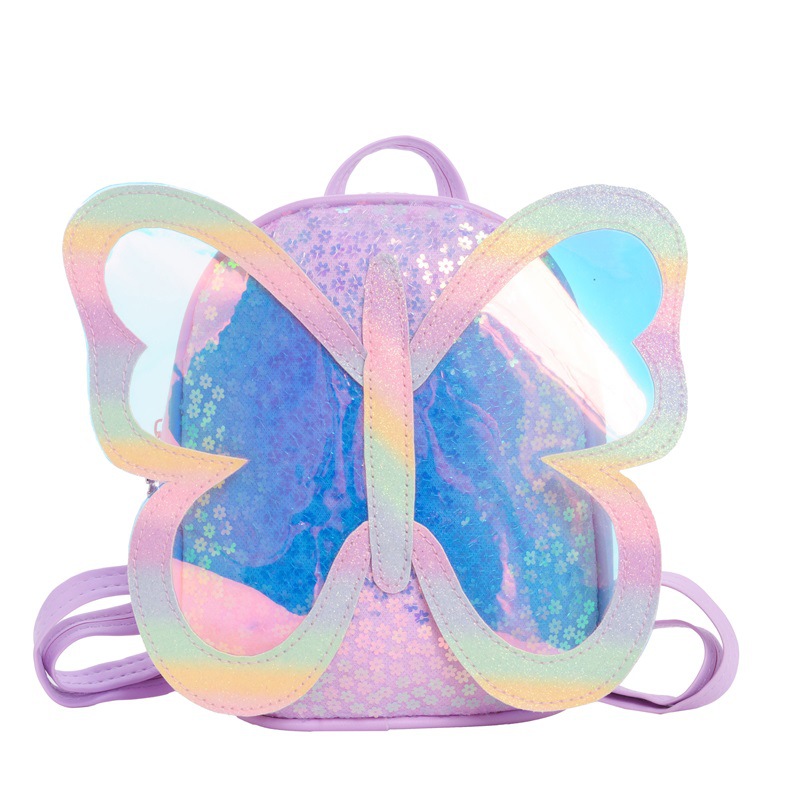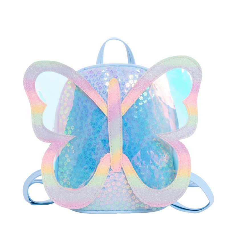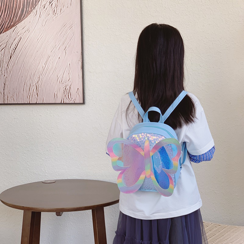 幼儿园宝宝书包卡通可爱小蝴蝶翅膀男女童双肩包时尚亮片儿童书包