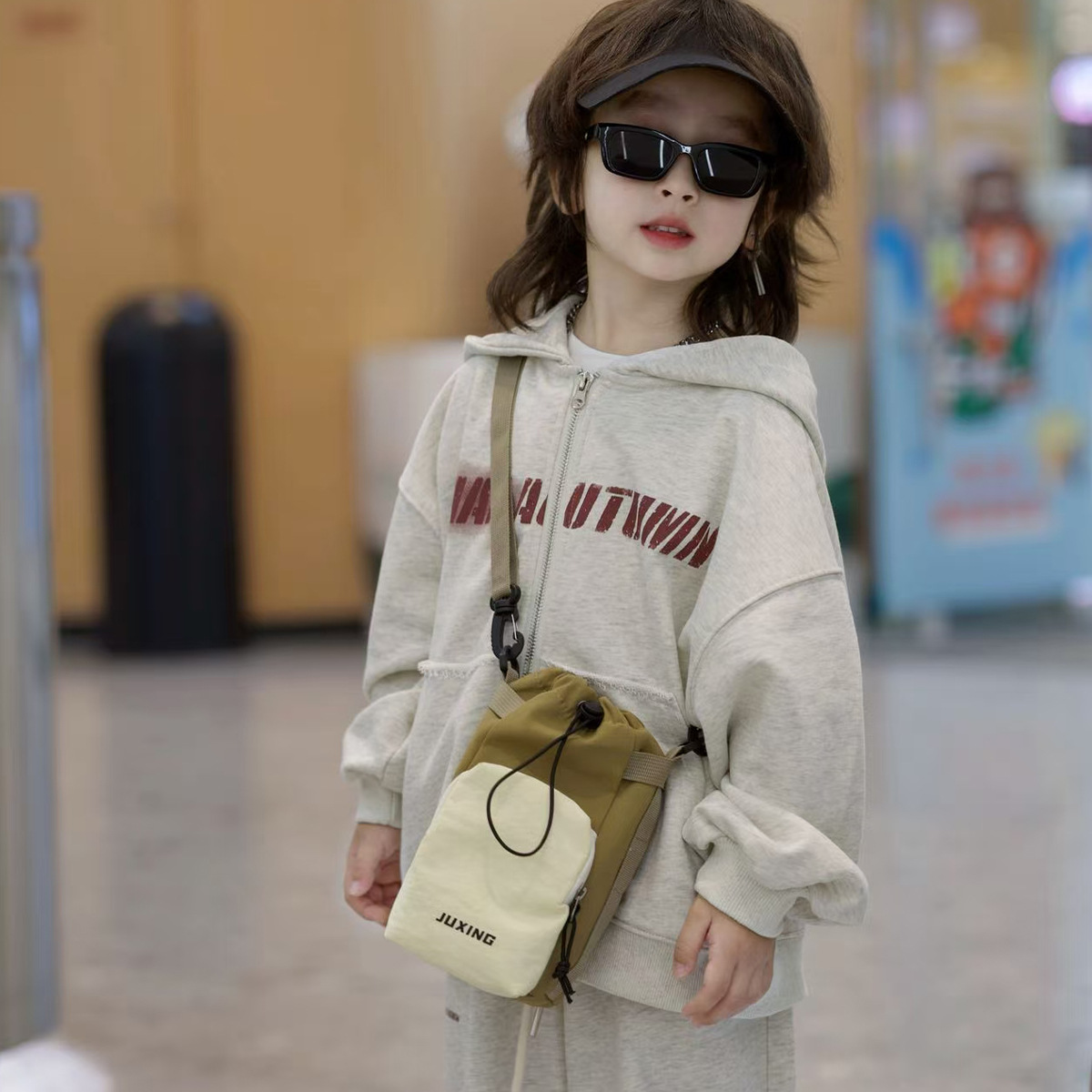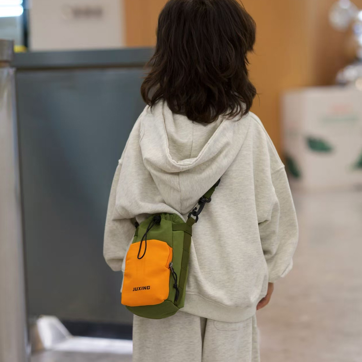 韩版多功能户外男女童水壶包轻便出行宝宝斜挎包时尚撞色儿童包包