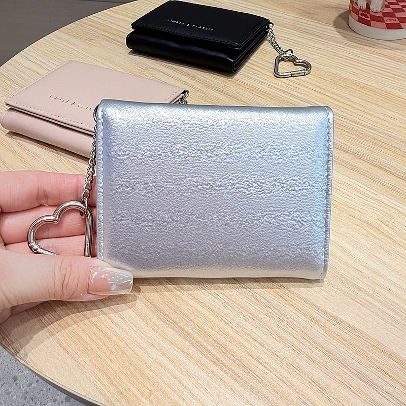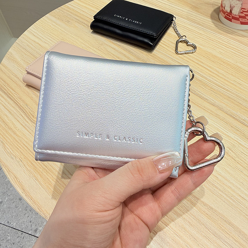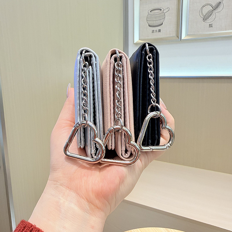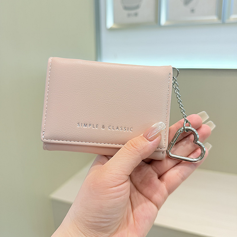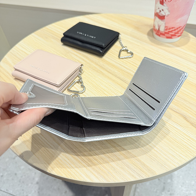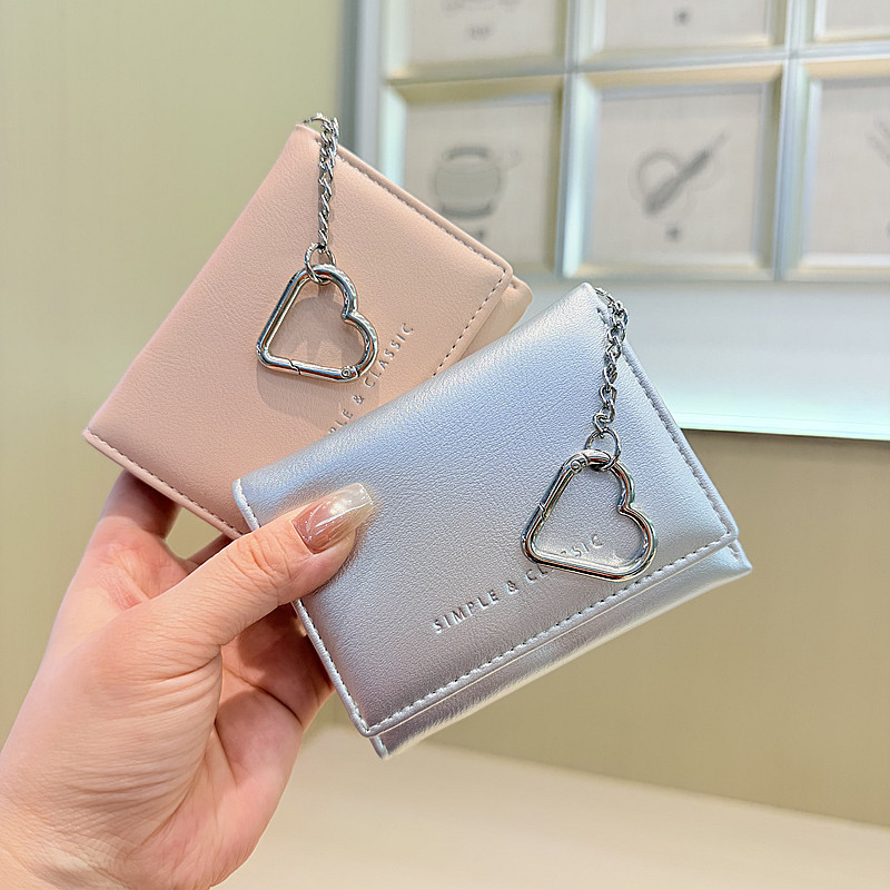 韩版新款纯色字母简约爱心可挂链条吊坠三折薄款学生短款钱包钱夹