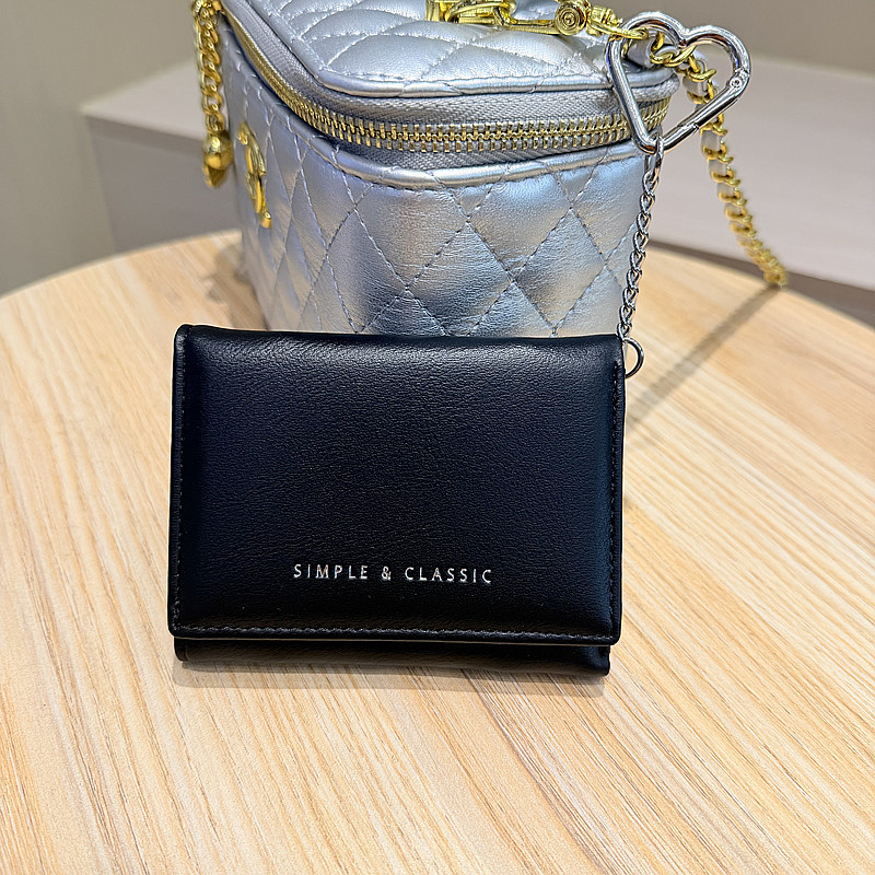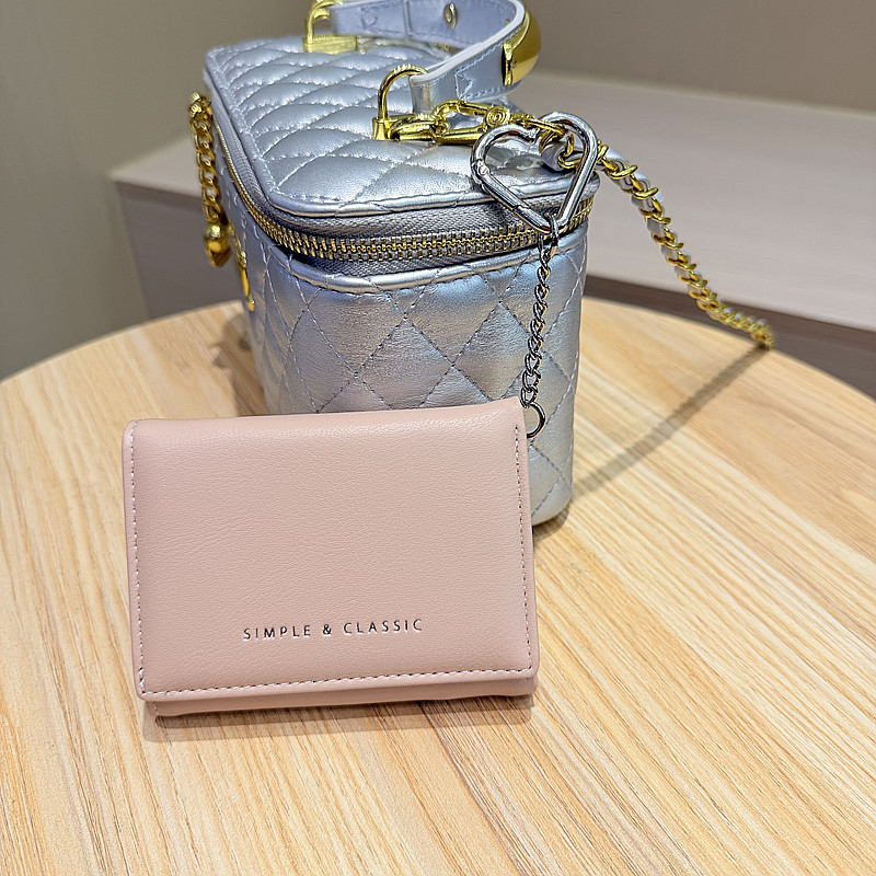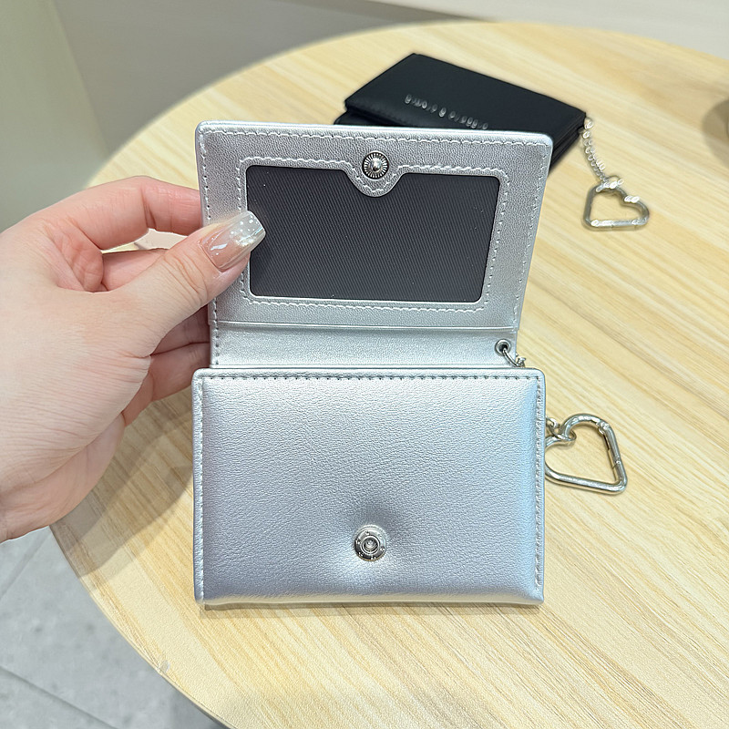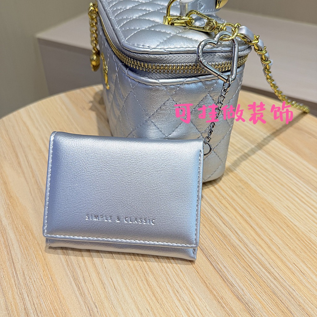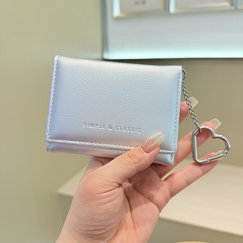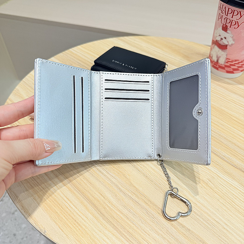韩版新款纯色字母简约爱心可挂链条吊坠三折薄款学生短款钱包钱夹