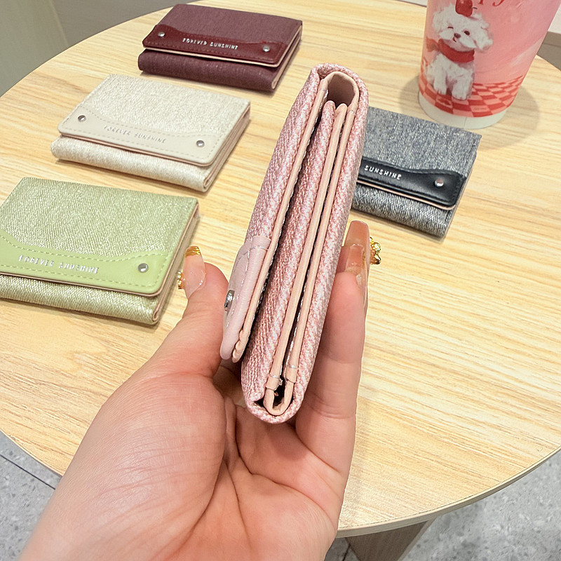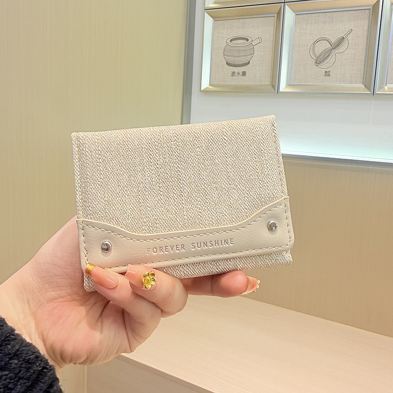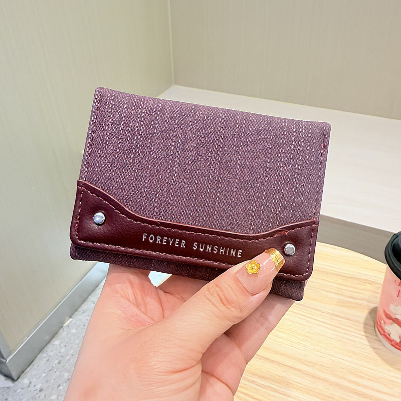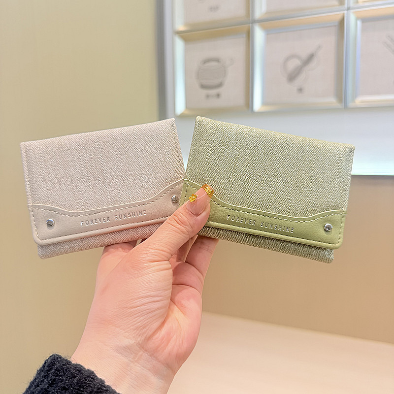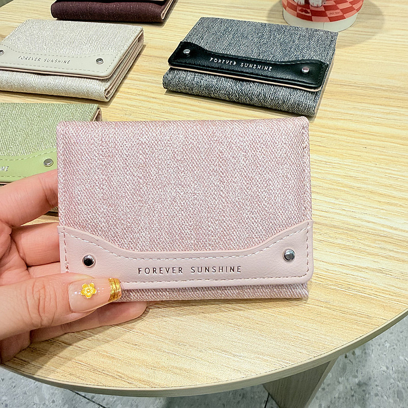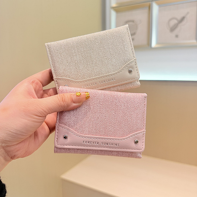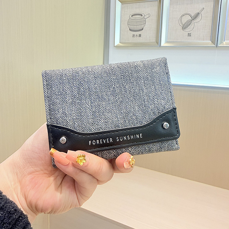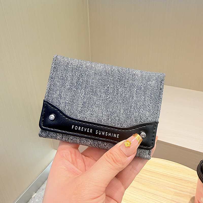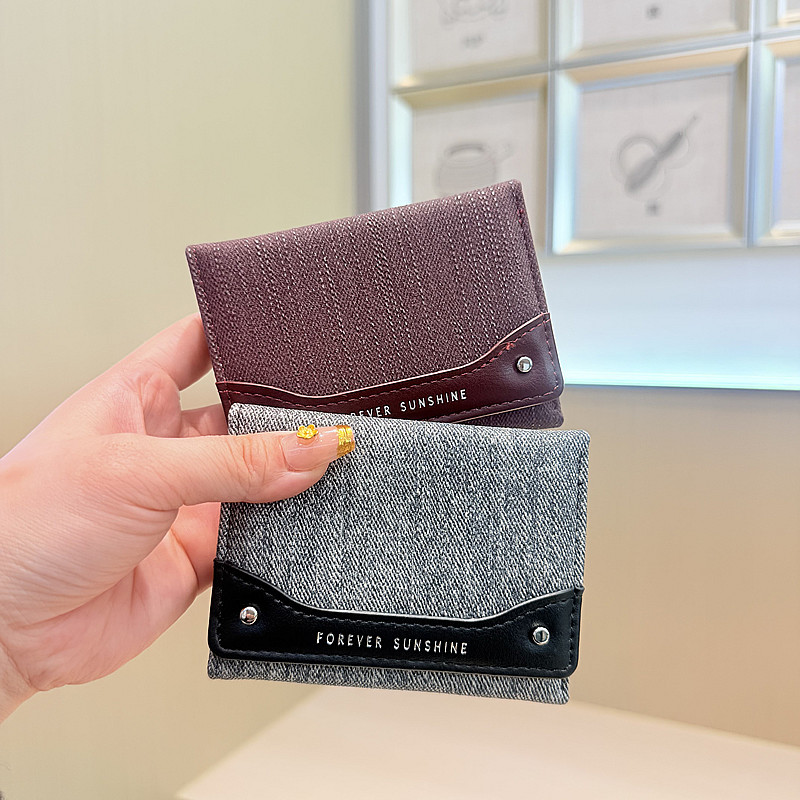 韩系新款简约水洗布拼接时尚高颜值小巧三折迷你短款钱包女士钱夹