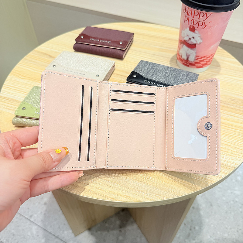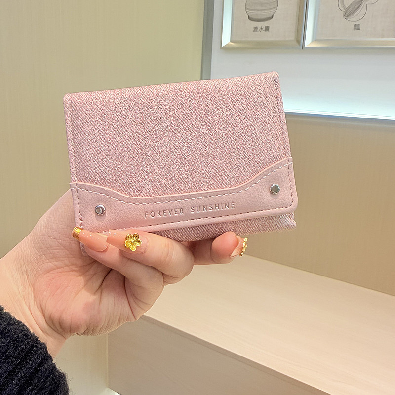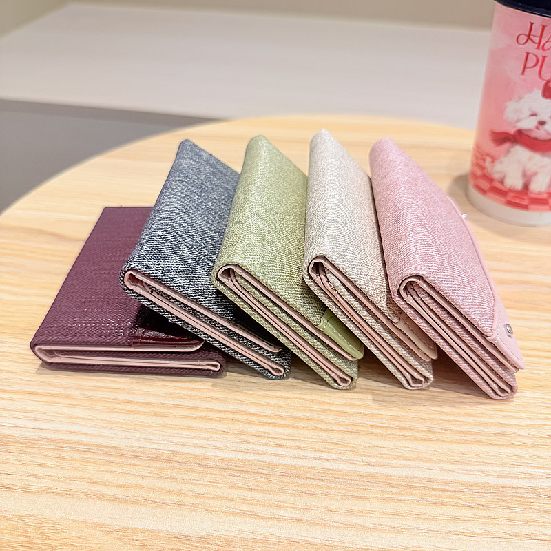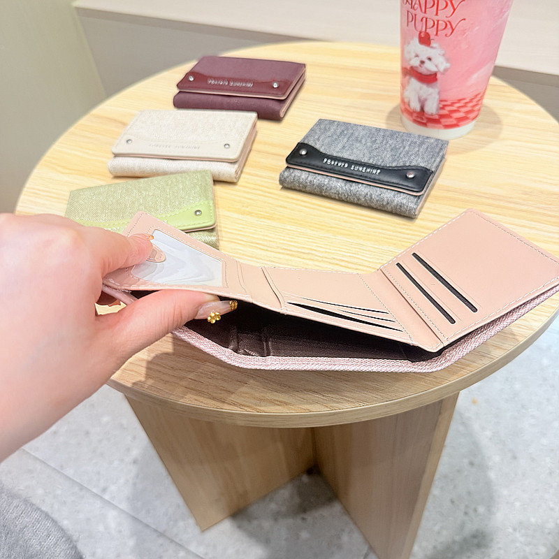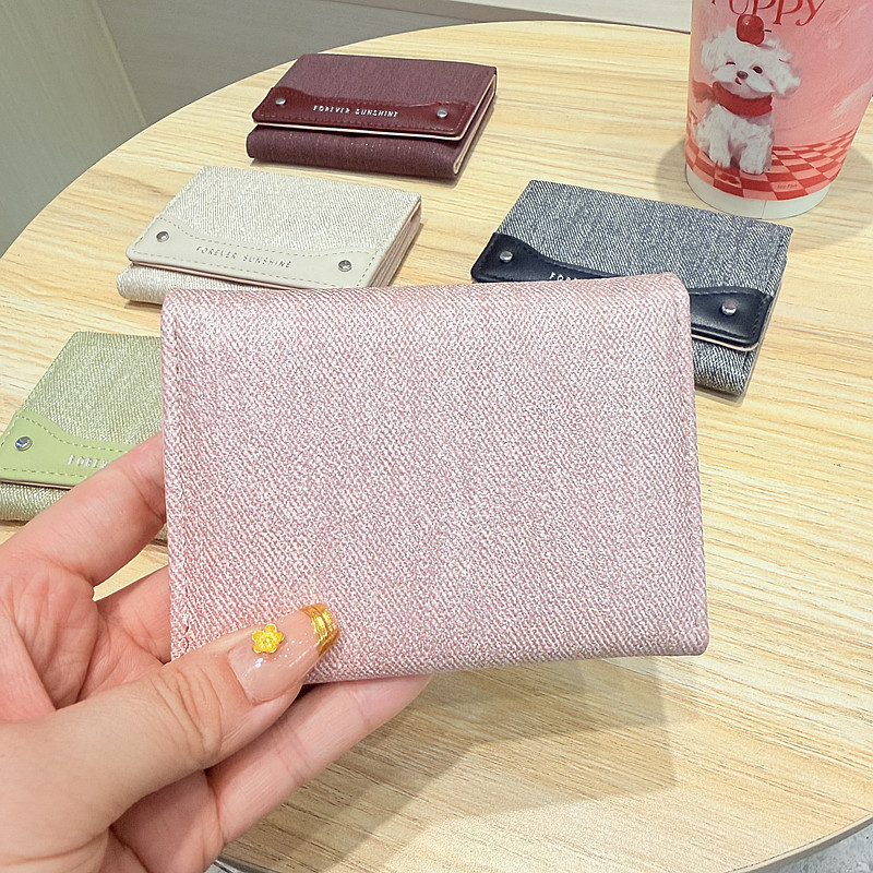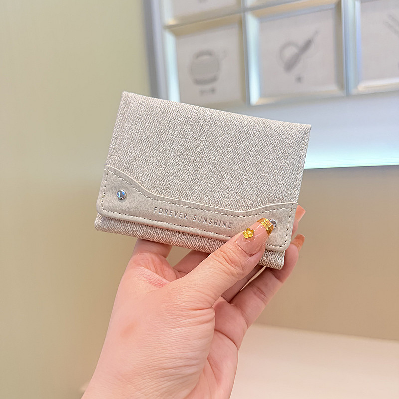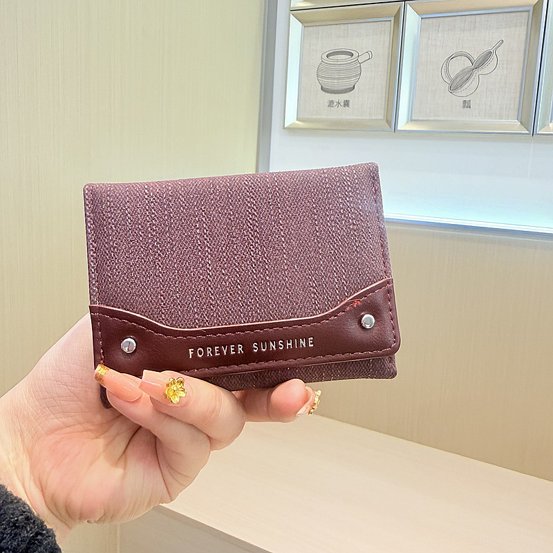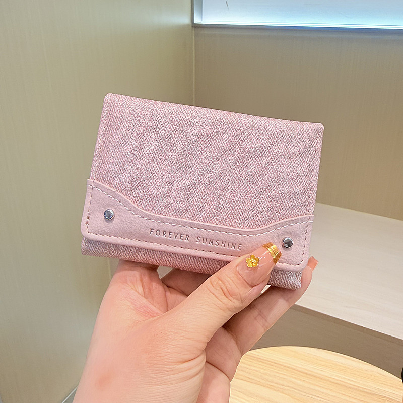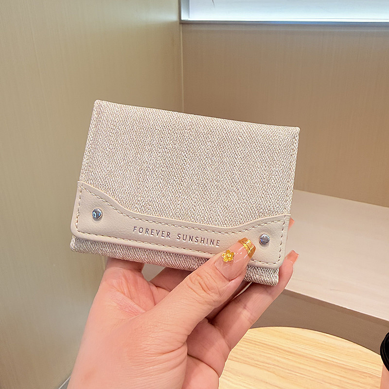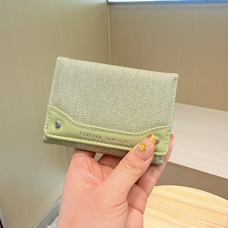 韩系新款简约水洗布拼接时尚高颜值小巧三折迷你短款钱包女士钱夹